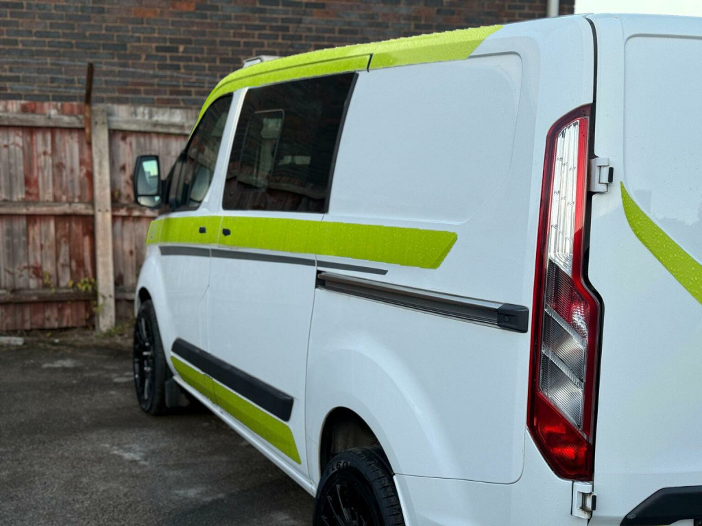 This 2018 Ford Transit Custom is a rare one-owner van from new, clearly well looked after and maintained. Powered by the dependable 2.0 TDCi Euro 6 diesel engine, it delivers strong performance while remaining economical to run. This is not your typical boring-spec Crew Cab. Its been tastefully upgraded to stand out from the rest, starting with a custom Ford grille badge that gives it a unique front-end look you wont see on standard vans. Styling upgrades include a Sportline body kit, exclusive Urban-X vinyl kit, and bonnet bra, all sitting perfectly on brand new 18 Wolfrace alloy wheels with new tyres. It looks aggressive, modern, and ready to turn heads wherever it goes. Inside, its packed with tech: sat nav, Apple CarPlay & Android Auto, plus a rear-view camera for easy manoeuvring. Theres also a clever load weight system that alerts you if youre carrying excess weight in the rear. This van isnt just built for work — its perfect for lifestyle use too. Side and rear LED lighting make it ideal for camping trips, fishing, festivals, or late nights on site. To top it off, theres a hot water system with rear sink, perfect for road trips, mobile work, or jobs away from home. A seriously well-specced Transit Custom that blends style, practicality, and individuality — a van that genuinely stands out from the crowd. ???? Different. Loaded. Ready to go.