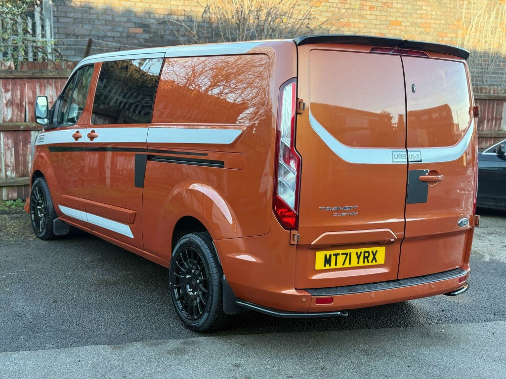 This striking 2021 Ford Transit Custom Limited Auto (L2 Long Wheel Base) commands attention with its factory orange paintwork and Urban-style exterior bodykit, giving it a premium, sporty, and unique road presence. Despite 100,000 miles on the clock, it has been meticulously maintained. Powered by the reliable 2.0 EcoBlue Euro 6 diesel engine with smooth automatic transmission, it delivers strong, effortless performance. The wet belt was replaced at Ford in April 2025, offering major long-term peace of mind. Inside, this van has been converted into a 7-seater, carpeted for comfort, and equipped with front manual A/C, heated seats, and heated/folding mirrors. The SYNC3 infotainment system (ICE Pack 21) includes Apple CarPlay and Android Auto, ensuring seamless connectivity. Additional convenience features include automatic headlights with follow-me-home function, front & rear parking sensors, and a fixed rear-view camera, making manoeuvring stress-free. Externally, it boasts LED daytime running headlights, an LED Light Raptor grille, Urban X vinyl kit, bonnet bra, rear spoiler, full Sportline bodykit, and brand-new 18-inch Wolfrace alloys—giving it a distinctive, aggressive stance. With a generous 6,200-litre load capacity, the LWB layout makes it ideal for business, conversion, or lifestyle use. This Limited Auto L2 perfectly blends style, practicality, and specification, offering a rare opportunity for a standout, ready-to-use van.