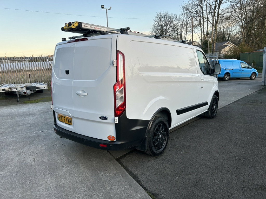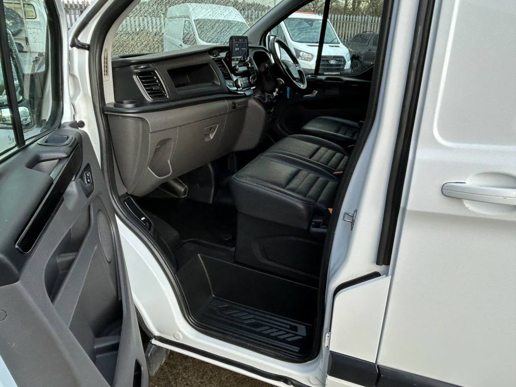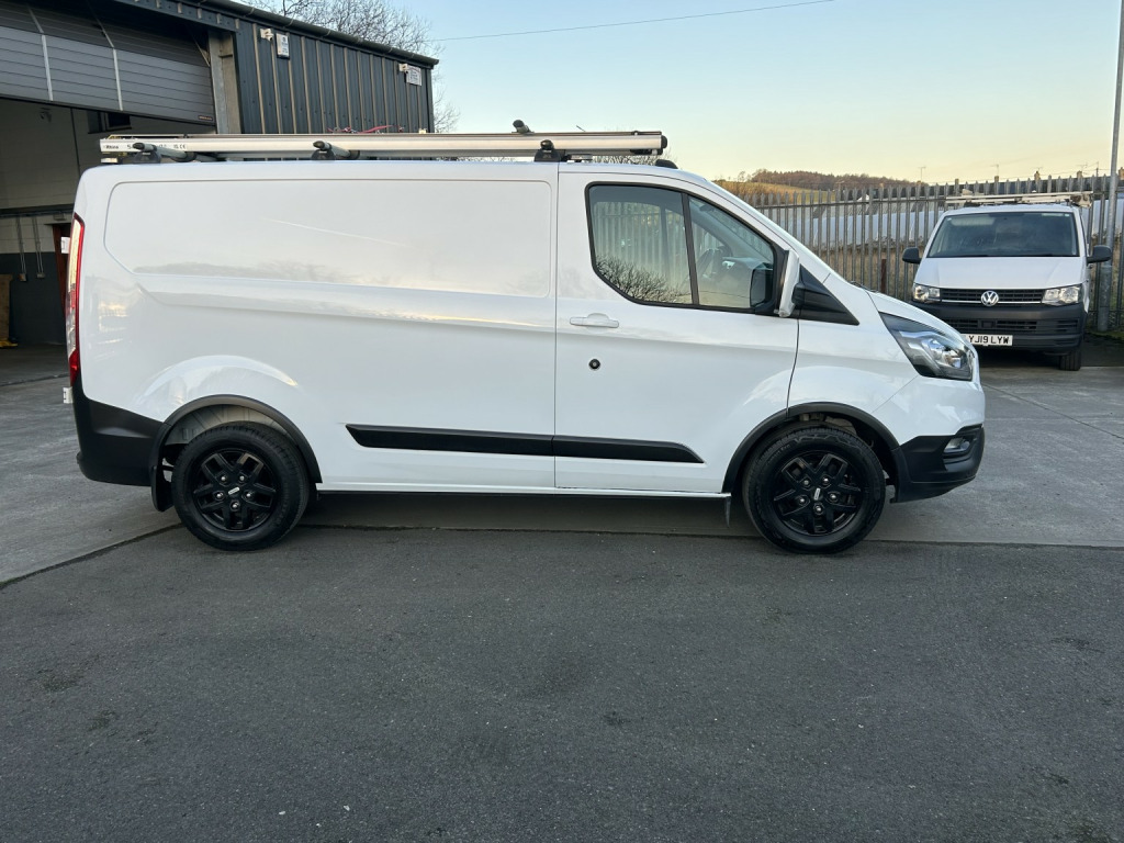 Ford Transit Custom 2.0 300 EcoBlue Trial finished in White (Manual), 47800 miles, Service History, Recently Serviced & Wetbelt Replaced, Trial Model, Euro 6, 2.0 TDCI 130 BHP, Short Wheelbase, Air Conditioning, Leather Seats, Bluetooth connection, Cruise control, Front parking sensor, PAS, Parking sensor, Steering wheel mounted controls, Windscreen heating, Door mirrors electrically foldable, Electric door mirrors, Front fog lights, Heated door mirrors, Front armrest, Front electric windows, Drivers airbag, ESP, ABS, Passenger airbag, Remote central locking, Cloth seat trim, Ply lined, Bulkhead, Alloy wheels, Rear Racking, Roof Rack
