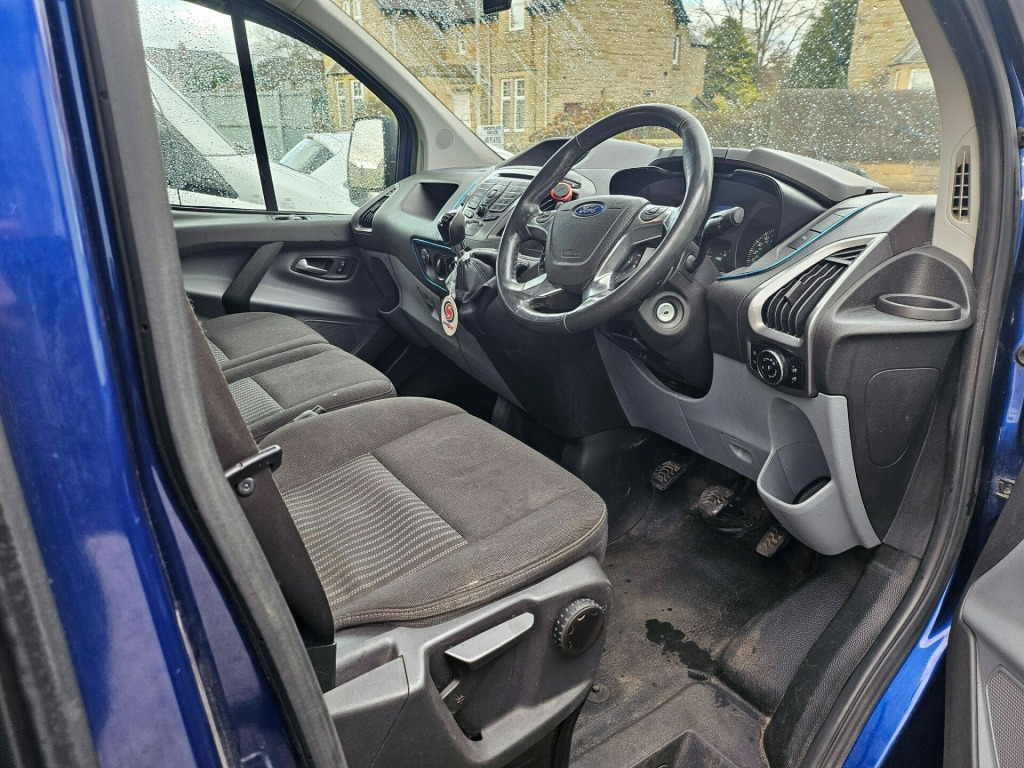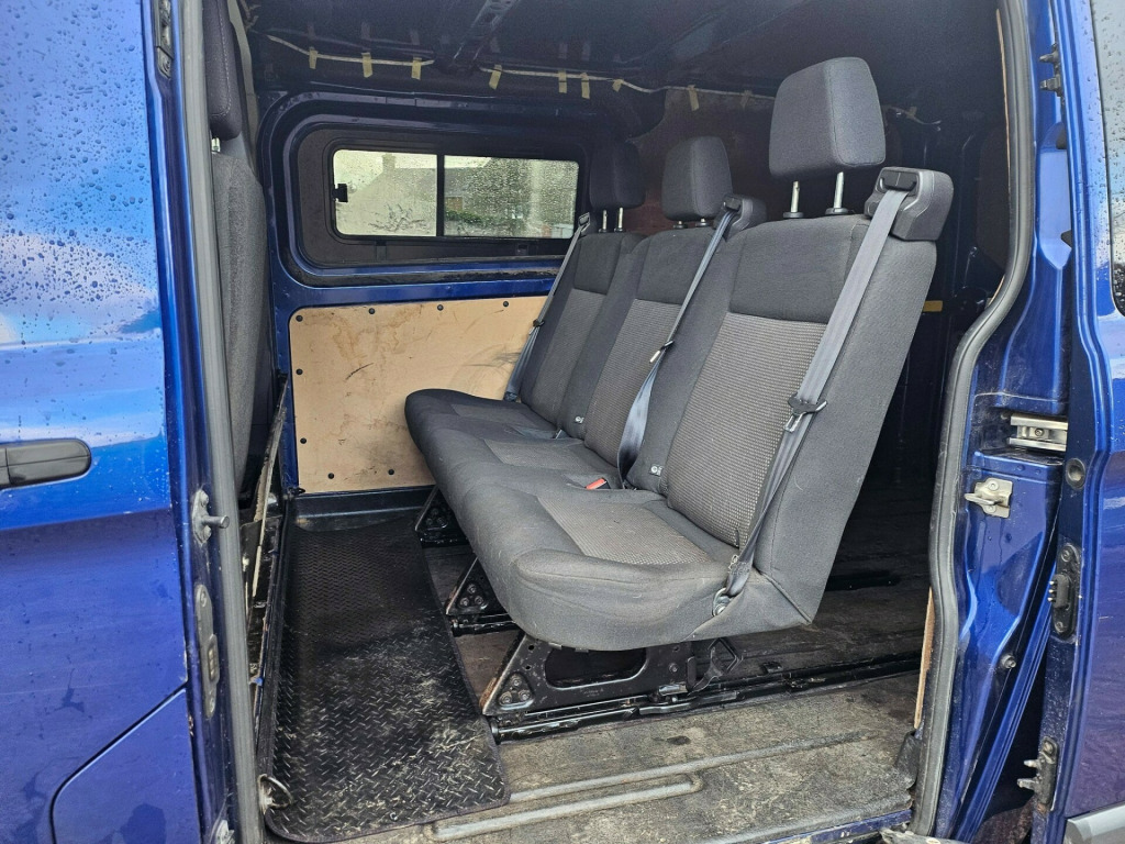 For sale is a 2015 Ford Transit Custom 2.2 TDCi 270 Trend Van with 108,785 miles on the clock. This diesel commercial vehicle comes with a crew van seat conversion to 6 seats and boasts a gross weight of 2700kg, making it ideal for heavy-duty use. With 6 seats configuration and 5 doors, this panel van offers ample space and convenience for transporting goods and equipment. Powered by a 123 bhp engine, this manual transmission L1 H1 van delivers reliable performance while emitting 186 g/km of CO2. Whether for business or personal use, this Ford Transit Custom is a practical and efficient choice for those in need of a dependable commercial vehicle. This vehicle is one of our own vehicles and mileage may increase through usage by us. Fitted with the more reliable 2.2 Chain driven engine. uetooth connection, rain-sensing wipers, 3-person rear seat, barn doors, drivers arm rest, dual passenger seat, half bulkhead, no vat, ply-lined, side load door, adjustable steering column, esp, multi-function steering wheel, parking sensors, power steering, stability control, traction control, trip computer, abs, multiple airbags, service indicator, alarm, immobiliser, remote central locking, electric front windows, electric mirrors, windscreen heating, radio/cd, front head restraints, height adjustable drivers seat, retractable headrests, alloy wheels, led 3rd brake light, metallic paintwork, rear spoiler, side steps, towbar - fixed