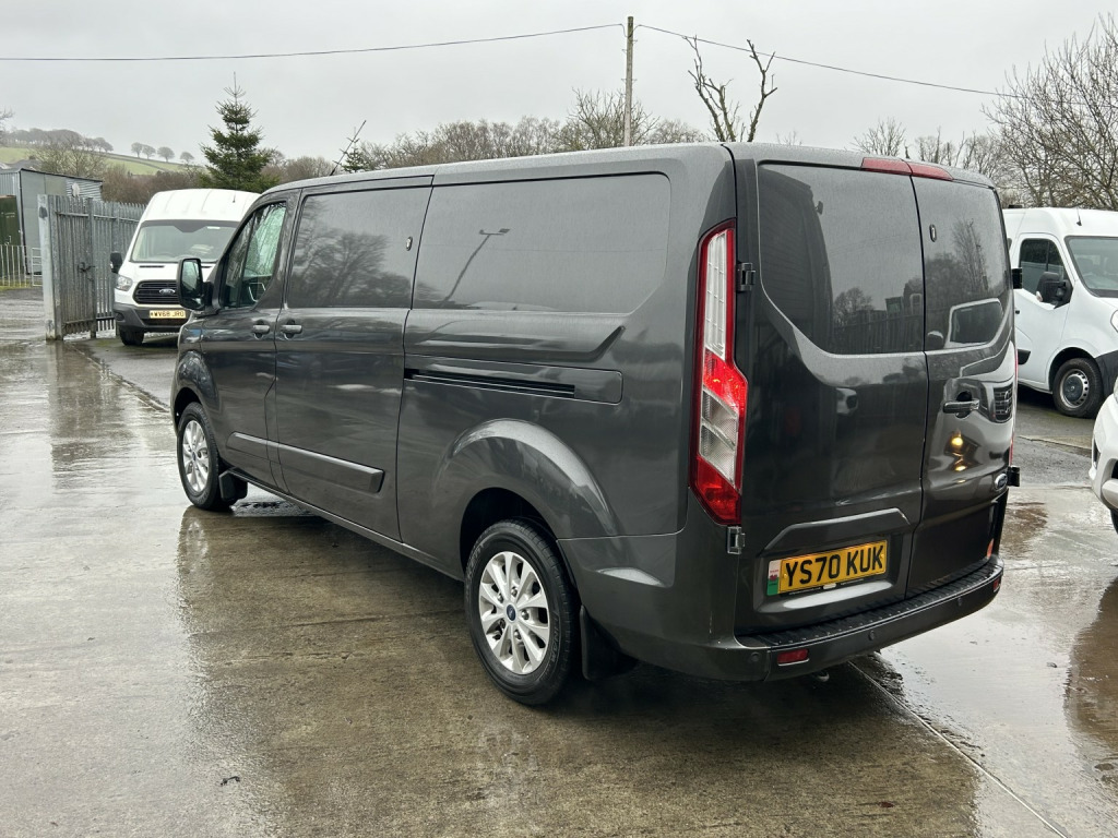 Ford Transit Custom 2.0 300 EcoBlue Limited finished in Grey Manual, 39600 miles, Recently Servand Wetbelt Changed, Limited Model, Euro 6, 2.0 TDCI 130 BHP, Long Wheelbase, Air Conditioning, Bluetooth connection, Cruise control, Front parking sensor, Heated front seat, PAS, Parking sensor, Steering wheel mounted controls, Windscreen heating, Body coloured bumpers, Door mirrors electrically foldable, Electric door mirrors, Front fog lights, Heated door mirrors, Front armrest, Front electric windows, Drivers airbag, ESP, ABS, Passenger airbag, Remote central locking, Cloth seat trim, Ply lined, Bulkhead, Alloy wheels