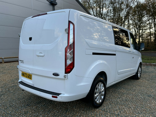 DEPOSIT NOW TAKEN - WE HAVE MORE VANS AVAILABLE - PLEASE VISIT WEBSITE FOR CURRENT STOCKLIST , , 2022 (72) Ford Transit Custom 300 Limited Crewcab 2.0 130 LWB L2, , To view this vehicle please call or email before hand to arrange an appointment. Tel 07595843630, , £16,500 plus vat, , Factory fitted crew van - 5 Seats, , Euro 6 - ULEZ Compliant -, Great spec being a Limited Model -, First Registered Sept 2022 , 2.0 turbo diesel -, 130 BHP Model -, Long Wheel Base -, Factory Crew Cab - 5 Seats , AIR CON -, HEATED SEATS -, Heated Screen -, Electric windows/ Mirrors -, Cruise Control -, Reversing Sensors -, Rear Camera - , Apple Play/ Radio DAB/ Bluetooth -, Auto Lights/ Wipers -, Front Fog Lamps -, Long MOT Sept 2026 - , 74,000 miles -, Good Service History - , Drives very well with no issues -, Brilliant clean condition throughout -, Cab is like new -, Brilliant body condition -, Rear has hardly carried much - very clean -, HPI Clear -, 2 Keys -, , 3 MONTH Warranty included - 12 and 24 month upgrades available at cost. , We are AA Approved - buy with confidence, , 360 DEGREES VIDEO AVAILABLE VIA YOUTUBE LINK, , * Low Rate Finance Available - Same day acceptance *, * Nationwide Delivery available *, * Part Exchange available *, * All Debit cards accepted *, * Free 12 Month Breakdown Cover*, , £16,500 plus vat, , Or Buy with a one of our low rate finance Packages!!, , For more info or to purchase this van please call arrange a viewing on, 01489 532599 / 07595843630