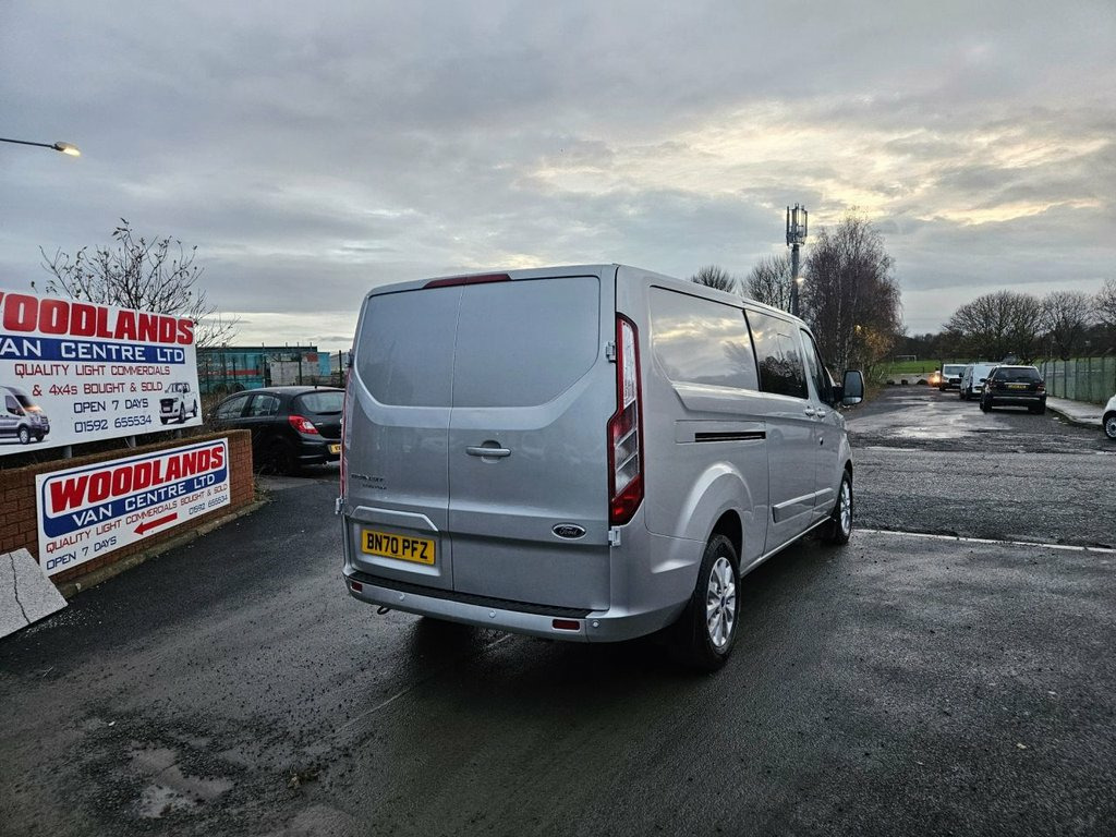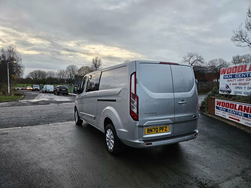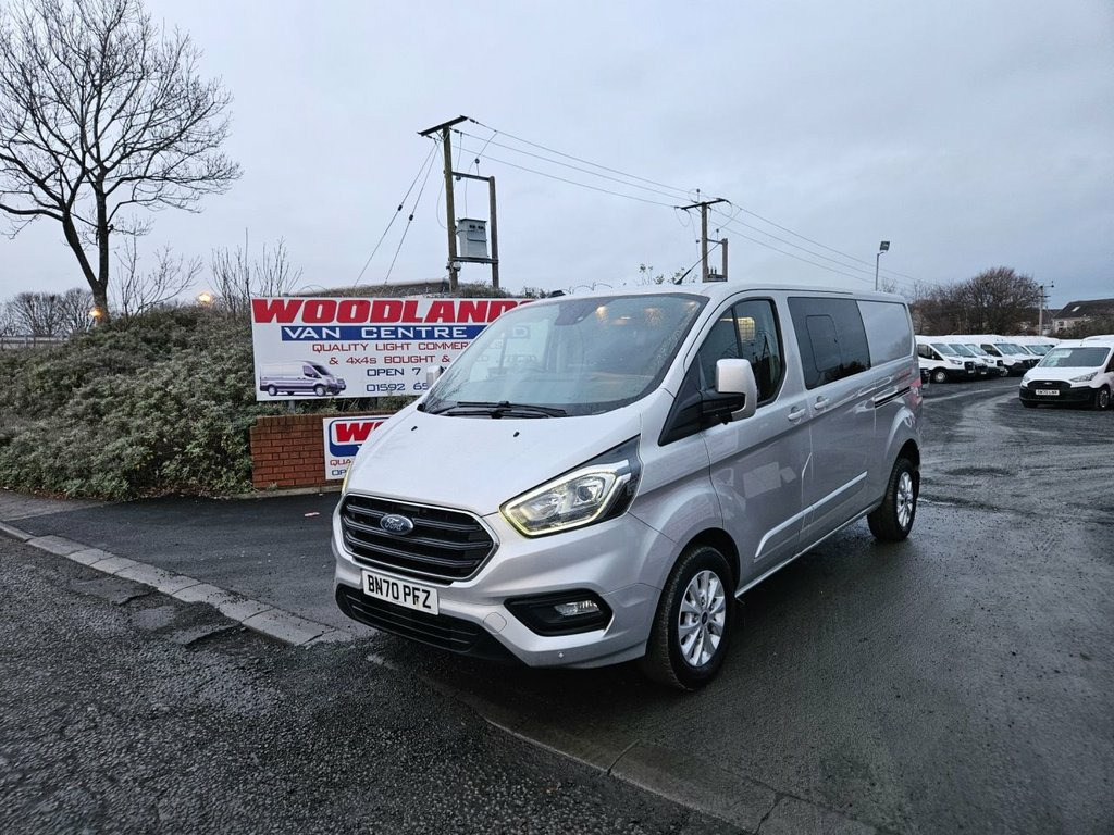 2020 ON 70 PLATE FORD TRANSIT CUSTOM 300 LIMITED CREW VAN ULEZ FREE ZONE MOT'D SEPTEMBER 2026 (142,000 MILES) 2 REMOTE KEYS, CLOTH TRIM, PAS, HEATED SEATS, 6 SPEED BOX, CRUISE CONTROL, AIR CON, ALLOYS, PARKING SENSORS, ELECTRIC WINDOWS, BLUETOOTH/STERIO, MULTI FUNCTION STEERING WHEEL, SIDE DOOR, SIDE WINDOWS, REAR BULKHEAD, WOOD LINED, METALIC SILVER, CENTRAL LOCKING, GOOD CONDITION ALL ROUND, READY TO GO, OPEN 7 DAYS, FINANCE AVAILABLE, CAN BE SEEN AND DRIVEN AT ==12 RANDOLPH PLACE KIRKCALDY FIFE KY12YX== CALL 0,1,5,9,2, 6,5,5,5,3,4, OR 0,7,7,6,6,0,1,5,8,0,1, OVER 350 VEHICLES IN STOCK, www.woodlandsvancentre.com FOLLOW OUR FACEBOOK BUSINESS PAGE Woodland van centre Ltd 16in Alloy Wheels, 2nd Remote Key Fob, 2nd Row Privacy Glass - B-Pillar Rearwar, 2nd Row Triple Wide Seat with Underseat , 8 Way Adjustable Drivers Seat with Armre, ABS - Anti-lock Braking System, Airbag - Front Passenger, Auto Headlamps and Rain Sensitive Wipers, Automatic Headlights - Follow Me Home, B Pillar Assist Handle, Body Colour Front Bumper and Mirror Hous, Body Colour Rear Bumper, Bodyside Mouldings - Body Colour, Bulkhead - Moulded with Window, Bumper - Front Body Colour - Partial, Chrome Grille with 3 Bars, Colour Keyed Exterior Pack, Complete Rear Trim Board - Half Height, Cruise Control, Drivers Airbag, Dual Side Load Doors - Glazed, EBA - Emergency Brake Assist, ESC - Electro