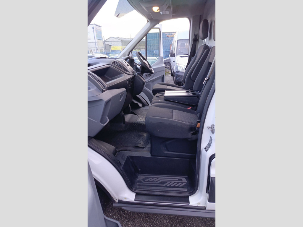 This 2019 Ford Transit 2.0 310 EcoBlue Auto FWD L2 H2 Euro 6 (s/s) 5dr offers a substantial 9300 litre cargo volume, making it an excellent choice for businesses needing significant load space. This reliable van is equipped with a 2.0L diesel engine and meets Euro 6 emission standards. Notable features include practical 15 inch steel wheels, door mirrors with blind spot eliminator and integrated side indicators, which incorporate Ford's Blind Spot Assistance system, and the Ford Connected Audio System complete with Bluetooth connectivity for seamless communication and entertainment on the go.The generous 9300 litre cargo capacity of this Transit variant highlights its advantage over many other similar vehicles, providing ample room for a wide range of goods and equipment. The automatic transmission ensures a smooth and comfortable driving experience, further enhancing its appeal for daily use. This Ford Transit is a capable and well equipped van designed to meet the demands of commercial operations. in steel wheels, 8-way driver seat with fore-aft - recline -height and tilt, airbags - driver, anti-lock braking system - abs with electronic brake force distribution - ebd, armrest - drivers, assist handle - located on b-pillar, auxiliary connection point - 1x12v - 60a connection located under driver seat pedestal, battery - cold start -20 degree c, battery - single improved flood - if, bodyside mouldings - wide - self colour, bottle holder - twin 2 litre bottle capacity - facia-mounted, bulkhead - full steel, bumper - front body colour - partial, courtesy lights - header-mounted front with theatre dimming, curve control, daytime running lamps, door handles - self coloured, door mirrors - blind spot eliminator and integrated side indicator, door mirrors - manual adjust, doors - passengers sliding side load door and step, doors - unglazed rear doors - hinged for 180 degree opening - positive stop at 90 degree, driver seat belt minder, dual-circuit front and rear discs with self-adjusting servo-assistance and abs, eba - emergency brake assist, edcc - electronic dynamic cornering control, esc - electronic stability control, emergency brake warning, floor covering - cab easy-clean rubber, ford connected audio system, ford easy-fuel capless refuelling system, ford eco mode - driver information system, front grille - sterling grey, gearshift indicator light, glovebox with a4 file storage, headlights - courtesy delay, headlining - cab - moulded, heater - positive thermal coefficient - ptc, hill start assist, immobiliser - safeguard passive anti-theft system - pats - insurance-approved category 2 immobiliser, interior lighting - battery saver - 30min, lac - load adaptive control, less easy clean floor, less steel spare wheel, liftgate - cargo door handle - self colour, load compartment - din 75410 compliant tie-down loops, loadspace compartment light, locks - audio mislock feedback - audible signal if a door is ajar when locking activated, locks - auto locking on drive-away - doors automatically lock at 8 kmh or 5 mph, locks - auto relocking - doors relock after 45 seconds if no door is opened, locks - configurable unlocking, locks - key operated bonnet release, locks - power door deadlocks - shielded with strengthened mountings, locks - remote control central locking with one key fob, mud flaps - rear, overhead storage shelf, power point socket - 2x 12v, power-assisted steering - pas, rsc - roll stability control, rear bumper - self colour with integrated step, recirculation heater - front, seat belts - 3-point diagonal inertia reel - all seats, seat tray-table, seats - dual passenger, side wind mitigation, single agm battery, standard duty alternator - 150amp, steering column - rake and reach adjustment, steering wheel - 4 spoke polyurethane, storage - drivers side - storage compartment on facia top with lift up lid, storage - front door map pockets, storage - underseat stowage compartment under dual passenger seat, suspension - front independent macpherson struts -variable rate coil springs - stabiliser bar - gas-pressurised shock absorbers and rear leaf springs, traction control - tc, trip computer, tyre inflator kit, vehicle identification number - vin - visible, water in fuel filter with sensor, wheel covers - half caps, windows - electrically-operated front with one-touch on drivers side, wipers - front variable-intermittent with electric wash