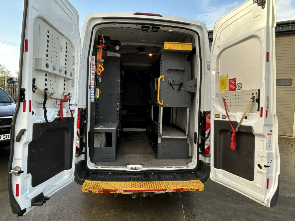 Ford Transit 350 2.0 130 BHP L2H3 MWB High ROOF FWD 6 Speed Manual finished in White (Manual), 51800 miles, One Owner from British Telecom, 2.0 tdci 130 BHP 6 Speed, Euro 6, Front wheel drive, L2 H3, Medium wheel base, High Roof, Electric windows, Bluetooth Handsfree, Ply lined, Bulkhead, Racking, Parking Sensors, Rear Step