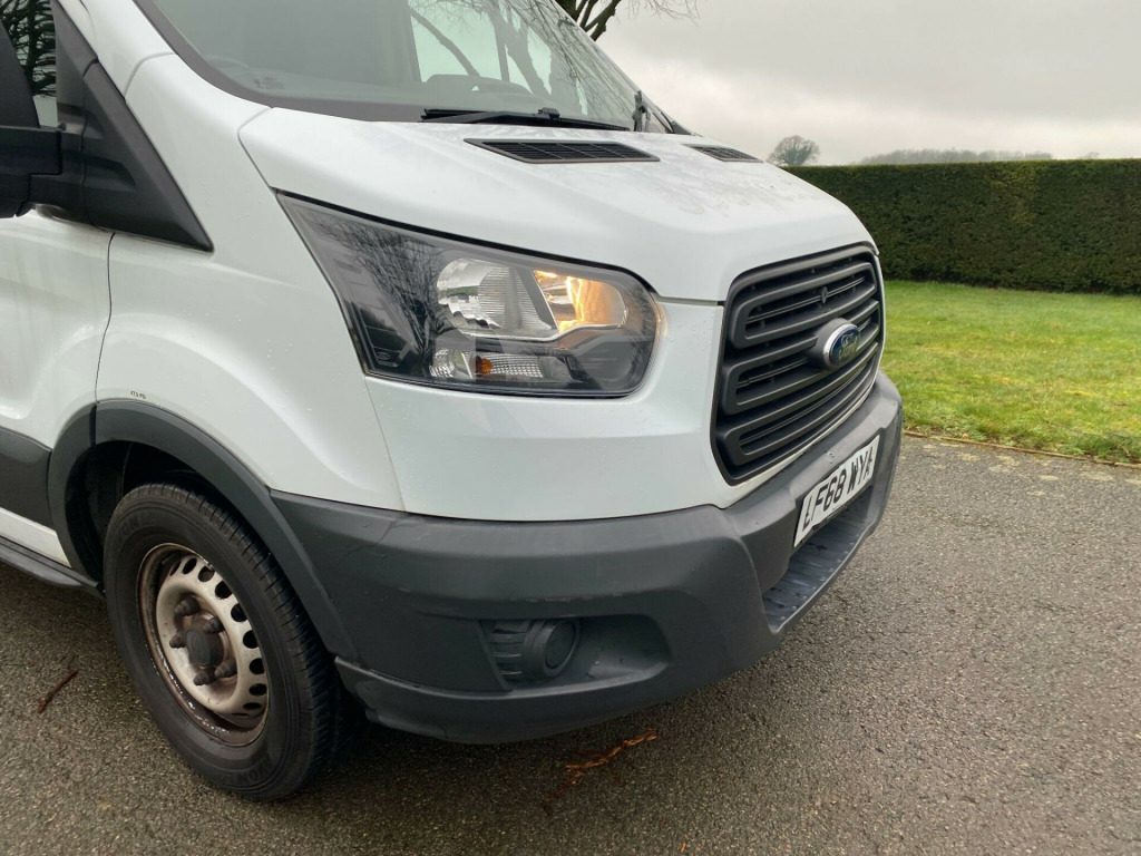 ASK FOR FINANCE NO DEPOSIT This 2018 Ford Transit 2.0 350 EcoBlue FWD L2 H3 Euro 6 has covered a remarkably low mileage of just 41589 miles, having been owned by only one careful keeper. This robust 350 variant is powered by an efficient 2.0 litre diesel engine, meeting Euro 6 emissions standards. It comes equipped with the Ford Connected Audio System, which includes Bluetooth connectivity for your convenience, and Door Mirrors featuring a blind spot eliminator and integrated side indicator, incorporating BLIS blind spot assistance for added safety. With a substantial towing weight of 2800 kg, this Transit is ready for demanding tasks.The low mileage and single owner history suggest this Ford Transit has been exceptionally well looked after, setting it apart from other vehicles of its age. The inclusion of the Ford Connected Audio System and advanced blind spot assistance in the door mirrors further enhances its appeal, offering a more connected and secure driving experience. This combination of practical features, excellent provenance, and a powerful yet economical Euro 6 diesel engine makes this 2018 Transit a highly capable and desirable commercial vehicle.. 16in Steel Wheels, 8-Way Driver Seat with Fore-Aft - Recline -Height and Tilt, Airbags - Driver, Anti-Lock Braking System - ABS with Electronic Brake Force Distribution - EBD, Armrest - Drivers, Assist Handle - Located on B-pillar, Auxiliary Connection Point - 1x12V - 60A Connection Located Under Driver Seat Pedestal, Battery - Cold Start -20 Degree C, Battery - Single Improved Flood - IF, Bodyside Mouldings - Wide - Self Colour, Bottle Holder - Twin 2 litre Bottle Capacity - Facia-Mounted, Bulkhead - Full Steel, Bumper - Front Body Colour - Partial, Courtesy Lights - Header-Mounted Front with Theatre Dimming, Curve Control, Daytime Running Lamps, Door Handles - Self Coloured, Door Mirrors - Blind Spot Eliminator and Integrated Side Indicator, Door Mirrors - Manual Adjust, Doors - Passengers Sliding Side Load Door and Step, Doors - Unglazed Rear Doors - Hinged for 180 Degree Opening - Positive Stop At 90 Degree, Driver Seat Belt Minder, Dual-Circuit Front and Rear Discs with Self-Adjusting Servo-Assistance and ABS, EBA - Emergency Brake Assist, EDCC - Electronic Dynamic Cornering Control, ESC - Electronic Stability Control, Emergency Brake Warning, Floor Covering - Cab Easy-Clean Rubber, Ford Connected Audio System, Ford Easy-Fuel Capless Refuelling System, Ford Eco Mode - Driver Information System, Front Grille - Sterling Grey, Gearshift Indicator Light, Glovebox with A4 File Storage, Headlights - Courtesy Delay, Headlining - Cab - Moulded, Heater - Positive Thermal Coefficient - PTC, Hill Start Assist, Immobiliser - Safeguard Passive Anti-Theft System - PATS - Insurance-Approved Category 2 Immobiliser, Interior Lighting - Battery Saver - 30min, LAC - Load Adaptive Control, Less Easy Clean Floor, Less Steel Spare Wheel, Liftgate - Cargo Door Handle - Self Colour, Load Compartment - DIN 75410 Compliant Tie-down Loops, Loadspace Compartment Light, Locks - Audio Mislock Feedback - Audible Signal if a Door is Ajar When Locking Activated, Locks - Auto Locking on Drive-Away - Doors Automatically Lock at 8 kmh or 5 mph, Locks - Auto Relocking - Doors Relock after 45 Seconds if no Door is Opened, Locks - Configurable Unlocking, Locks - Key Operated Bonnet Release, Locks - Power Door Deadlocks - Shielded with Strengthened Mountings, Locks - Remote Control Central Locking with One Key Fob, Mud Flaps - Rear, Overhead Storage Shelf, Power Point Socket - 2x 12V, Power-assisted Steering - PAS, RSC - Roll Stability Control, Rear Bumper - Self Colour with Integrated Step, Recirculation Heater - Front, Seat Belts - 3-Point Diagonal Inertia Reel - All Seats, Seat Tray-Table, Seats - Dual Passenger, Side Wind Mitigation, Standard Duty Alternator - 150amp, Steering Column - Rake and Reach Adjustment, Steering Wheel - 4 Spoke Polyurethane, Storage - Drivers Side - Storage Compartment on Facia Top with Lift Up Lid, Storage - Front Door Map Pockets, Storage - Underseat Stowage Compartment Under Dual Passenger Seat, Suspension - Front Independent MacPherson Struts -Variable Rate Coil Springs - Stabiliser Bar - Gas-Pressurised Shock Absorbers and Rear Leaf Springs, Traction Control - TC, Trip Computer, Tyre Inflator Kit, Vehicle Identification Number - VIN - Visible, Water in Fuel Filter with Sensor, Wheel Covers - Half Caps, Windows - Electrically-Operated Front with One-Touch on Drivers Side, Wipers - Front Variable-Intermittent with Electric Wash.