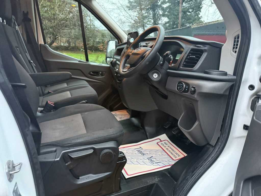 Commercial Finance available. Nationwide delivery available. Viewing by appointment only please. This 2022 Ford Transit 350 Leader offers excellent provenance, having had only one owner and boasting a full service history. This reliable Euro 6 compliant 2.0L diesel van comes with a 3 month warranty and a 12 month MOT and full service provided on purchase, giving you peace of mind. It features manual air conditioning and parking aid for both front and rear, complemented by front fog lamps. For enhanced safety and awareness.The Transit 350 Leader is equipped with ICE Pack 17, which includes Bluetooth connectivity for your convenience. With an impressive cargo volume of 10800 litres, this van provides ample space for your business needs, exceeding what you might find in similar vehicles. The combination of its practical features, robust build, and excellent condition makes this Ford Transit a standout choice for any commercial user. dflaps - rear, manual air conditioning, ice pack 21, trailer tow attachments, blis - blind spot information system with cross traffic alert, touchscreen control, 12in touchscreen with new sync 4 system, cruise control with adjustable speed limiter, front fog lights, parking aid - front and rear with front fog lamps, power fold back dual power mirrors, 16in steel wheels, airbags - driver, anti-lock braking system - abs with electronic brake force distribution - ebd, assist handle - located on b-pillar, battery - cold start -20 degree c, bluetooth, bodyside mouldings - wide - self colour, bottle holder - twin 2 litre bottle capacity - facia-mounted, bulkhead - full steel, cargo door handle - self colour, courtesy lights - header-mounted front with theatre dimming, curve control, door handles - self coloured, door mirrors - blind spot eliminator and integrated side indicator, door mirrors - manual, doors - unglazed rear doors - hinged for 180 degree opening - positive stop at 90 degree, dual-circuit front and rear discs with self-adjusting servo-assistance and abs, eba - emergency brake assist, epas - electric power assisted steering, esc - electronic stability control, electric windows - front, emergency brake warning, floor covering - cab easy-clean rubber, fold out front passenger seat table, ford easy-fuel capless refuelling system, ford sync with 4.2in tft screen, front - independent macpherson struts - coil springs - stabiliser bar and gas-pressurised shock absorbers - rear - leaf springs and gas-pressurised shock absorbers, front bumper - self colour, front grille - self colour, front passengers seat - dual fixed with split lift up cushion for stowage and fold out table, gearshift indicator light, glovebox - with lid and a4 file storage capability, headlights - halogen projector containing daytime running lights, headlights - levelling control, headlights courtesy delay - 30 seconds duration, headlining - cab - moulded, heater - positive thermal coefficient - ptc, heavy duty alternator, hill start assist, ice pack 17, immobiliser - safeguard passive anti-theft system - pats - insurance-approved category 2 immobiliser, lac - load adaptive control, less easy clean floor, less steel spare wheel, loadspace compartment light, locks - audio mislock feedback - audible signal if a door is ajar when locking activated, locks - auto locking on drive-away - doors automatically lock at 8 kmh or 5 mph, locks - auto relocking - doors relock after 45 seconds if no door is opened, locks - configurable unlocking - 2-stage unlocking, locks - key operated bonnet release, locks - power door deadlocks - shielded with strengthened mountings, mykey, overhead storage console, passenger side sliding load door - solid, power point - 2 x 12v located on instrument panel and in stowage bin, rsc - roll stability control, radio with remote stalks, rear bumper - self colour with integrated step, remote central door locking with deadlocks, remote central locking with one key fob, seatbelts - 3 point diagonal inertia reel - all seats, seats - drivers 4-way adjustment with armrest, selectable drive mode, side wind mitigation, steering column - rake and reach adjustment, steering wheel - 4 spoke polyurethane, storage - front door map pockets, storage - underseat stowage compartment under dual passenger seat, tinted glass, trip computer, tyre inflator kit, vehicle identification number - vin - visible, vehicle maintenance monitor, water in fuel filter with sensor, wheel covers - half caps, wipers - front variable-intermittent with electric wash