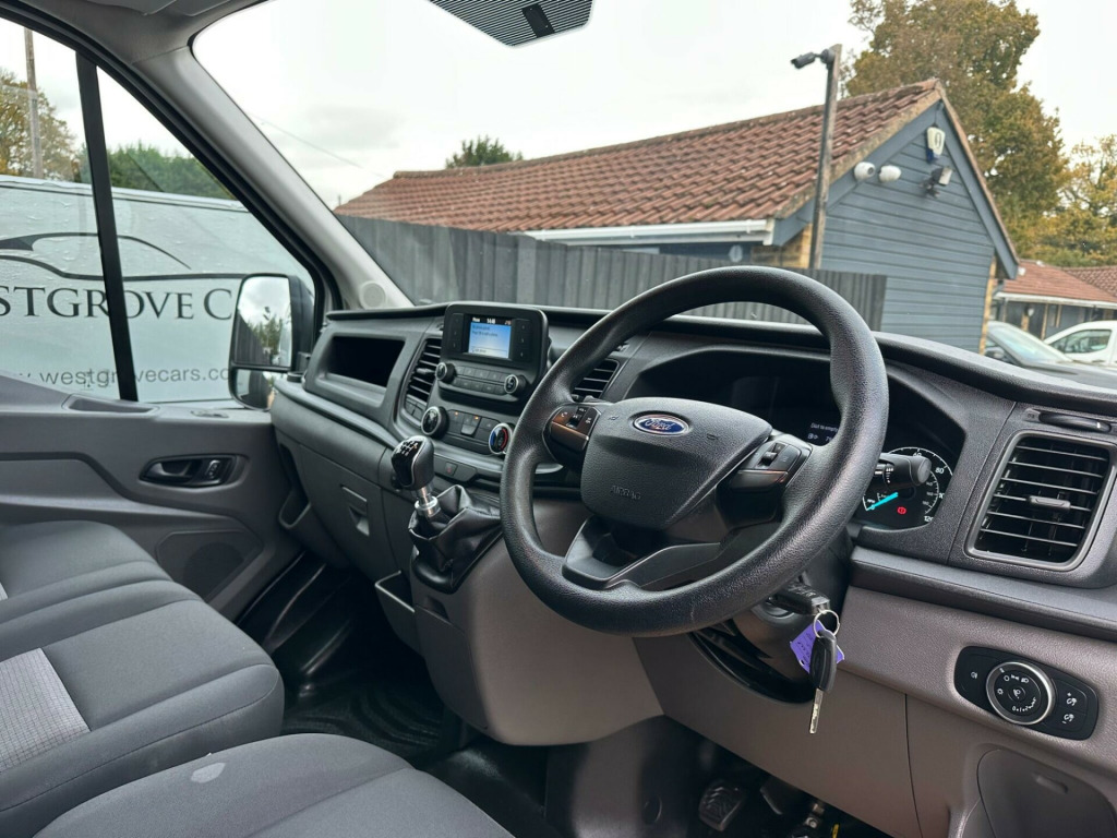 Westgrove Cars are delighted to be able to offer for sale this Ford Transit 2.0 350 EcoBlue Leader RWD L3 H3 Euro 6 (s/s) 5dr. This van comes with a Full Service History and a Wetbelt Change at 99000 Miles. At Westgrove Cars we are proud to have a fantastic relationship with the RAC, and are able to offer you 3 months warranty, 12 months roadside assistance completely free of charge with every vehicle, and longer-term warranties can be upgraded to if required. Highly competitive finance options are available. We are easy to locate and only 7 minutes from the M25 Junction 11. At Westgrove Cars we operate on an appointment only basis, however we will always do our upmost to accommodate all appointments. If traveling by public transport, then just give us a call and we can arrange a collection service for you to make your journey as easy as possible. If you have any questions just give us a call as we're always happy to help anyway we can. are wheel - steel, ply-lined in rear, 16in steel wheels, 4.2in monochrome tft non-touch screen with new sync 4 system, airbags - driver, alternator - standard duty 165amp, anti-lock braking system - abs with electronic brake force distribution - ebd, assist handle - located on b-pillar, battery - cold start -20 degree c, black dual manual signal mirrors, bottle holder - twin 2 litre bottle capacity - facia-mounted, bulkhead - full steel, cargo door handle - self colour, curve control, door handles - self coloured, door mirror - manual adjust - short arm, door mirrors - blind spot eliminator and integrated side indicator, door mirrors - manual adjust, doors - unglazed rear doors - hinged for 180 degree opening - positive stop at 90 degree, eba - emergency brake assist, epas - electric power assisted steering, esp and hill launch assist, electrically-operated front windows with one-shot up-down on drivers side, emergency brake warning, ford easy fuel capless refuelling system with misfuel inhibitor, front bumper - self colour, front grille - self colour, gearshift indicator light, halogen headlights with courtesy delay, headlights - halogen projector containing daytime running lights, headlights - levelling control, headlights - quad beam, headlights courtesy delay - 30 seconds duration, headlining - cab - moulded, heater - positive thermal coefficient - ptc, high mounted stop lamp, immobiliser - safeguard passive anti-theft system - pats - insurance-approved category 2 immobiliser, kerbside side load door, lac - load adaptive control, less steel spare wheel, load compartment - din 75410 compliant tie-down loops, locks - audio mislock feedback - audible signal if a door is ajar when locking activated, locks - auto locking on drive-away - doors automatically lock at 8 kmh or 5 mph, locks - auto relocking - doors relock after 45 seconds if no door is opened, locks - configurable unlocking - 2-stage unlocking, locks - key operated bonnet release, locks - power door deadlocks - shielded with strengthened mountings, mechanical parking brake, mykey, power point - 2 x 12v located on instrument panel and in stowage bin, rsc - roll stability control, rear axle alt a, rear bumper - self colour with integrated step, remote central locking with one key fob, seatbelts - 3 point diagonal inertia reel - all seats, seats - drivers 4-way adjustment with armrest, selectable drive mode, single rear wheels, steering column - rake and reach adjustment, steering wheel - 4 spoke polyurethane, storage - front door map pockets, storage - underseat stowage compartment under dual passenger seat, suspension - front independent macpherson struts -variable rate coil springs - stabiliser bar - gas-pressurised shock absorbers and rear leaf springs, tinted glass, trip computer, tyre repair kit, vehicle identification number - vin - visible, vehicle maintenance monitor, water in fuel filter with sensor, wheel covers - half caps, wide bodyside - grey moulding, wipers - front variable-intermittent with electric wash