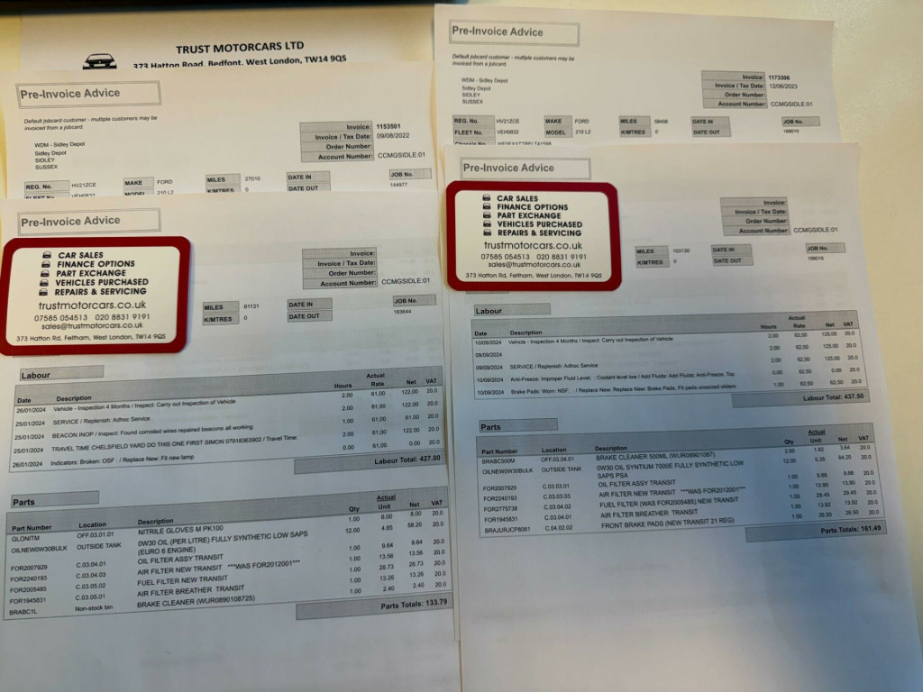 One-Owner From New, L3H3 Long Wheel Based and High Roof and RWD, Full Service History (prints/invoices present), Fresh new oil and filters service just done, clean example van. We are delighted to present to you this wonderful vehicle, newly arrived in our stock. This example has previously been owned by a large organisation that have regularly maintained the vehicle, visible from its internal and external condition. Internal and external condition of the vehicle are very good for the age and mileage; you can judge for yourself just by looking at the images and the video (more, larger images available on our website TRUSTMOTORCARS CO UK) or hopefully if you visit us very soon. Please do get in touch with us should you wish to arrange a viewing or if you would like to have it delivered to your door. More images of this vehicle and many more are on our website so please feel free to visit us there; thank you. Part Exchange Welcome. -THREE MONTHS WARRANTY, -GUARANTEED MOT: WE WILL HAVE A NEW MOT DONE FOR YOU IF THE MOT RUNS OUT SOON, -AFFORDABLE FINANCE OPTIONS AVAILABLE - PLEASE GET IN TOUCH WITH US FOR MORE DETAILS, -OPTIONAL EXTENDED AA WARRANTY COVER, -MORE PHOTOS AND VIDEOS OF THIS VEHICLE AND MANY OTHERS ON OUR WEBSITE: TRUSTMOTORCARS CO UK, -PART EXCHANGE WELCOME., -WE ARE BASED NEXT TO HEATHROW AIRPORT, MINUTES TO M25 J14, M4, M40, M3 and A312, -NATIONWIDE DELIVERY AVAILABLE. nual air conditioning, adaptive cruise control with adjustable speed limiter, 70mph fixed engine governer, spare wheel - steel, 16in steel wheels, airbags - driver, alternator - standard duty 165amp, anti-lock braking system - abs with electronic brake force distribution - ebd, assist handle - located on b-pillar, auxiliary connection point - 1x12v - 60a connection located under driver seat pedestal, battery - cold start -20 degree c, bodyside mouldings - wide - self colour, bottle holder - twin 2 litre bottle capacity - facia-mounted, bulkhead - full steel, courtesy lights - header-mounted front with theatre dimming, curve control, daytime running lamps, door handles - self coloured, door mirrors - blind spot eliminator and integrated side indicator, door mirrors - manual, doors - unglazed rear, doors - unglazed rear doors - hinged for 180 degree opening - positive stop at 90 degree, dual-circuit front and rear discs with self-adjusting servo-assistance and abs, eba - emergency brake assist, esc - electronic stability control, easy clean floor - cab, electric windows - front, emergency brake warning, fold out front passenger seat table, ford easy-fuel capless refuelling system, ford eco mode - driver information system, ford sync with 4.2in tft screen, front - independent macpherson struts - coil springs - stabiliser bar and gas-pressurised shock absorbers - rear - leaf springs and gas-pressurised shock absorbers, front bumper - self colour, front grille - sterling grey, gearshift indicator light, glovebox - with lid and a4 file storage capability, headlights - halogen projector with black backgroud, headlights courtesy delay - 30 seconds duration, headlining - cab - moulded, heated front windscreen, heater - positive thermal coefficient - ptc, heavy duty alternator, hill start assist, ice pack 17, immobiliser - safeguard passive anti-theft system - pats - insurance-approved category 2 immobiliser, lac - load adaptive control, less easy clean floor, less steel spare wheel, liftgate - cargo door handle - self colour, load compartment - din 75410 compliant tie-down loops, loadspace compartment light, locks - audio mislock feedback - audible signal if a door is ajar when locking activated, locks - auto locking on drive-away - doors automatically lock at 8 kmh or 5 mph, locks - auto relocking - doors relock after 45 seconds if no door is opened, locks - configurable unlocking, locks - key operated bonnet release, locks - power door deadlocks - shielded with strengthened mountings, mudflaps - rear, passenger side sliding load door - solid, power assisted steering, power point socket - 2x 12v, rsc - roll stability control, radio with remote stalks, rear bumper - self colour with integrated step, remote central door locking with deadlocks, remote central locking with one key fob, seatbelts - 3 point diagonal inertia reel - all seats, seats - drivers 4-way adjustment with armrest, seats - dual passenger, selectable drive mode, side wind mitigation, single agm battery, steering column - rake and reach adjustment, steering wheel - 4 spoke polyurethane, storage - drivers side - storage compartment on facia top with lift up lid, storage - front door map pockets, storage - underseat stowage compartment under dual passenger seat, trip computer, tyre inflator kit, vehicle identification number - vin - visible, vehicle maintenance monitor, water in fuel filter with sensor, wheel covers - half caps, wipers - front variable-intermittent with electric wash