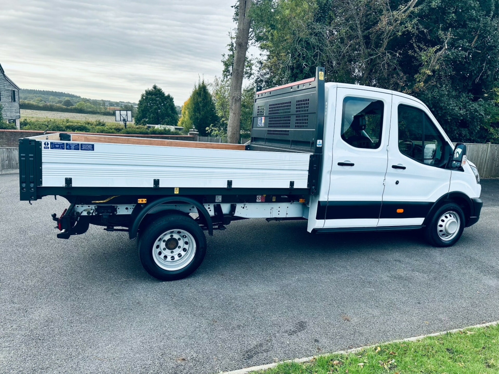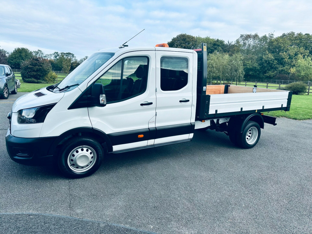 Introducing the 2023/73 REG Ford Transit 2.0 350 EcoBlue Leader Tipper Double Cab(DRW)rwd the ultimate commercial vehicle for your business needs. With a mere 43000 miles on the clock, FSH, this diesel-powered workhorse is built to last. The double cab features 7 spacious seats and 4 doors for easy access, making it perfect for transporting your crew to and from the job site. With a gross weight of 3500kg, this vehicle can handle heavy loads with ease. The tipper functionality adds versatility to the vehicle, making it ideal for construction and landscaping tasks. Powered by a 130ps engine, this manual RWD (DRW)vehicle is designed for maximum efficiency and performance. Upgrade your fleet with the 2023 Ford Transit and experience unparalleled reliability and practicality for your business. r conditioning, bluetooth connection, usb/ipod interface, dual passenger seat, adjustable steering column, multi-function steering wheel, power steering, traction control, trip computer, abs, air bag, service indicator, immobiliser, remote alarm, remote central locking, electric windows, digital radio, media storage, steering wheel audio controls, front head restraints, lumbar support, retractable headrests, solid paint, spare wheel, tow pack, 7 seat crew cab, air conditioning, alloy body, drivers air bag, electri wind deflector, euro 6, ulez compliant, usb connection