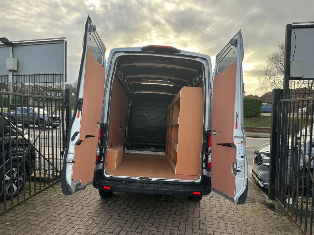 superb transit 350 L3H3 170ps LIMITED sync 4 big screen media air con cruise control bi-xenon headlights rear work light surround cameras permanent rear view cameraply lining racking carPlay alloy wheels in touchscreen with new sync 4 system, power point socket - 2x 12v, 16in alloy wheels, bumper - front body colour, cargo door handle - self colour, door handles - self coloured, door mirrors - blind spot eliminator and integrated side indicator, electrically-operated front windows with one-shot up-down on drivers side, front grille - chrome, led downlighter, locking wheel nuts, mudflaps - rear, power fold back dual power mirrors, quickclear heated windscreen, rear bumper - self colour with integrated step, single rear wheels, tinted glass, tyre repair kit, wide bodyside - grey moulding, 2nd remote key, advance pack 1 - camera, airbags - driver, anti-lock braking system - abs with electronic brake force distribution - ebd, curve control, eba - emergency brake assist, esp and hill launch assist, emergency brake warning, ford easy fuel capless refuelling system with misfuel inhibitor, immobiliser - safeguard passive anti-theft system - pats - insurance-approved category 2 immobiliser, locks - auto locking on drive-away - doors automatically lock at 8 kmh or 5 mph, locks - auto relocking - doors relock after 45 seconds if no door is opened, locks - configurable unlocking - 2-stage unlocking, locks - key operated bonnet release, locks - power door deadlocks - shielded with strengthened mountings, mechanical parking brake, rsc - roll stability control, remote central locking with two key fobs, seatbelts - 3 point diagonal inertia reel - all seats, vehicle identification number - vin - visible, assist handle - located on b-pillar, automatic windshield wiper, bottle holder - twin 2 litre bottle capacity - facia-mounted, bulkhead - full steel, doors - unglazed rear doors - hinged for 180 degree opening - positive stop at 90 degree, gearshift knob - leather-trimmed, headlining - cab - moulded, heater - positive thermal coefficient - ptc, kerbside side load door, keyless start, lac - load adaptive control, less steel spare wheel, load compartment - din 75410 compliant tie-down loops, load compartment light - led airline rail, locking glove box lid, locks - audio mislock feedback - audible signal if a door is ajar when locking activated, mykey, seats - drivers 4-way adjustment with armrest, semi-automatic air conditioner, steering column - rake and reach adjustment, steering wheel - 4 spoke leather trimmed, storage - front door map pockets, storage - underseat stowage compartment under dual passenger seat, vehicle maintenance monitor, battery - cold start -20 degree c, digital rear view mirror, epas - electric power assisted steering, extra heavy duty alternator, gearshift indicator light, mlsd - limited slip front axle, selectable drive mode, standard duty battery, suspension - front independent macpherson struts -variable rate coil springs - stabiliser bar - gas-pressurised shock absorbers and rear leaf springs, trip computer, water in fuel filter with sensor, bi-xenon headlamps including led daytime running lamps, front fog lights, headlights - levelling control, headlights courtesy delay - 30 seconds duration, high mounted stop lamp