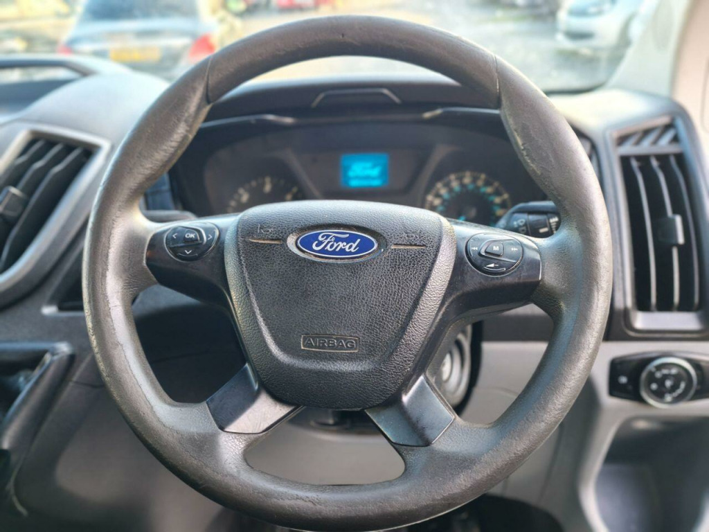 . 16in Steel Wheels, 8-Way Driver Seat with Fore-Aft - Recline -Height and Tilt, ABS - Anti-lock Braking System, Airbags - Driver, Armrest - Drivers, B Pillar Assist Handle, Bluetooth Hands-free Phone, Bottle Holder - 2x Facia-Mounted, Bulkhead - Full Steel, Bumper - Front Body Colour - Partial, Cab Floor Covering - Rubber, Courtesy Light - Overhead with Theatre-Style Dimming, Curve Control, Daytime Running Lamps, Dead-Lock, Door Handles - Self Coloured, Door Mirrors - Manual Adjust, Doors - Passengers Sliding Side Load Door and Step, Driver Seat Belt Minder, EBA - Emergency Brake Assist, EDCC - Electronic Dynamic Cornering Control, ESP - Electronic Stability Programme, Electric Windows - Front, Emergency Brake Warning, Ford Connected Audio System, Ford Easy-Fuel Capless Refuelling System, Ford Eco Mode - Driver Information System, Front Seats - Seat Back Tray Tables, Gearshift Indicator Light, Glovebox with A4 File Storage, Headlining - Cab - Moulded, Hill Start Assist, Immobiliser - Safeguard Passive Anti-Theft System - PATS - Insurance-Approved Category 2 Immobiliser, LAC - Load Adaptive Control, Less Easy Clean Floor, Less Spare Wheel, Load Compartment - Tie Down Loops x8, Loadspace Compartment Light, Locks - Audio Mis-Lock Feedback, Locks - Configurable Unlocking, Locks - Key Operated Bonnet Release, Mud Flaps - Rear, Overhead Storage Shelf, Power Steering, ROM - Roll Over Mitigation, Rear Step - Integrated in Bumper, Recirculation Heater - Front, Remote Central Locking, Seats - Dual Passenger, Side Wind Mitigation, Standard Duty Alternator - 150amp, Steering Column - Rake and Reach Adjustment, Steering Wheel - 4 Spoke PU, Storage - Drivers Side - Storage Compartment on Facia Top with Lift Up Lid, Storage - Front Door Map Pockets, Stowage Box - Front Passenger Underseat Area, TVC - Torque Vectoring Control, Traction Control - TC, Trip Computer, Two 12V Power Socket, Wheel Covers - Half Caps, Wide Bodyside Mouldings, Wipers - Front Variable Intermittent. Part service history