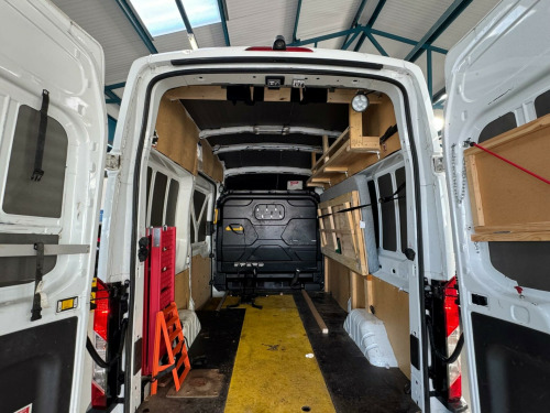 This 2018 Ford Transit 2.0 350 EcoBlue RWD L2 H3 Euro 6 5dr presents a compelling proposition with its remarkably low mileage of just 79,000 miles for its age, and a clear vehicle history check. BT Telecoms owned van so very well maintained.Very rare Hightop model - Very easy to park yet practical with massive height inside. Ideal for any conversion. Very rare factory Air conditioning. Comes with 12 Months Mot, Serviced on sale and 3 months warranty. No Vat.Powered by a robust 2.0L Diesel engine, this Euro 6 compliant van offers reliable performance and efficiency. It comes equipped with practical features such as Door Mirrors featuring a Blind Spot Eliminator and Integrated Side Indicator, which includes Blind Spot Assistance, enhancing driver awareness. The Ford Connected Audio System with Bluetooth connectivity ensures you stay connected on the go.The Transit 350 derivative is designed for capability, boasting a substantial towing weight of 2800 kg, making it well suited for a variety of professional needs. The combination of its advanced safety features, including the Blind Spot Assistance, and its strong towing capacity sets it apart from other vans in its class. This vehicle's thoughtful specification and well maintained provenance make it a sound choice for those seeking a dependable and capable commercial vehicle. in steel wheels, 8-way driver seat with fore-aft - recline -height and tilt, airbags - driver, anti-lock braking system - abs with electronic brake force distribution - ebd, armrest - drivers, assist handle - located on b-pillar, auxiliary connection point - 1x12v - 60a connection located under driver seat pedestal, battery - cold start -20 degree c, battery - single absorbent glass mat - agm, bodyside mouldings - wide - self colour, bottle holder - twin 2 litre bottle capacity - facia-mounted, bulkhead - full steel, bumper - front body colour - partial, courtesy lights - header-mounted front with theatre dimming, curve control, daytime running lamps, door handles - self coloured, door mirrors - blind spot eliminator and integrated side indicator, door mirrors - manual adjust, doors - passengers sliding side load door and step, doors - unglazed rear doors - hinged for 180 degree opening - positive stop at 90 degree, driver seat belt minder, dual-circuit front and rear discs with self-adjusting servo-assistance and abs, eba - emergency brake assist, edcc - electronic dynamic cornering control, esc - electronic stability control, emergency brake warning, floor covering - cab easy-clean rubber, ford connected audio system, ford easy-fuel capless refuelling system, ford eco mode - driver information system, front grille - sterling grey, gearshift indicator light, glovebox with a4 file storage, headlights - courtesy delay, headlining - cab - moulded, heater - positive thermal coefficient - ptc, hill start assist, immobiliser - safeguard passive anti-theft system - pats - insurance-approved category 2 immobiliser, interior lighting - battery saver - 30min, lac - load adaptive control, less easy clean floor, less steel spare wheel, liftgate - cargo door handle - self colour, load compartment - din 75410 compliant tie-down loops, loadspace compartment light, locks - audio mislock feedback - audible signal if a door is ajar when locking activated, locks - auto locking on drive-away - doors automatically lock at 8 kmh or 5 mph, locks - auto relocking - doors relock after 45 seconds if no door is opened, locks - configurable unlocking, locks - key operated bonnet release, locks - power door deadlocks - shielded with strengthened mountings, locks - remote control central locking with one key fob, mud flaps - rear, overhead storage shelf, power point socket - 2x 12v, power-assisted steering - pas, rsc - roll stability control, rear bumper - self colour with integrated step, recirculation heater - front, seat belts - 3-point diagonal inertia reel - all seats, seat tray-table, seats - dual passenger, side wind mitigation, single agm battery, standard duty alternator - 150amp, steering column - rake and reach adjustment, steering wheel - 4 spoke polyurethane, storage - drivers side - storage compartment on facia top with lift up lid, storage - front door map pockets, storage - underseat stowage compartment under dual passenger seat, suspension - front independent macpherson struts -variable rate coil springs - stabiliser bar - gas-pressurised shock absorbers and rear leaf springs, traction control - tc, trip computer, tyre inflator kit, vehicle identification number - vin - visible, water in fuel filter with sensor, wheel covers - half caps, windows - electrically-operated front with one-touch on drivers side, wipers - front variable-intermittent with electric wash