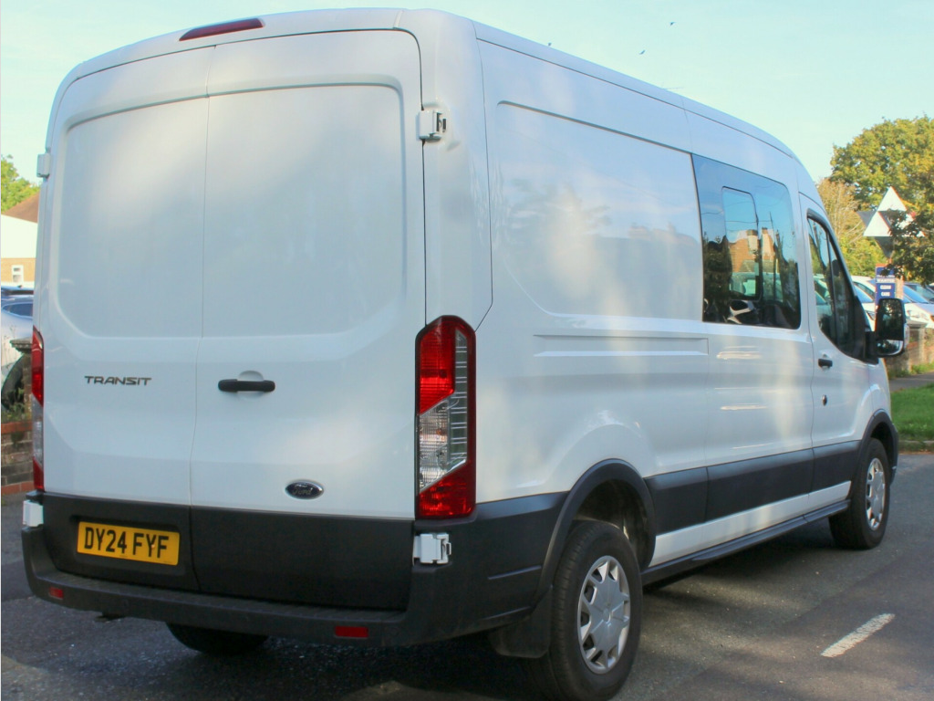 Introducing the 2024 Ford Transit 2.0 350 EcoBlue Trend Crew Van Double Cab, a reliable and efficient Combi Van perfect for all your commercial needs. With only 18450 miles on the clock, this Diesel-powered vehicle comes with 6 seats and 5 doors, making it ideal for transporting both passengers and cargo. Built with a double cab design and a gross weight of 3500kg, this van offers ample space and comfort while ensuring maximum safety. Equipped with a 130 ps engine and a manual transmission, the Transit delivers excellent performance and fuel efficiency. Not to mention, its features such as Frozen White exterior, 16in Steel Wheels, and Dual Power Heated Signal Mirrors make it a practical and stylish choice for any business. Upgrade your fleet today with the 2024 Ford Transit and experience the ultimate in commercial vehicle versatility and reliability., OPEN 7 DAYS A WEEK - A SELECTION OF UP TO 200 CARS AND VANS AVAILABLE. Click on dealer 'VISIT WEBSITE' link for many more large photographs of this car. We are a West Sussex Trading Standards Approved 'Buy with Confidence Dealership'. in steel wheels, bumper - front body colour - partial, driver large head - short arm mirror, dual power heated signal mirrors, electric windows - front, electric windshield defroster, ford easy fuel system, plastic rear bumper, rear splash guards, single rear wheels, single stage vehicle, standard radiator grille, tinted glass, tyre repair kit, wheel covers - full, wide bodyside - grey moulding, windows - sliding 2nd row - drivers side, windows - sliding 2nd row - passengers side, 200 degree hinged rear cargo door, 2nd-3rd row courtesy light, automatic air conditioner, automatic windshield wiper, bottle holder - twin 2 litre bottle capacity - facia-mounted, complete rubber inside floor cover, config interior lighting battery saver - 10 minutes, dciv moulded bulkhead, extended molded headliner, gearshift knob - moulded, header mounted courtesy light - 2 maplights, interior rear view mirror - removal, interior trim accent pack b, kerbside side load door, keyless start, lac - load adaptive control, less interior rear view mirror, load compartment - tie down loops, locking glove box lid, locks - audio mislock feedback - audible signal if a door is ajar when locking activated, mykey, overhead console, rear seat pack 2, recirculation heater, roof storage for driver sunglasses, seats - drivers 4-way adjustment with armrest, side-rear door trim panel - level 1, steering column - rake and reach adjustment, steering wheel - 4 spoke leather trimmed, storage - front door map pockets, 4 radio speakers, 5g modem, emergency assistance, power point socket - 2x 12v, sync 4, airbags - driver, airbags - passenger deactivation, anti-lock braking system - abs with electronic brake force distribution - ebd, configurable unlocking - config 2, curve control, door entry remote control unit - 2 fobs, driver assistance pack 2, eba - emergency brake assist, electric parking brake, emergency release hammer, front seat belt pretensioner - driver, isofix - child seat attachments - 2x second row, immobiliser - safeguard passive anti-theft system - pats - insurance-approved category 2 immobiliser, locks - auto locking on drive-away - doors automatically lock at 8 kmh or 5 mph, locks - auto relocking - doors relock after 45 seconds if no door is opened, locks - key operated bonnet release, power door deadlocks - shielded, power lock group, rsc - roll stability control, remote central locking with two key fobs, seat belt reminder - driver and passenger seats, seatbelts - 3 point diagonal inertia reel - all seats, thatcham category 1 alarm c, two step door unlock system, vehicle identification number - vin - visible, wrong way alert, auto high headlamp, daytime running lamps, headlights - halogen, headlights - levelling control, headlights - quad beam, high-mounted rear brake light, gearshift indicator light, intelligent speed assist, non-limited slip front axle, power steering, rear axle alt a, selectable drive mode, standard duty battery, starter equipment -20 degrees c, trip computer, tyre pressure sensors, water in fuel filter with sensor