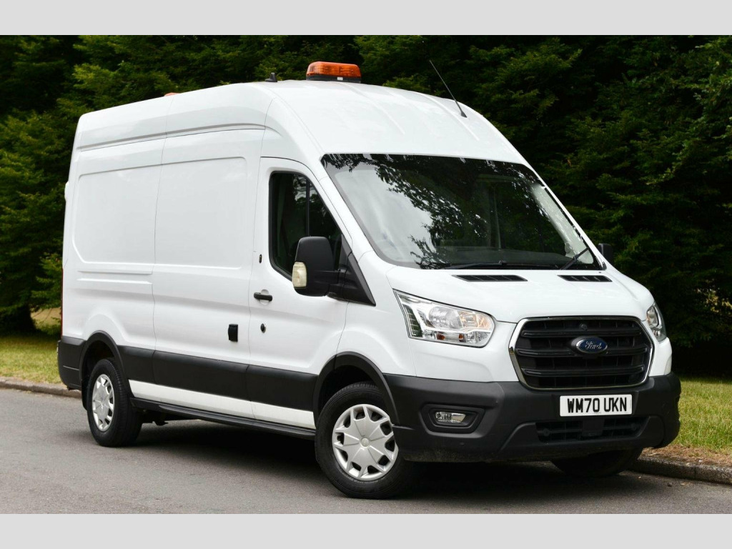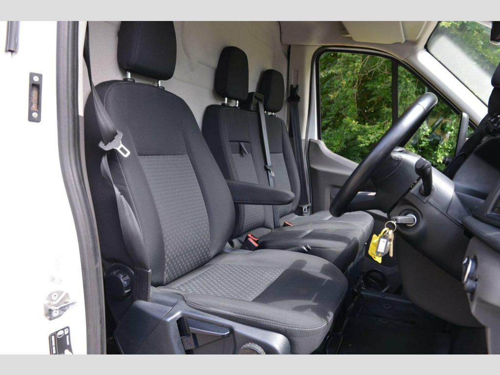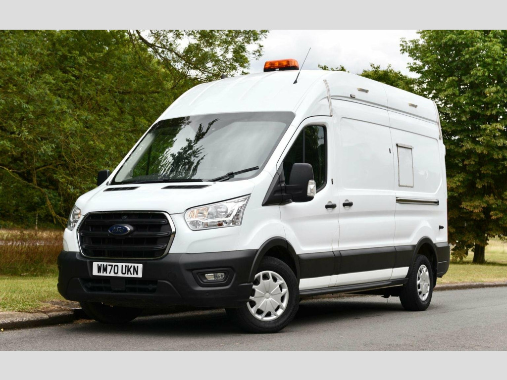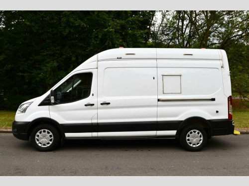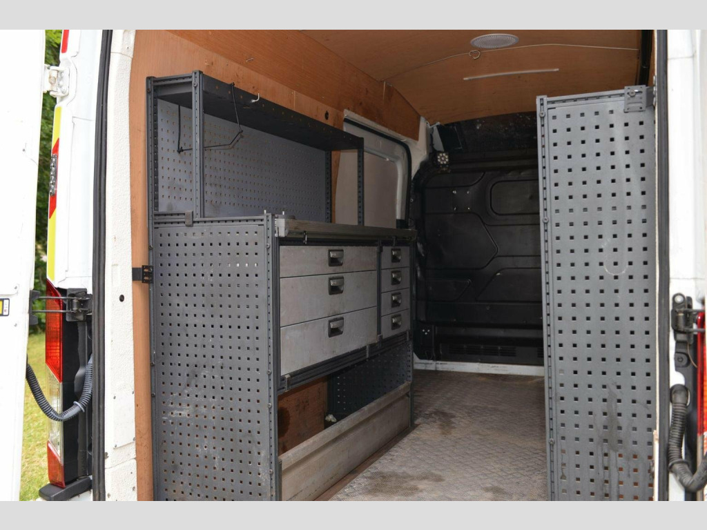 Ford Transit 2.0 350 EcoBlue Trend FWD L3 H3 Euro 6, Long Wheel Base High Roof model, in superb condition throughout. This van has had only one owner from new and comes fully equipped with a host of features and extras. From the factory it includes air conditioning, a large LCD screen with Android Auto and Apple CarPlay, cruise control, electric folding mirrors, and a heated windscreen. Its also fitted with additional security locks, roof beacons, a powerful 2000w inverter, and easy-to-remove racking with built-in drawers, making it ideal for work use. Drives perfectly, very clean inside and out, and ready to go straight to work.
