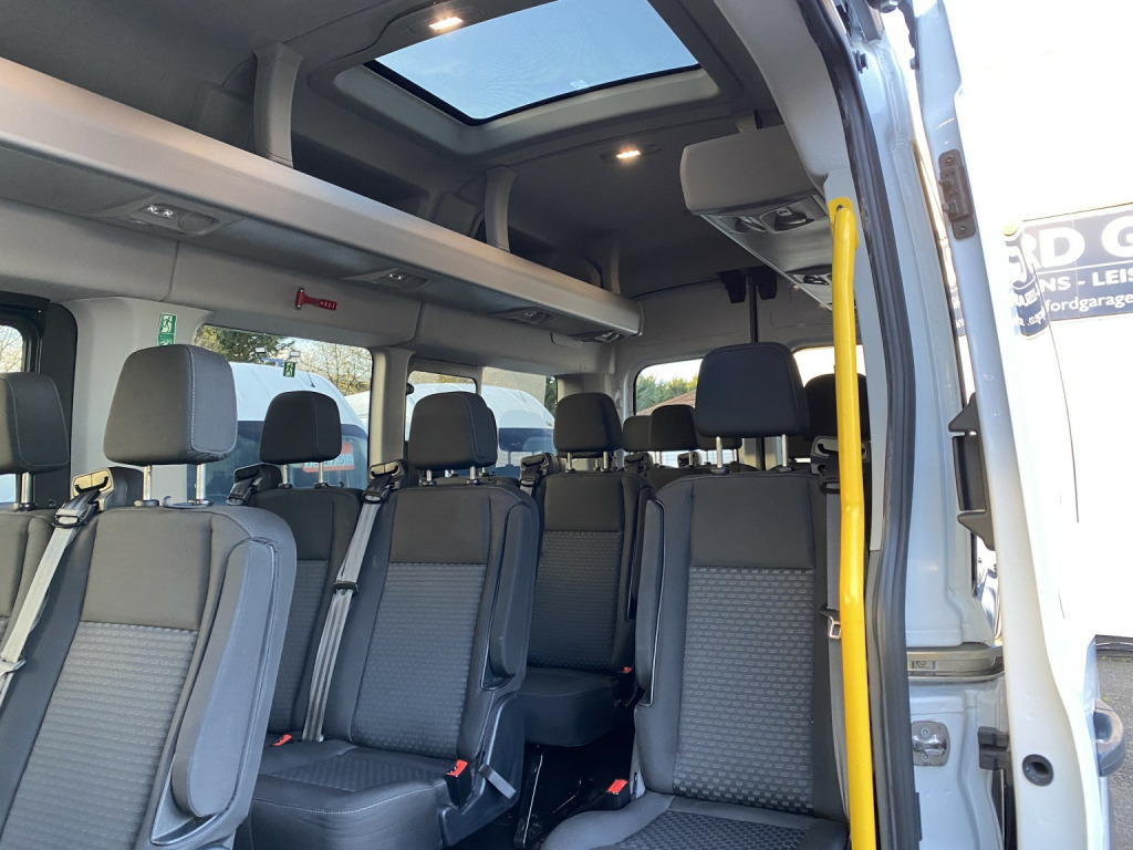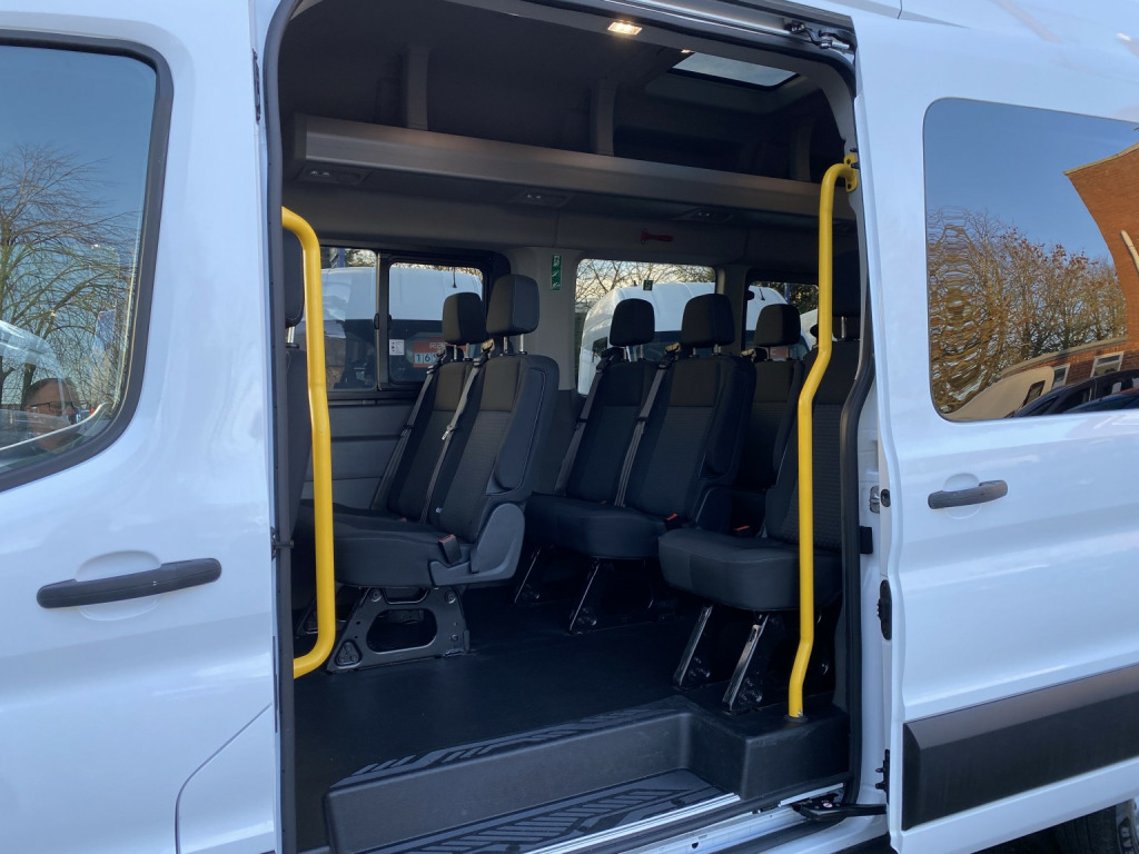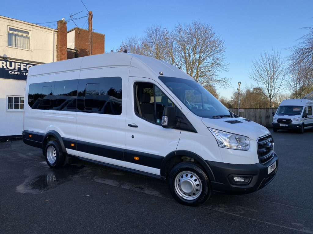 Absolutely Stunning, Low Mileage.. Ford Transit 460 L4 H3 2.0 E/Blue 130 PS Trend 17 Seater MiniBus in Frozen White ... Adaptive Cruise Control, Lane Keeping/Driver Assist, Air Conditiong, Cruise Control, Electric Pack, Electric Step etc...The vehicle will come with a clean HPI report, new MOT and Serviced at the advertised price. PSV Testing and Tacho fitting packages available...We can also supply and fit Genuine Ford New Wet Timing Belts ...We can arrange videos for this vehicle. Nationwide delivery available, RAC Warranties available up to 24 Months. Finance facilities available, Please call to enquire. Export enquiries welcome. This vehicle is physical stock and available to purchase today.