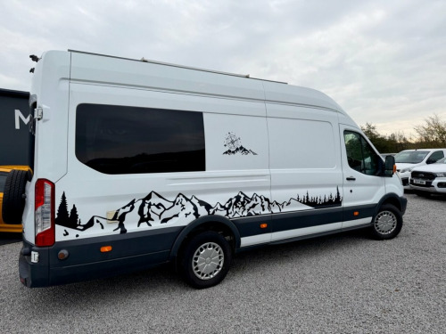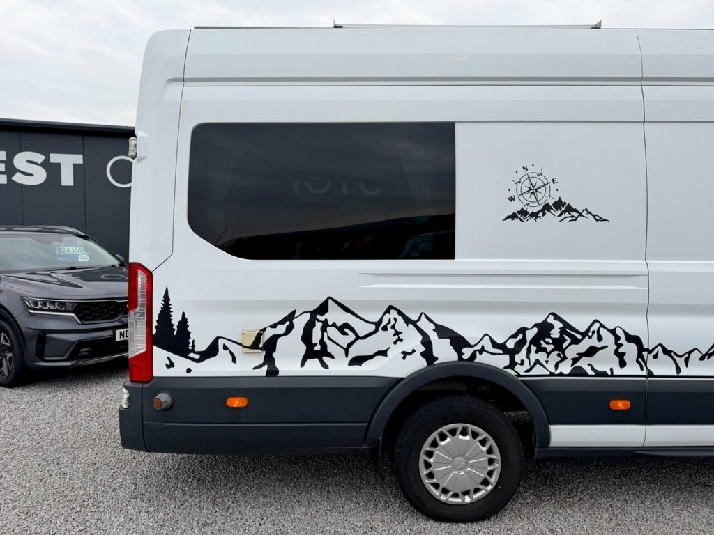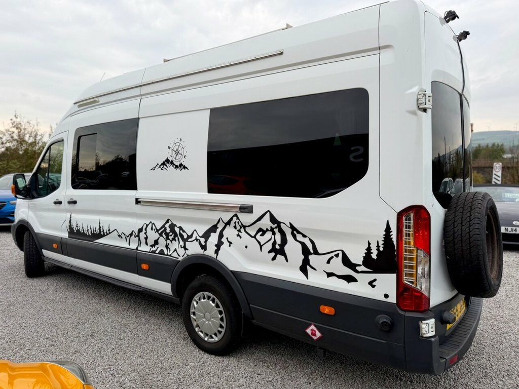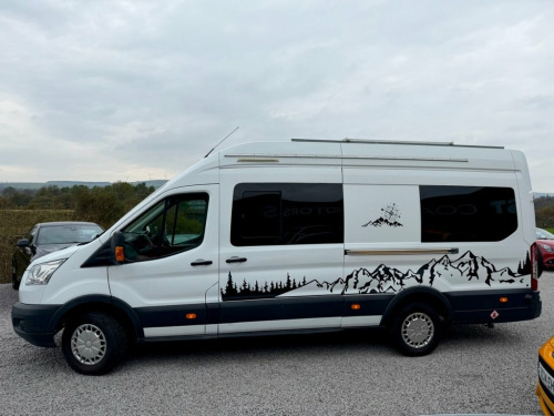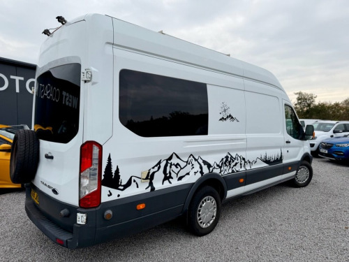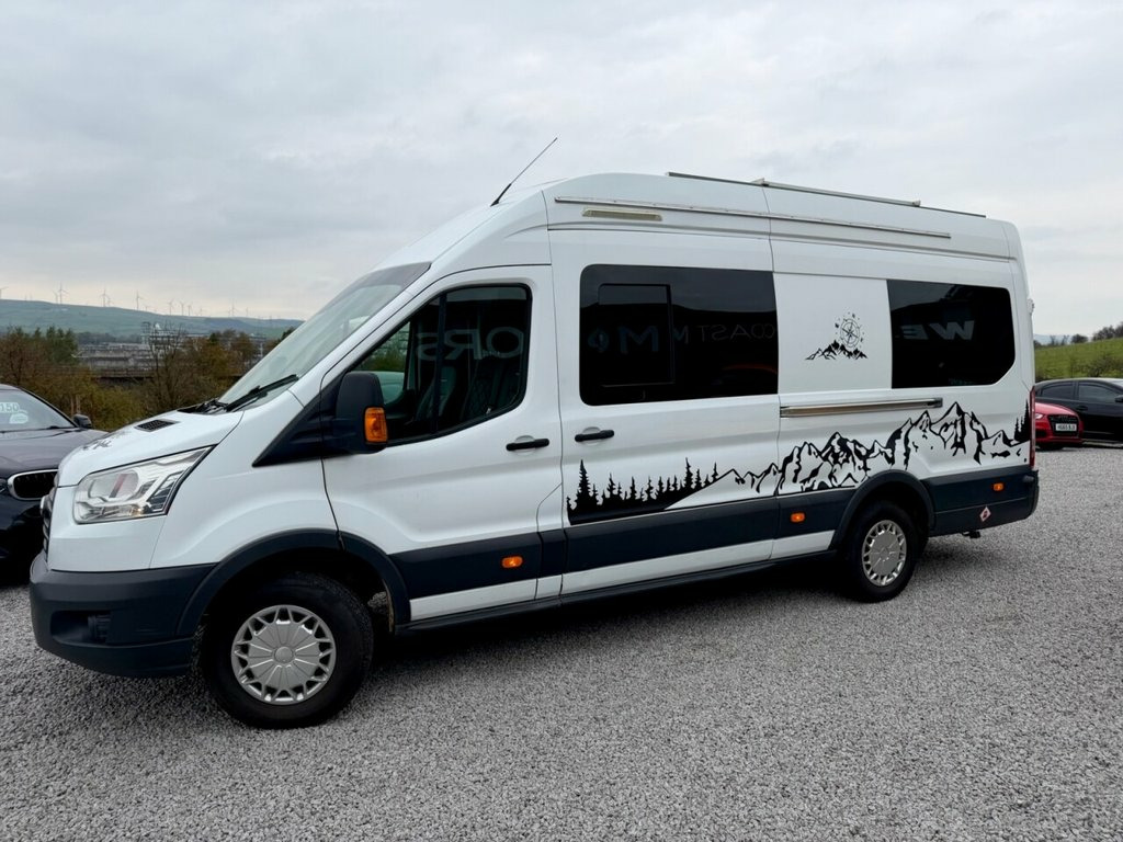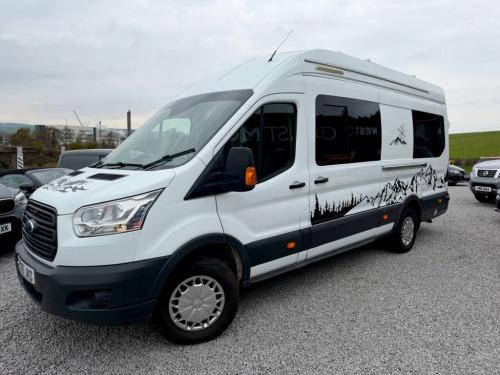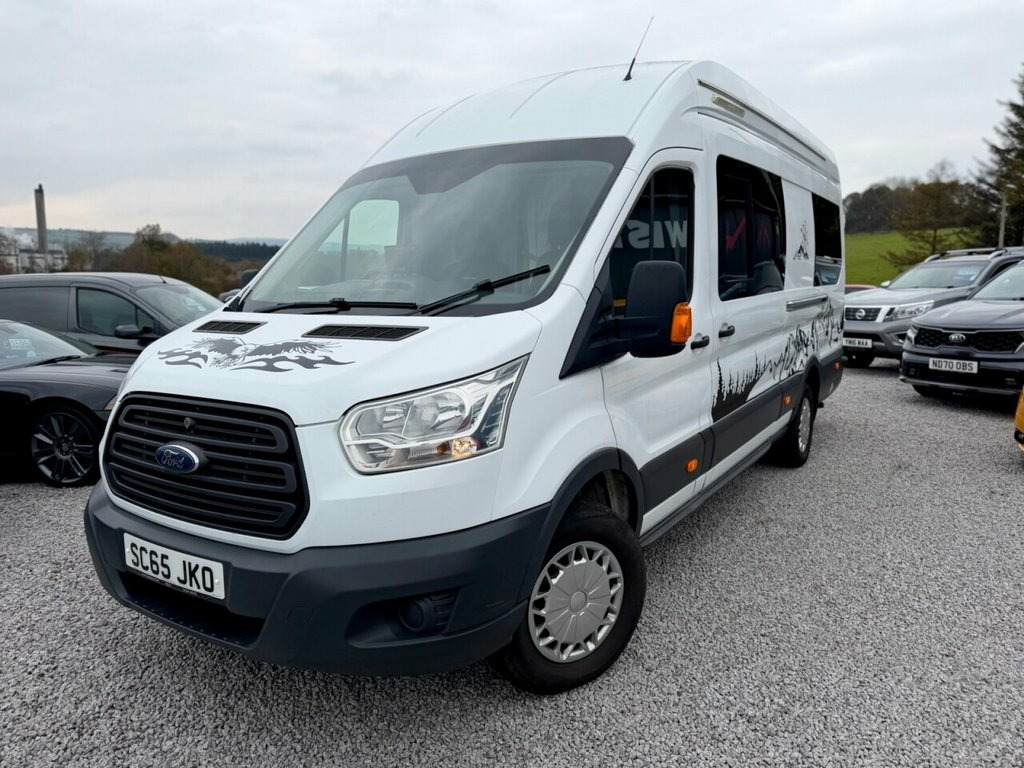 2015 (65) Ford Transit 2.2 TDCi 350 L4 H3 Camper Conversion West Coast Motors are proud to present this professionally converted 2015 Ford Transit 2.2 TDCi 350 L4 H3 Camper Van, finished in white and full custom camper interior. A superb long-wheelbase, high-roof camper that offers incredible space, comfort, and equipment. Powered by the reliable 2.2-litre TDCi diesel engine with 6-speed manual transmission, this Transit has covered 118,000 miles and benefits from a new engine fitted earlier this year, with great service history present to back it up. Starts and drives exactly as it should, with twin rear cameras for easy manoeuvring and enhanced visibility. Inside, it's been fully converted into a high-spec home on wheels—featuring twin side sofas that convert into a double bed, full kitchen setup with twin gas hob, integrated sink, oven/grill, fresh/grey water tanks, solar power system with Victron charge controller, power inverter, and full mains hookup. There's a dedicated toilet compartment, modern worktops, spotlights, LED lighting, TV mount, smart storage throughout, 4G/5G aerial ready for a SIM card router and diamond-stitched leather seating upfront. With a well-thought-out layout and top-quality craftsmanship throughout, this Transit offers unbeatable value in the camper market. It's been tastefully finished and is fully off-grid capable for wild camping, weekends away, or longer adventures. 2 keys supplied, 3 months Warranty as standa 16in Steel Wheels, ABS - Anti-lock Braking System, AUX Connection, Airbags - Driver, Armrest - Drivers, Auto Locking On Drive Away - Door Auto L, Auxiliary Connection Point - 3X60 Amp - , B Pillar Assist Handle, Battery - Single, Bluetooth Hands-free Phone, Bottle Holder - 2x Facia-Mounted, Bulkhead - Full Steel, Bumper - Front Body Colour - Partial, Cab Floor Covering - Rubber, Courtesy Light - Overhead with Theatre-S, Curve Control, Daytime Running Lamps, Dead-Lock, Door - Auto Relocking Enabled, Door Handles - Self Coloured, Door Mirrors - Blind Spot Eliminator, Door Mirrors - Manual Adjust, Doors - Passengers Sliding Side Load Doo, Driver Seat Belt Minder, EBA - Emergency Brake Assist, E