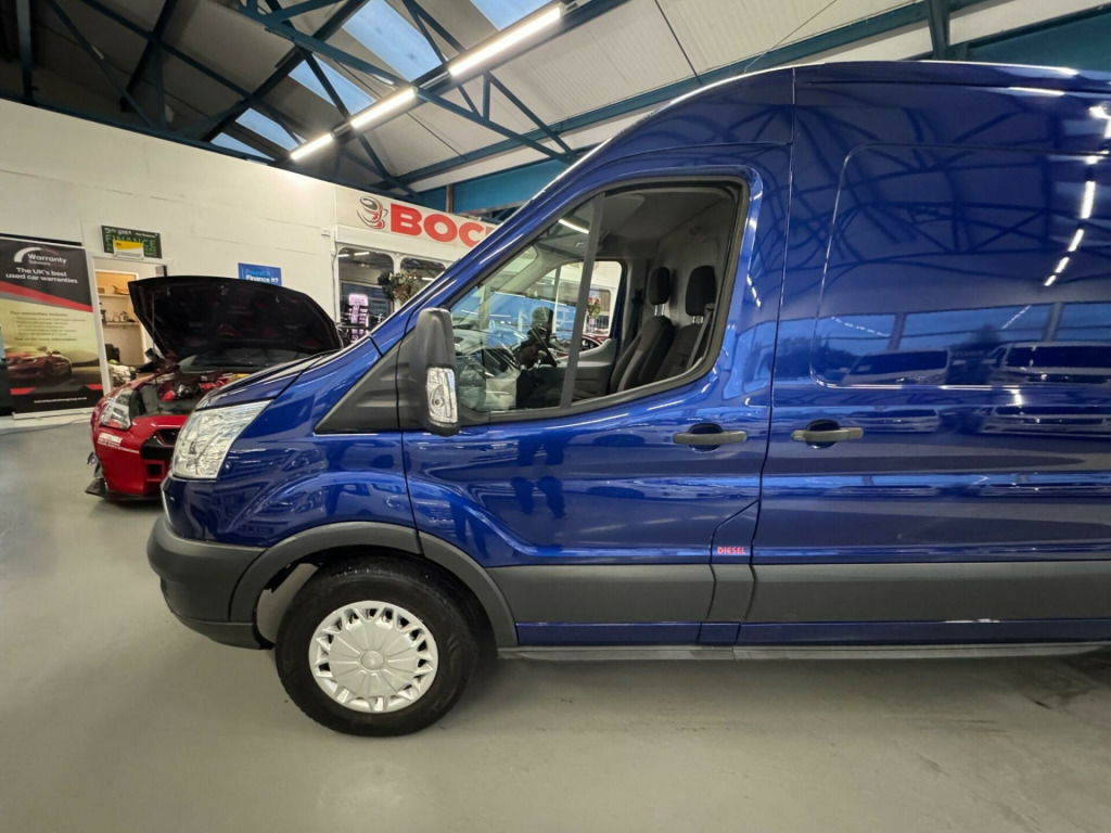 This 2014 Ford Transit 2.2 TDCi 350 Trend FWD L3 H2 offers exceptional value with its remarkably low mileage of just 67,000 miles, especially for a vehicle of its age, and has been owned by only one careful owner. Powered by a reliable 2.2 litre TDCi diesel engine, this Trend derivative is equipped with practical features designed to enhance your driving and working experience. These include Bluetooth hands free phone connectivity, rear parking sensors for easier manoeuvring, front parking sensors, and blind spot eliminator door mirrors for added safety.With a generous cargo volume of 10,800 litres, this Transit is ready for substantial loads, and its towing weight of 2800 kg provides excellent capability. The low insurance group rating further highlights its cost effectiveness, indicating that running this vehicle is more economical compared to similar models. This combination of low ownership, minimal mileage, and practical features makes this Ford Transit a sensible and capable choice. in steel wheels, 2nd remote key, abs - anti-lock braking system, airbags - driver, armrest - drivers, auto wipers and auto headlights, bluetooth hands-free phone, bottle holder - 2x facia-mounted, bulkhead - full steel, cab floor covering - rubber, cruise control with adjustable speed limiter, daytime running lamps, dead-lock, door mirrors - blind spot eliminator, doors - hinged rear doors unglazed, driver seat belt minder, edcc - electronic dynamic cornering control, esp - electronic stability programme, easy clean load floor, electric windows - front, emergency brake warning, fold out front passenger seat table, ford audio system with sync and applink, ford easy-fuel capless refuelling system, front fog lights, front grille - titanium effect, front parking sensors, gear knob - leather, gearshift indicator light, glovebox with a4 file storage, headlights - automatic, headlights - halogen projector, headlights - static cornering lights, heated windscreen, hill start assist, immobiliser - safeguard passive anti-theft system - pats - insurance-approved category 2 immobiliser, lac - load adaptive control, load compartment - tie down loops x8, lockable glovebox, mud flaps - rear, overhead storage shelf, parking sensor - rear, power fold door mirrors, power steering, rom - roll over mitigation, radio - cd player, remote central locking, sync with applink, sync with emergency assistance, seats - drivers 10-way adjustment, seats - drivers lumbar support, seats - dual passenger, side loading door - nearside, spare wheel - steel, spare wheel lock, steering column - rake and reach adjustment, steering wheel - leather, steering wheel - multifunction, stowage box - front passenger underseat area, tool kit, trip computer, two 12v power socket, waist height cargo area trim boards