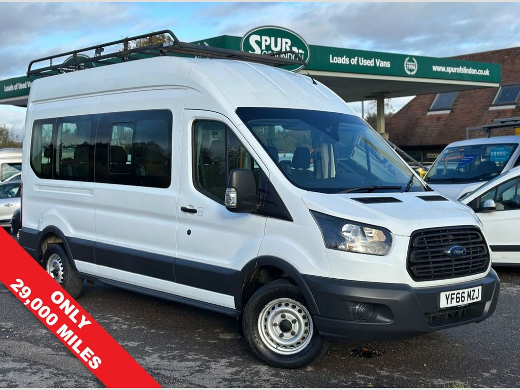 2016 FORD TRANSIT 2.2 TDCi 410 HDT Minibus 5dr Diesel Manual L3 H3 (15 seats) (196 g/km, 123 bhp) - CHAIN DRIVEN - ONLY 29,000 MILES - Featuring: 15 Seat, Cruise Control, Luggage Roof Rack With Ladder, Tow Bar, 6 Speed Manual, Bluetooth Phone Connection, Multi Function Steering Wheel, One Registered Owner £15,995+VAT Finance from £342.92 p/m*. QUALITY COMMERCIAL VEHICLES! * Options to extend to 6 or 12 months Warranty * Part exchange available * Competitive finance rates available * Apply for finance on our website * 5 * customer reviews * Sign writing available * Security locks, towbars & other extras available * Nationwide delivery * Multi vehicle purchase discount * Referral scheme incentive Buy with confidence, read our 5* reviews: https://www.spurofslindon.co.uk/testimonials.php Message us today or call 01243814651 or 07587130090 for more information! Full details, specification and photos can be found at: https://www.spurofslindon.co.uk 16in Steel Wheels 6.5x16 (235/65/ R16 BS, 2x12V Power Points, ABS and Emergency Brake Warning, Air Bag Driver, Auto Start-Stop System, Centre Rear Seat Belt, Cruise Control with Adjustable Speed Lim, Driver Seat Armrest, EDCC (Electronic Dynamic Cornering Contr, ESP, Ford Audio System with SYNC & Applin, Head Restraints - Front/Rear, Heated Windscreen, Hill Start Assist, Immobiliser, Lane Keeping Alert, Lane Keeping Alert with Driver Alert, Less Steel Spare Wheel, Power Assisted Steering (PAS), Power Side Step, Power Windows, Rake and Reach Steering Adjustment, Remote Central Locking, Steering Wheel Radio Controls, Tyre Inflator Kit, Upholstery Cloth - Charcoal Black