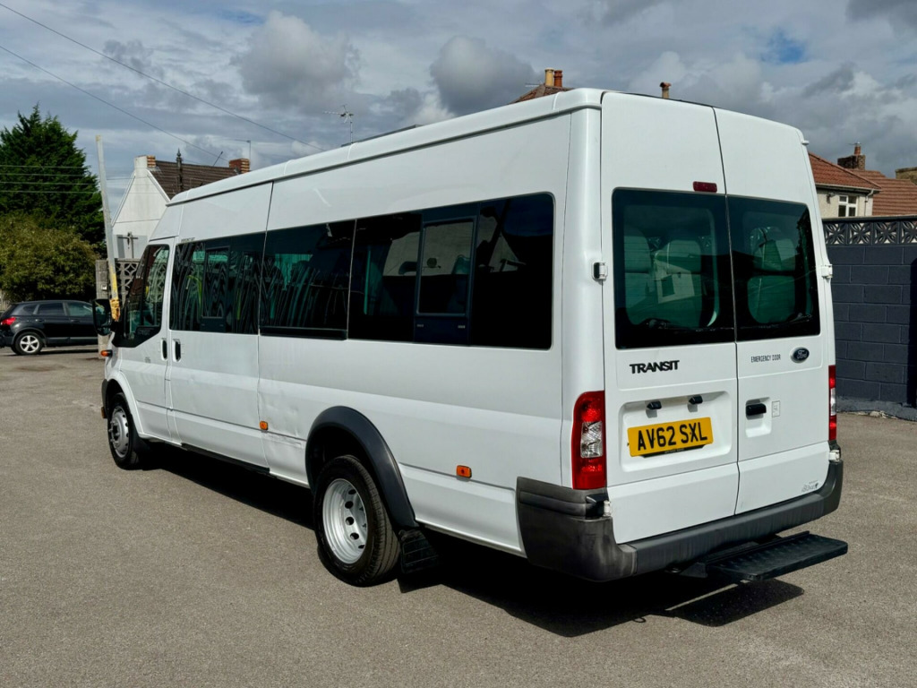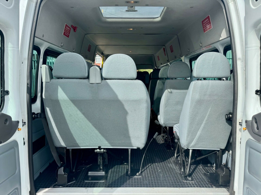 2012 FORD TRANSIT T430 L4 H2 XLWB 17 SEAT MINIBUS 2.2 TDCI 135 BHP ENGINE WITH 6 SPEED GEARBOX. ONE FORMER OWNER FROM NEW. NEW 12 MONTHS MOT (PVS MOT ELIGIBLE). REGULARLY SERVICED. ROOF SKYLIGHT (VERY RARE OPTION). 2 KEYS. SIDE SLIDING DOOR. TWIN REAR DOORS. ELECTRIC WINDOWS. HEATED FRONT AND REAR WINDOWS. REAR WIPERS. REAR SLIDING WINDOWS. REAR STEP. FM/AM/CD RADIO. AUX CONNECTIVITY. STEERING WHEEL CONTROLS. ARM RESTS. CUP HOLDERS. INTERNAL STORAGE. MULTI TRIP COMPUTER. REMOTE CENTRAL LOCKING. PLUS MUCH MORE. NO VAT. HPI CLEAR. ALL VEHICLES UNDERGO A 100 POINT PDI WORKSHOP INSPECTION. NO ADMIN FEES! LOW RATE FINANCE AVAILABLE*. PART EXCHANGE WELCOME. NATIONWIDE DELIVERY AVAILABLE. ALL VIEWINGS ARE BY APPOINTMENT. AVAILABLE MOST DAYS UNTIL 8pm, IF YOU REQUIRE MORE INFORMATION OR WOULD LIKE TO ARRANGE A VIEWING OR HAVE A VIDEO OF THE MINIBUS SENT TO YOURSELF VIA WHATSAPP PLEASE CALL ON 01172795071 OR MESSAGE ON 07487322582 -volt power point on drivers side, 16in steel wheels, 2 cup holders, abs and brake assist, battery-twin 590cca-70ah, brake traction control system (btcs), centre rear seat belt, daytime running lights, doors - glazed hinged rear doors, drivers airbag, electrically-operated front windows, electronic stability programme (esp), glass - tinted, head restraints - front with adjustable height, heated rear window, heated windscreen, hill launch assist (hla), light tinte glass, mirror - dipping, rear-view, model 6000 rds sterio radio/cd player with auxiliary mp3 connector, outboard passengers airbag, pats engine immobiliser, passenger side a pillar grab handle, power-assisted steering, rear centre step, remote central locking, side windows, van-2nd row, drivers side, sliding, side windows, van-2nd row, passenger side, sliding, speed limiter - 62mph, steering column-mounted controls, sunvisors - swivelling, third brake light, upholstery - tomy cloth