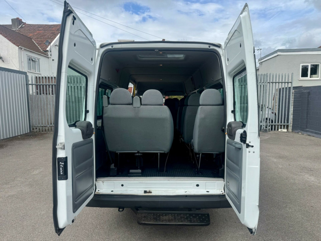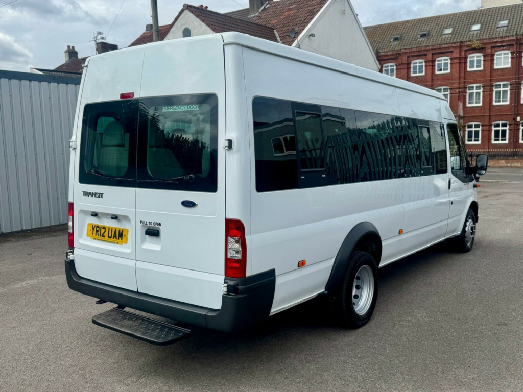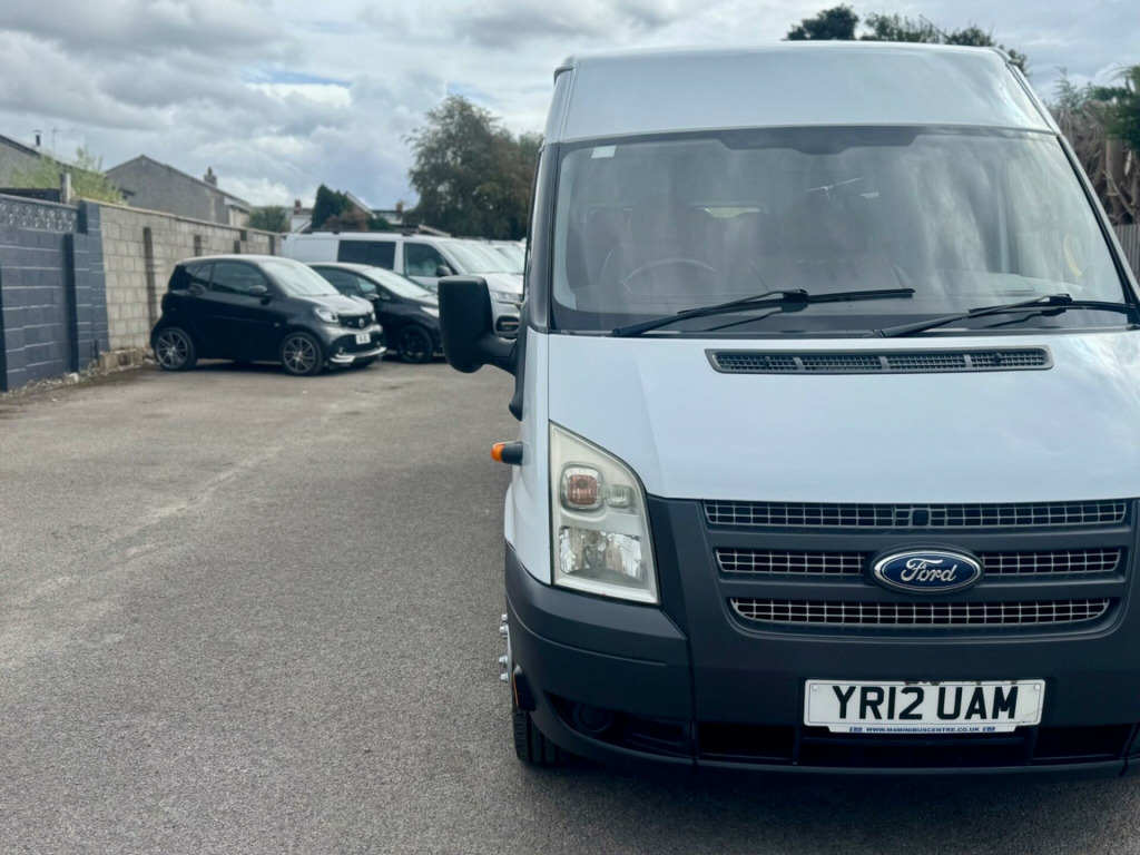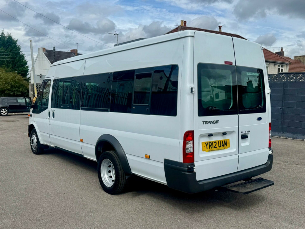 2012 FORD TRANSIT T430 L4 H2 XLWB 17 SEAT MINIBUS 2.2 TDCI 135 BHP ENGINE WITH 6 SPEED GEARBOX. ONE FORMER OWNER FROM NEW. NEW 12 MONTHS MOT (PVS MOT ELIGIBLE). REGULARLY SERVICED. ROOF SKYLIGHT (VERY RARE OPTION). 2 KEYS. SIDE SLIDING DOOR. TWIN REAR DOORS. ELECTRIC WINDOWS. HEATED FRONT AND REAR WINDOWS. REAR WIPERS. REAR SLIDING WINDOWS. REAR STEP. FM/AM/CD RADIO. AUX CONNECTIVITY. STEERING WHEEL CONTROLS. ARM RESTS. CUP HOLDERS. INTERNAL STORAGE. MULTI TRIP COMPUTER. REMOTE CENTRAL LOCKING. PLUS MUCH MORE. NO VAT. HPI CLEAR. ALL VEHICLES UNDERGO A 100 POINT PDI WORKSHOP INSPECTION. NO ADMIN FEES! LOW RATE FINANCE AVAILABLE*. PART EXCHANGE WELCOME. NATIONWIDE DELIVERY AVAILABLE. ALL VIEWINGS ARE BY APPOINTMENT. AVAILABLE MOST DAYS UNTIL 8pm, IF YOU REQUIRE MORE INFORMATION OR WOULD LIKE TO ARRANGE A VIEWING OR HAVE A VIDEO OF THE MINIBUS SENT TO YOURSELF VIA WHATSAPP PLEASE CALL ON 01172795071 OR MESSAGE ON 07487322582 -volt power point on drivers side, 16in steel wheels, 2 cup holders, abs and brake assist, battery-twin 590cca-70ah, brake traction control system (btcs), centre rear seat belt, daytime running lights, doors - glazed hinged rear doors, drivers airbag, electrically-operated front windows, electronic stability programme (esp), glass - tinted, head restraints - front with adjustable height, heated rear window, heated windscreen, hill launch assist (hla), light tinte glass, mirror - dipping, rear-view, model 6000 rds sterio radio/cd player with auxiliary mp3 connector, outboard passengers airbag, pats engine immobiliser, passenger side a pillar grab handle, power-assisted steering, rear centre step, remote central locking, side windows, van-2nd row, drivers side, sliding, side windows, van-2nd row, passenger side, sliding, speed limiter - 62mph, steering column-mounted controls, sunvisors - swivelling, third brake light, upholstery - tomy cloth