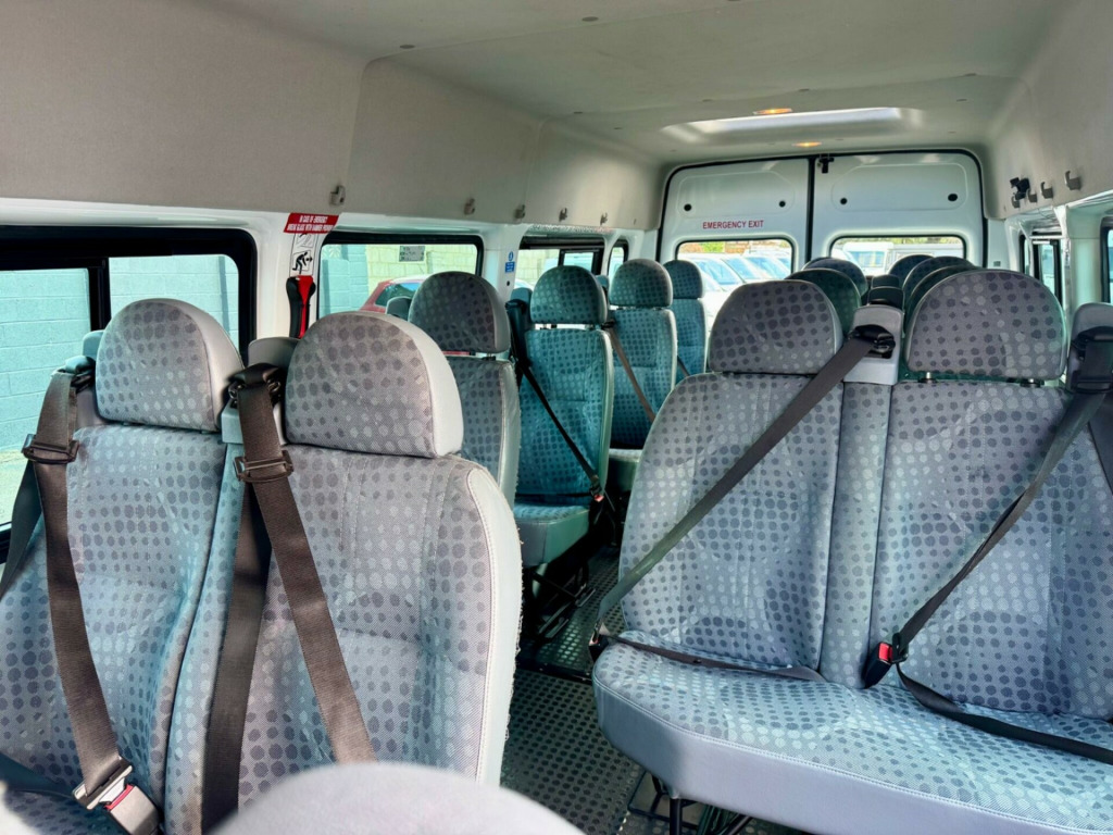 2013 FORD TRANSIT 430 17 SEAT MINIBUS RWD L4 H2 XLWB 2.2 TDCI 135 BHP ENGINE WITH 6 SPEED GEARBOX. NEW 12 MONTH MOT (PSV MOT AVAILABLE). REGULARLY SERVICED AND JUST BEEN SERVICED. 2 KEYS. AIR CONDITIONING. REAR SKY LIGHT. SIDE SLIDING DOOR. TWIN REAR DOORS. ELECTRIC WINDOWS. REAR SLIDING WINDOWS. HEATED FRONT AND REAR WINDOWS. REAR WIPERS. REAR STEP. FM/AM RADIO. CD / RADIO. AUX CONNECTIVITY. STEERING WHEEL CONTROLS. ARM RESTS. CUP HOLDERS. INTERNAL STORAGE. MULTI TRIP COMPUTER. REMOTE CENTRAL LOCKING. PLUS MUCH MORE. NO VAT. NO ADMIN FEES. ALL VEHICLES UNDERGO A 100 POINT PDI WORKSHOP INSPECTION. LOW RATE FINANCE AVAILABLE*. PART EXCHANGE WELCOME. NATIONWIDE DELIVERY AVAILABLE. ALL VIEWINGS ARE BY APPOINTMENT. AVAILABLE MOST DAYS UNTIL 8pm, IF YOU REQUIRE MORE INFORMATION OR WOULD LIKE TO ARRANGE A VIEWING OR HAVE A VIDEO OF THE MINIBUS SENT TO YOURSELF VIA WHATSAPP PLEASE CALL ON 01172795071 OR MESSAGE ON 07487322582 -volt power point on drivers side, 16in steel wheels, 2 cup holders, abs and brake assist, battery-twin 590cca-70ah, brake traction control system (btcs), centre rear seat belt, daytime running lights, doors - glazed hinged rear doors, drivers airbag, electrically-operated front windows, electronic stability programme (esp), glass - tinted, head restraints - front with adjustable height, heated rear window, heated windscreen, hill launch assist (hla), light tinte glass, mirror - dipping, rear-view, model 6000 rds sterio radio/cd player with auxiliary mp3 connector, outboard passengers airbag, pats engine immobiliser, passenger side a pillar grab handle, power-assisted steering, rear centre step, remote central locking, side windows, van-2nd row, drivers side, sliding, side windows, van-2nd row, passenger side, sliding, speed limiter - 62mph, steering column-mounted controls, sunvisors - swivelling, third brake light, upholstery - tomy cloth