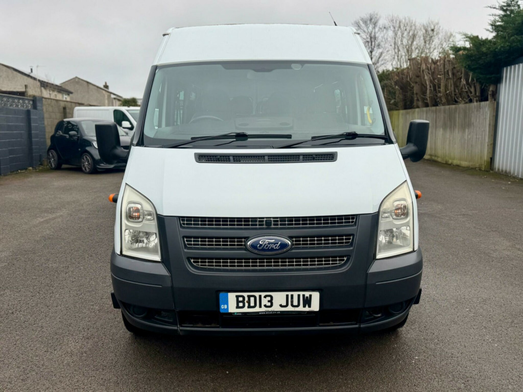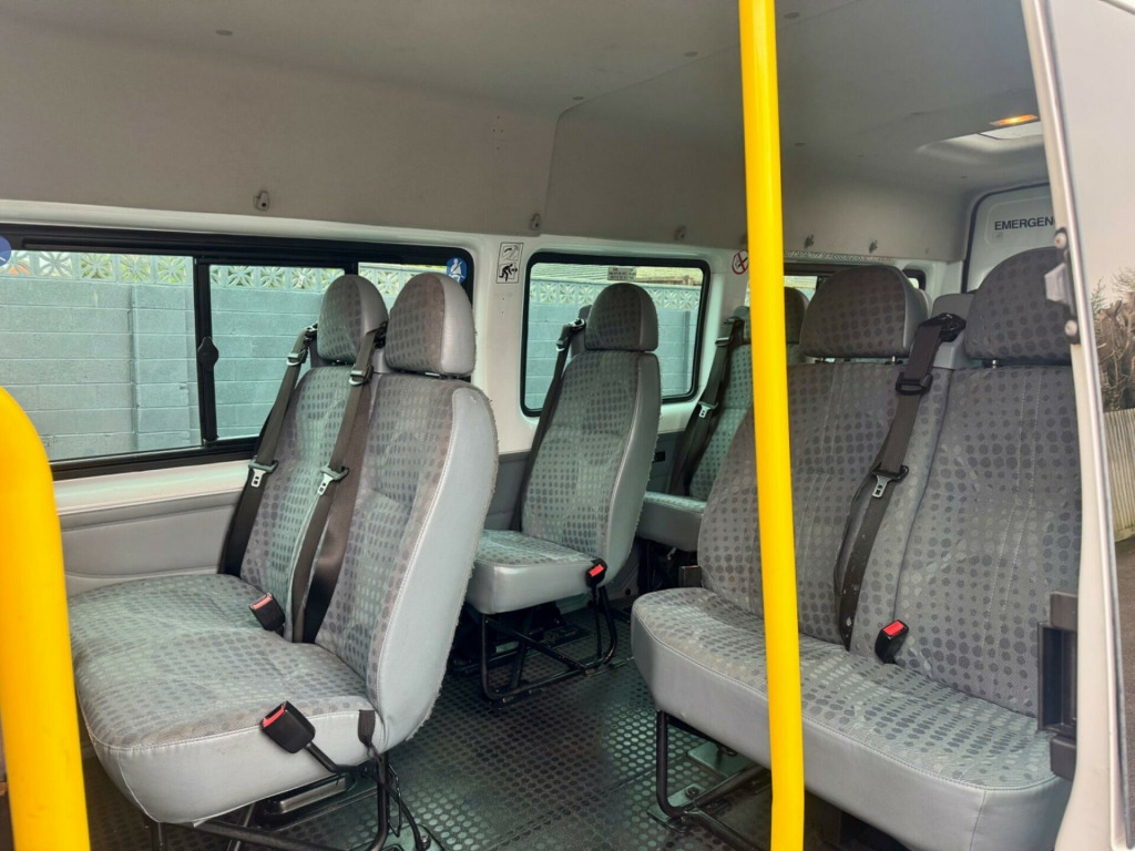 2013 FORD TRANSIT T430 L4 H2 XLWB 17 SEAT MINIBUS 2.2 TDCI 135 BHP ENGINE WITH 6 SPEED GEARBOX. ONE FORMER OWNER FROM NEW. NEW 12 MONTHS MOT (PSV MOT ELIGIBLE). REGULARLY SERVICED AND HAS BEEN INSPECTED EVERY 10 WEEKS ON ITS COUNCIL CONTRACT. ROOF SKYLIGHT (VERY RARE OPTION). 2 KEYS. SIDE SLIDING DOOR. TWIN REAR DOORS. ELECTRIC WINDOWS. HEATED FRONT AND REAR WINDOWS. REAR WIPERS. REAR SLIDING WINDOWS. REAR STEP. FM/AM/CD RADIO. AUX CONNECTIVITY. STEERING WHEEL CONTROLS. ARM RESTS. CUP HOLDERS. INTERNAL STORAGE. MULTI TRIP COMPUTER. REMOTE CENTRAL LOCKING. PLUS MUCH MORE. NO VAT. HPI CLEAR. ALL VEHICLES UNDERGO A 100 POINT PDI WORKSHOP INSPECTION. NO ADMIN FEES! LOW RATE FINANCE AVAILABLE*. PART EXCHANGE WELCOME. NATIONWIDE DELIVERY AVAILABLE. ALL VIEWINGS ARE BY APPOINTMENT. AVAILABLE MOST DAYS UNTIL 8pm, IF YOU REQUIRE MORE INFORMATION OR WOULD LIKE TO ARRANGE A VIEWING OR HAVE A VIDEO OF THE MINIBUS SENT TO YOURSELF VIA WHATSAPP PLEASE CALL ON 01172795071 OR MESSAGE ON 07487322582 -volt power point on drivers side, 16in steel wheels, 2 cup holders, abs and brake assist, battery-twin 590cca-70ah, brake traction control system (btcs), centre rear seat belt, daytime running lights, doors - glazed hinged rear doors, drivers airbag, electrically-operated front windows, electronic stability programme (esp), glass - tinted, head restraints - front with adjustable height, heated rear window, heated windscreen, hill launch assist (hla), light tinte glass, mirror - dipping, rear-view, model 6000 rds sterio radio/cd player with auxiliary mp3 connector, outboard passengers airbag, pats engine immobiliser, passenger side a pillar grab handle, power-assisted steering, rear centre step, remote central locking, side windows, van-2nd row, drivers side, sliding, side windows, van-2nd row, passenger side, sliding, speed limiter - 62mph, steering column-mounted controls, sunvisors - swivelling, third brake light, upholstery - tomy cloth