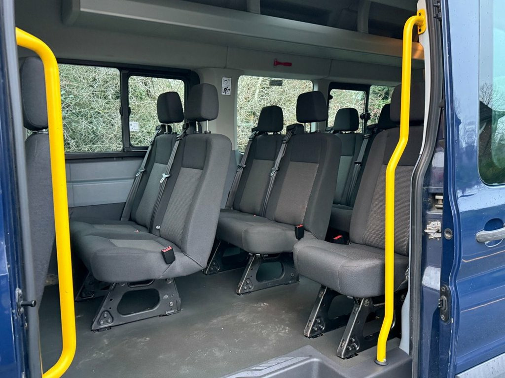 GENUINE ONLY 22,000 MILES (36,000 KMS), 1 OWNER DIRECT HAMPSHIRE COUNCIL SO BEEN VERY WELL MAINTAINED, FACTORY 18 SEATER, 3 POINT SEAT BELTS, SIDE LOADING DOOR, WITH STEP, OVERHEAD LUGGAGE STORAGE COMPARTMENTS, ROOF SKY LIGHTS, ROOF LIGHTS, TOW BAR, 2 SEATER CAB, RADIO WITH USB PHONE CONNECTION, REMOTE CENTRAL LOCKING, DIGITAL TACHO SHOWING 36,000 KMS (=22,000 MILES), ELECTRIC WINDOWS, ELECTRIC MIRRORS, 6 SPEED MANUAL, REAR PARKING SENSORS, 2.2TDCI CHAIN DRIVEN ENGINE, ULEZ COMPLIANT (OK), 100% HPI CLEAR, VERY CLEAN LOW MILEAGE BUS, PLEASE CALL TEXT OR WHATS APP 07787518363 OR 07766670411 FOR FURTHER INFORMATION OR TO ARRANGE A VIEWING 2x12V Power Points, 8-Way Adjustable Drivers Seat, ABS, Auto Start-Stop System, Bluetooh, Cloth Upholstery, Cruise Control with Adjustable Speed Lim, Electonic Dynamic Cornering Control and , Electronic Stability Programme (ESP), Ford Audio System with SYNC (ICE Pack 4), Glovebox with A4 File Storage, Head Restraints - Front/Rear, Hill Start Assist, Immobiliser, Lane Keeping Alert with Driver Alert, Power Side Step, Power Windows, Power-Assisted Steering, Rake and Reach Steering Adjustment, Remote Central Locking, Spare Wheel, Third Brake Light