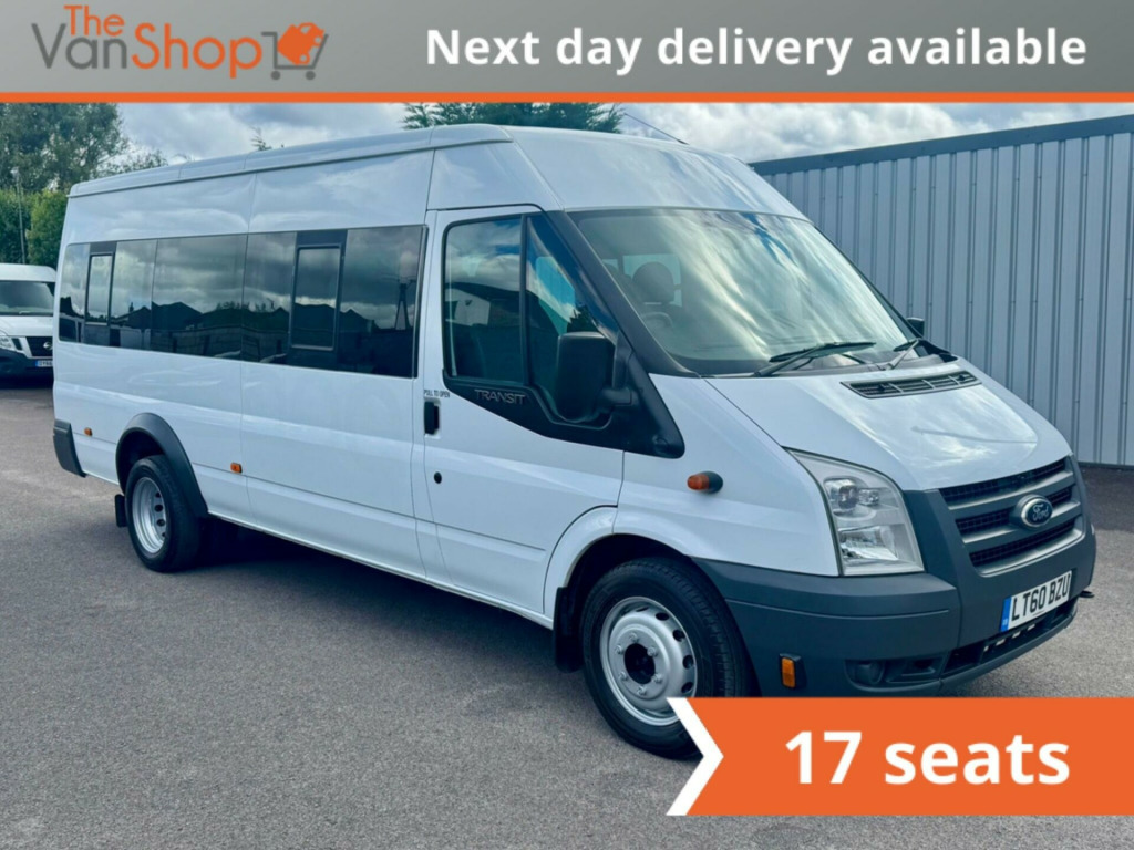 2010 FORD TRANSIT 17 SEAT MINIBUS XLWB. 2.4 LITRE TDCI 115 BHP ENGINE WITH 6 SPEED GEARBOX. ONLY ONE FORMER OWNER FROM NEW (CURRENT COMMUNITY TRANSPORT OWNER SINCE 2015). RETRACTABLE SIDE STEP. NEW 12 MONTHS MOT. REGULARLY SERVICED. 2 KEYS. SIDE SLIDING DOOR. TWIN REAR DOORS. ELECTRIC WINDOWS AND MIRRORS. REAR SLIDING WINDOWS. TOW BAR. FM/AM RADIO. CD PLAYER. AUX CONNECTIVITY. STEERING WHEEL CONTROLS. ARM RESTS. CUP HOLDERS. INTERNAL STORAGE. MULTI TRIP COMPUTER. REMOTE CENTRAL LOCKING. PLUS MUCH MORE. NO VAT. NO ADMIN FEES. HPI CLEAR. ALL VEHICLES UNDERGO A 100 POINT PDI WORKSHOP INSPECTION. LOW RATE FINANCE AVAILABLE*. PART EXCHANGE WELCOME. NATIONWIDE DELIVERY AVAILABLE. ALL VIEWINGS ARE BY APPOINTMENT. AVAILABLE MOST DAYS UNTIL 8pm, IF YOU REQUIRE MORE INFORMATION OR WOULD LIKE TO ARRANGE A VIEWING OR HAVE A VIDEO OF THE MINIBUS SENT TO YOURSELF VIA WHATSAPP PLEASE CALL ON 01172795071 OR MESSAGE ON 07487322582 r bag driver, air bag side, anti-lock brakes, armrest, bumpers, central door locking, centre rear seat belt, clock, cup holder, doors - sliding (right), doors - winged, electric windows (front), exterior lighting, exterior mirrors - power operated & heated, extra storage, grab handles, head restraints, heated front screen, immobiliser, in car entertainment (radio/cd autochanger), mirrors external, mirrors internal, power socket, power-assisted steering, rain sensor, rear centre step, rear step, seat height adjustment, side steps, speakers, steel wheels, steering wheel mounted controls (audio), sun visor, tachometer, tinted glass (all round), towing equipment (general), traction control system, trip computer, upholstery cloth, vision pack, windows - front power operated, windscreen wiper