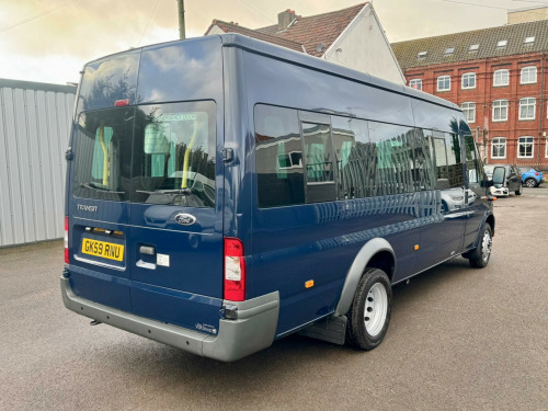 2010 FORD TRANSIT 17 SEAT MINIBUS L4 H2 XLWB T430 2.4 115 BHP TDCI DURATORQ ENGINE WITH 6 SPEED GEARBOX. SEPTEMBER 2026 MOT (NEW MOT AVAILABLE). REGULARLY SERVICED AND JUST BEEN SERVICED. 2 KEYS. AIR CONDITIONING. REAR DIESEL HEATER. PARKING SENSORS. ELECTRIC WINDOWS AND MIRRORS. FRONT AND REAR HEATED WINDOWS. SIDE SLIDING DOOR. TWIN REAR DOORS. REAR SLIDING WINDOWS. REAR WIPERS. FM/AM/CD RADIO. AUX CONNECTIVITY. STEERING WHEEL CONTROLS. ARM RESTS. CUP HOLDERS. INTERNAL STORAGE. MULTI TRIP COMPUTER. REMOTE CENTRAL LOCKING. PLUS MUCH MORE. NO VAT. HPI CLEAR. ALL VEHICLES UNDERGO A 100 POINT PDI WORKSHOP INSPECTION. NO ADMIN FEES! LOW RATE FINANCE AVAILABLE*. PART EXCHANGE WELCOME. NATIONWIDE DELIVERY AVAILABLE. ALL VIEWINGS ARE BY APPOINTMENT. AVAILABLE MOST DAYS UNTIL 8pm, IF YOU REQUIRE MORE INFORMATION OR WOULD LIKE TO ARRANGE A VIEWING OR HAVE A VIDEO OF THE MINIBUS SENT TO YOURSELF VIA WHATSAPP PLEASE CALL ON 01172795071 OR MESSAGE ON 07487322582 r bag driver, air bag side, anti-lock brakes, armrest, bumpers, central door locking, centre rear seat belt, clock, cup holder, doors - sliding (right), doors - winged, electric windows (front), exterior lighting, exterior mirrors - power operated & heated, extra storage, grab handles, head restraints, heated front screen, immobiliser, in car entertainment (radio/cd autochanger), mirrors external, mirrors internal, power socket, power-assisted steering, rain sensor, rear centre step, rear step, seat height adjustment, side steps, speakers, steel wheels, steering wheel mounted controls (audio), sun visor, tachometer, tinted glass (all round), towing equipment (general), traction control system, trip computer, upholstery cloth, vision pack, windows - front power operated, windscreen wiper