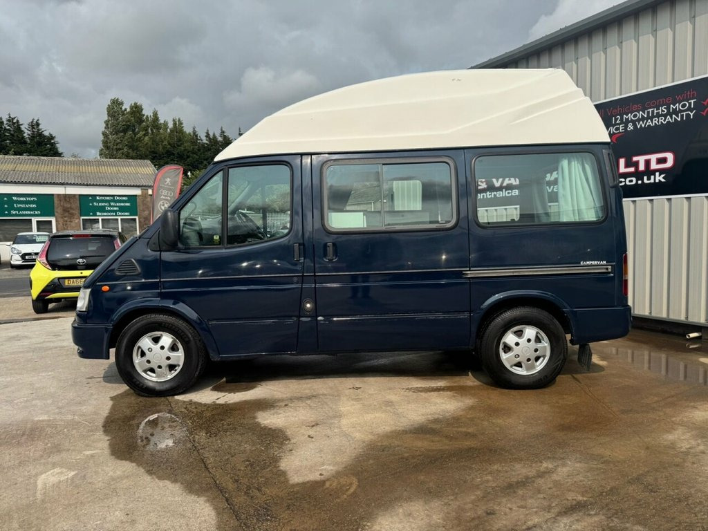 November 1997 Ford Transit 2.5 TD Kampervan 2 Berth finished in Royal Blue, This motorhome conversion is in excellent condition throughout and starts runs and drives fantastic, This is a super rare 4 speed automatic transmission model, The vehicle has been regularly maintained and serviced and the vehicle really does speak for itself it is such a nice vehicle to drive and look at, The conversion consists of Fixed End Bed with under storage, microwave, x2 240v Plug Sockets, large storage cupboards, curtains, stainless steel sink with cold water tap, Fully Insulated, high roof, Skylight, sliding windows, air conditioning, CD player, dual airbags, alloy wheels, towbar, 240v Hookup, The camper will be sold with 12 months mot, a fresh service and come with a warranty This is a super rare vehicle even more so with the automatic transmission this vehicle is a future classic and will certainly appreciate in value.