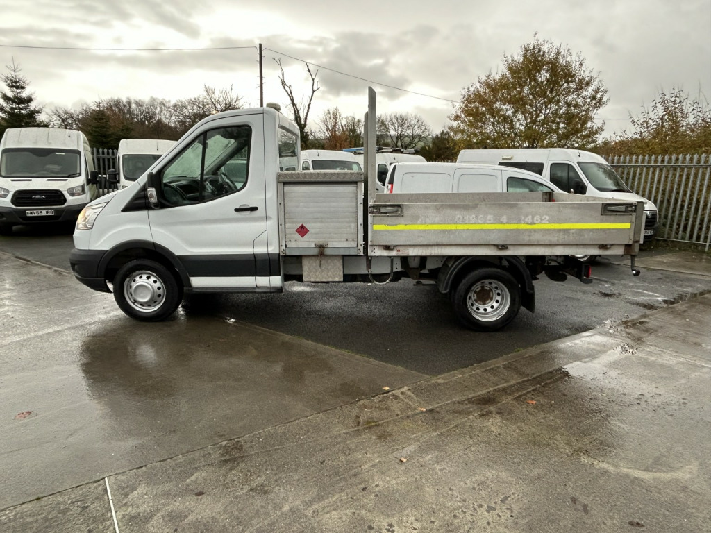 Ford Transit 350 2.2 TDCi 125BHP SINGLE CAB DROPSIDE STORAGE BOX LOCKER finished in White (Manual), 73800 miles, 2 Previous Owners, 2.2 TDCI 125BHP Euro 5, Single Cab Dropside, Rear Storage Box/Locker, Bluetooth connection, PAS, Steering wheel mounted controls, Trip computer, Front armrest, Front electric windows, Solid Paint, ABS, Drivers airbag, Remote central locking, Spare wheel, Tow Bar, Beacon, No Vat