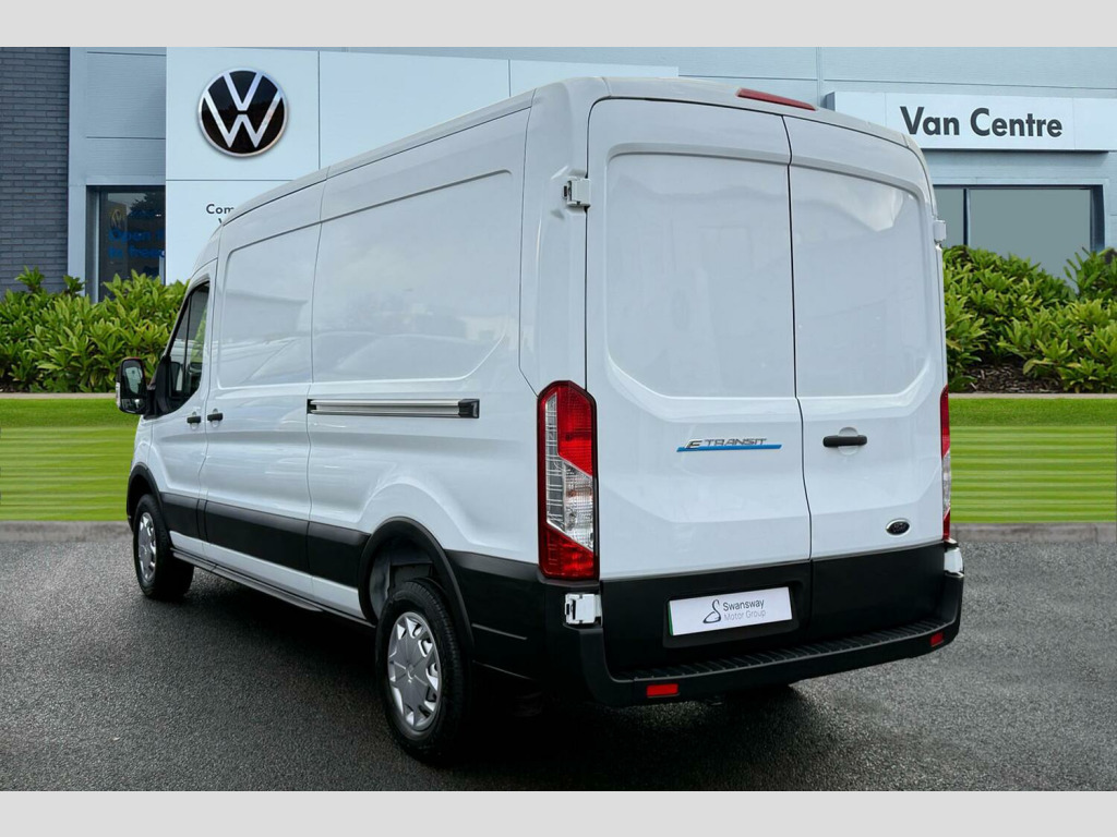 The E Transit offers a substantial cargo volume of 10200 litres, providing ample space for your business needs. With an impressive engine power output of 181 bhp, it delivers strong performance. Charging is convenient, with a full charge at home taking approximately 11 hours and 30 minutes using a 7kW charger, and a rapid charge to 80% achievable in just 38 minutes at a public charging station. The maximum range on a full charge is 160 miles, making it a capable choice for many journeys. Solid paint-Frozen White, Reverse gear alarm, Power heated door mirrors, 12" touch screen with new SYNC 4 system, DAB/AM/FM radio with 2 x USB, bluetooth, emergency assistance, Apple Carplay/Android Auto, Dual passenger seat, Heated seats, Air Conditioning, Keyless start, Steel spare wheel, Power windows, Heavy duty front axle, Medium roof line, Rear bumper with integral step, Wide bodyside mouldings, High mounted stop lamp, ABS + ESP + Hill start assist, Electronic parking brake, Side wind mitigation, Emergency brake warning, PAS, Seatbelt reminder on front seats and fixed rear seats, Kerbside side load doors, Trip computer, Warning lights, 2 x 12V power outlets, Audio controls mounted on steering wheel, Glovebox (A4 documents size), Radio with remote stalks, Reach and rake adjustable steering column, Dual passenger seat tray and table, 16" steel wheels, Single rear wheels