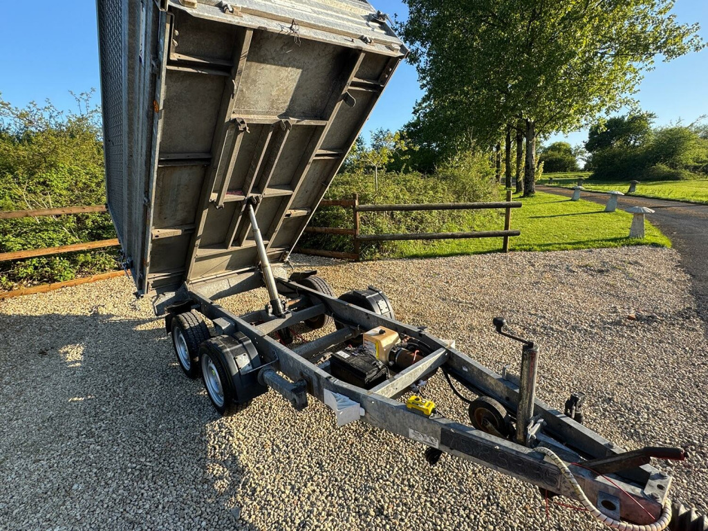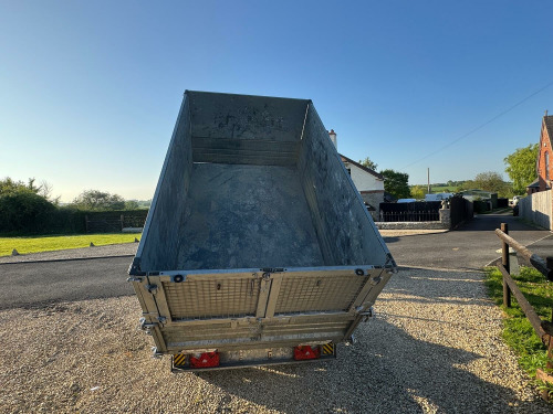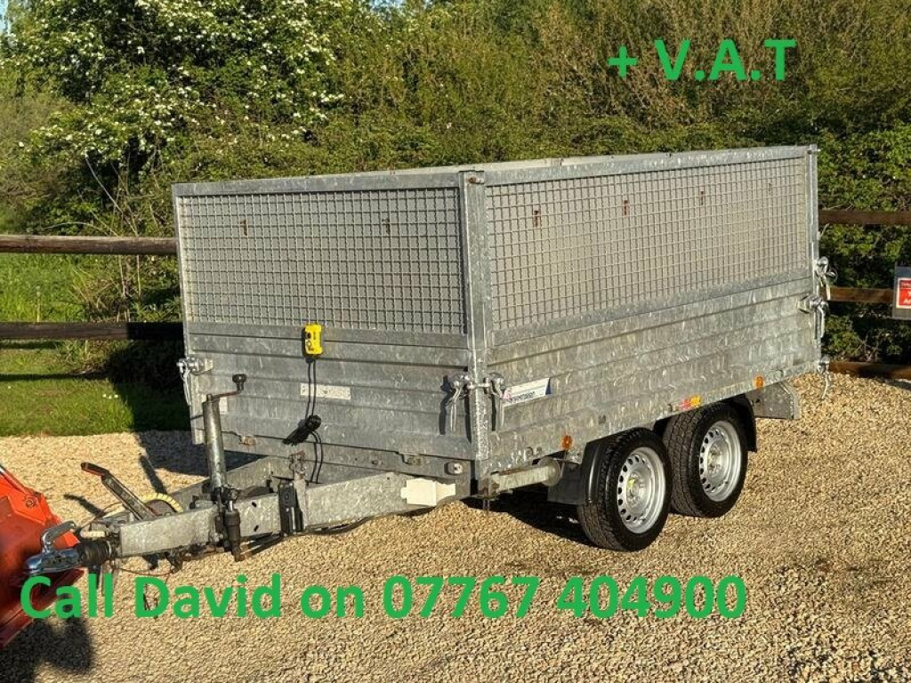 Indespention caged electric/Manual tipping trailer, four wheel breaking led 13 pin lights , regularly maintained, internal dimensions 8ft 5 by 5ft, 1922 kg payload. Price is excluding VAT, Call David on 07767 404900