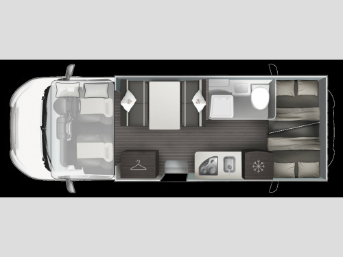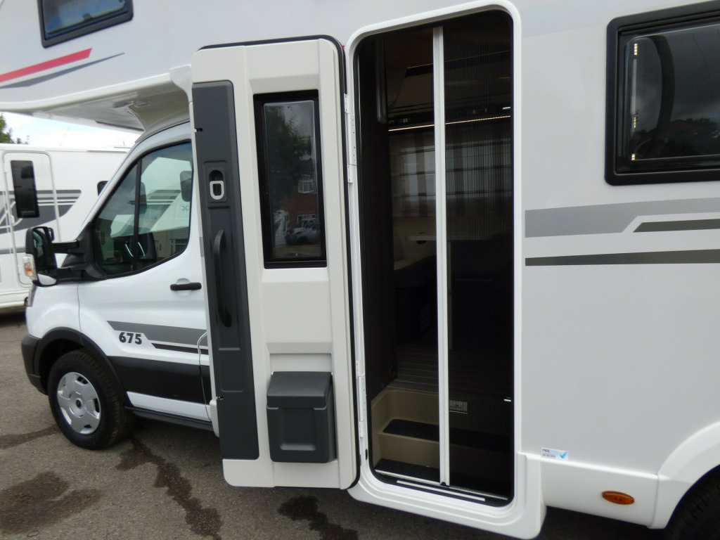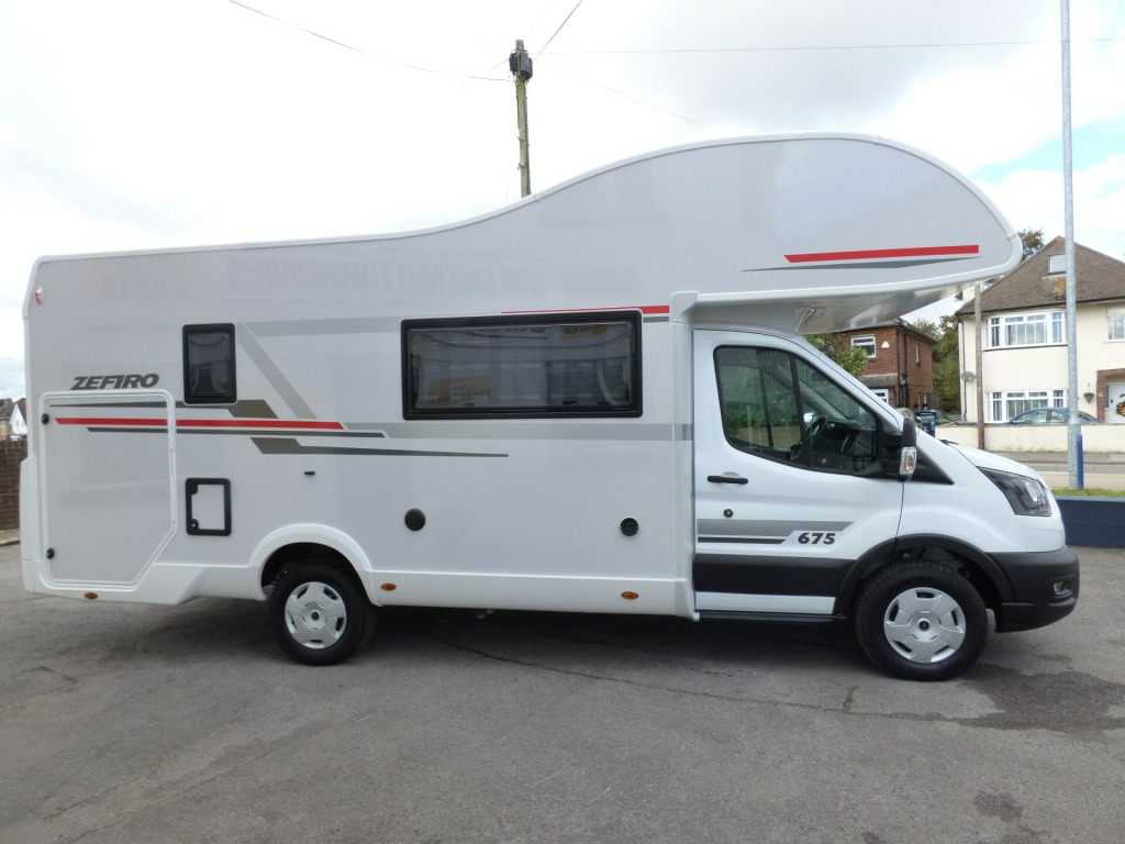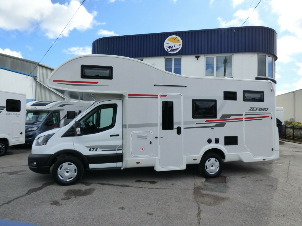 Special Offer - Free Prestige Pack - Includes Fiamma F45S Awning, Scorpion Defender S7 Alarm & Tracker, 22'' Falcon Smart TV, 11kg Gaslow refillable LPG system and starter pack, together worth up to £3,100!New 2025 Model Zefiro 675 Manual. The all new for 2025 Zefiro with 130bhp engine is based on the new Ford Transit chassis with 6 speed manual transmission and the latest Ford 12'' Infotainent system with Apple Car Play and Android Auto. The 675 has always been popular with families sleeping 6 with ease and providing a lot of storage thanks to the rear garage and bunk bed system. The dinette area seats 6 and converts to a double bed for evening use. The overcab bed is a very large double and at the rear, the very generous bunk beds provide sleeping for two more. The well equipped kitchen features a 3 gas burner hob, gas oven and grill and a large fridge/freezer. The bathroom opposite has a shower cubicle, cassette type toilet and wash hand basin. Heating and hot water is via a Truma dual fuel system and other features for the Zefiro 675 include: 200w Solar panel, Thule 4 bike rack, WiFi, External Gas BBQ and Shower points, Front Parking Sensors, Reverse Camera, ISOfix Child Seat Fixings, Pleated Cab Blinds and carpets. L. 6.99,. W. 2.3m, H, 3. 1,, 3,500kg, 6 berth/6 belts, delivery mileage. 0w solar panel with mppt controller, 4g wifi, carpets, external gas bbq point, external shower point, ford 12, front parking sensors, iso fix child seat fixings, reversing camera, separate shower cubicle, thule 4 bike rack, free prestige pack worth £3,100!, 16'' Steel