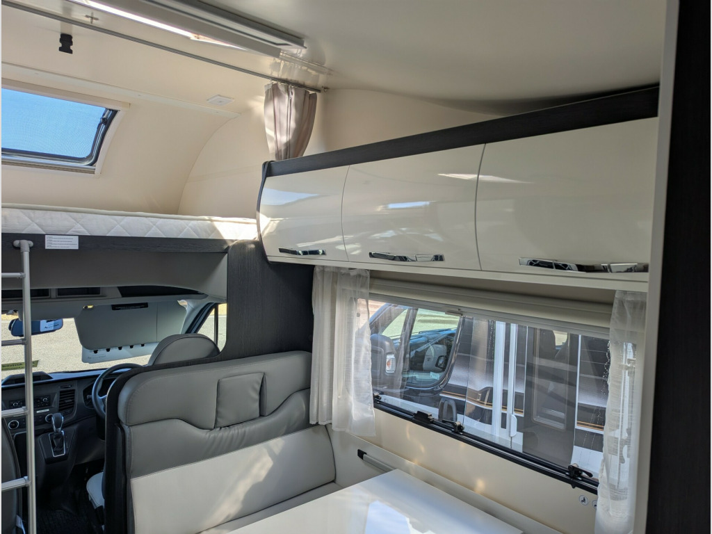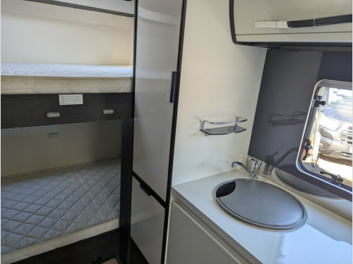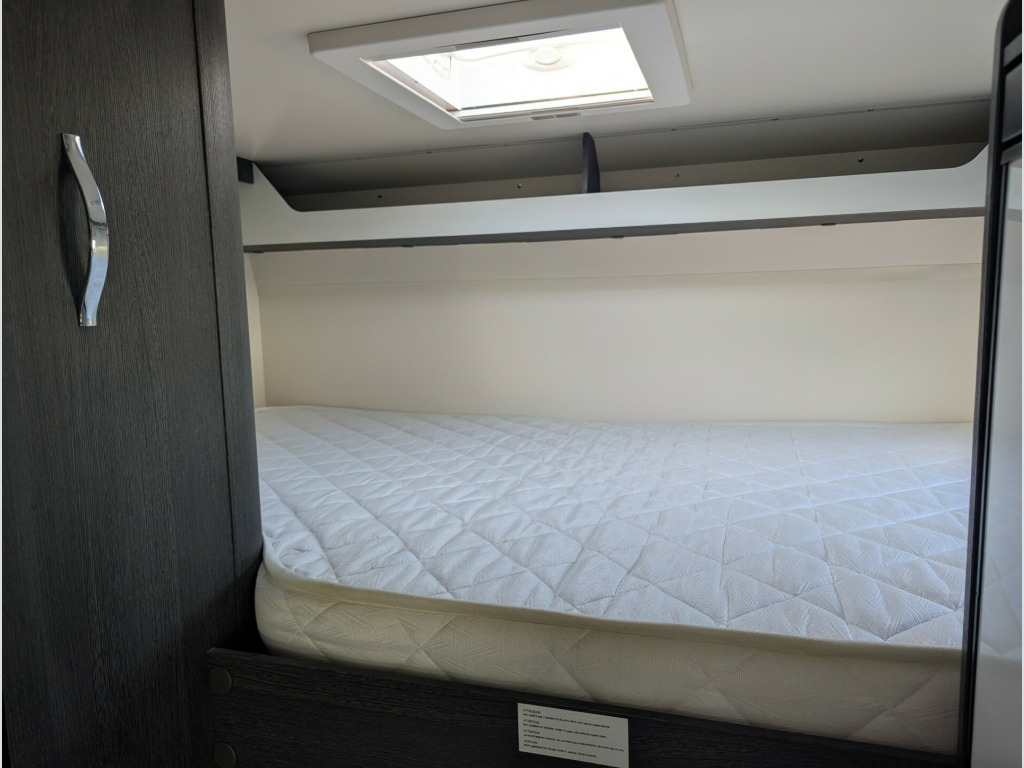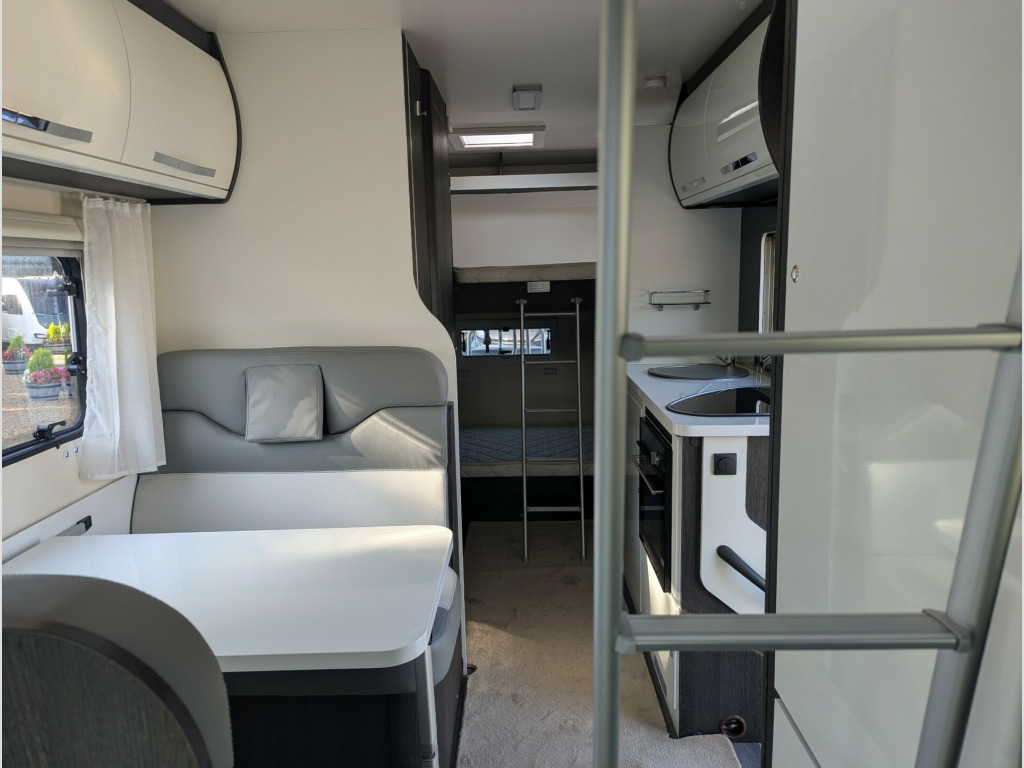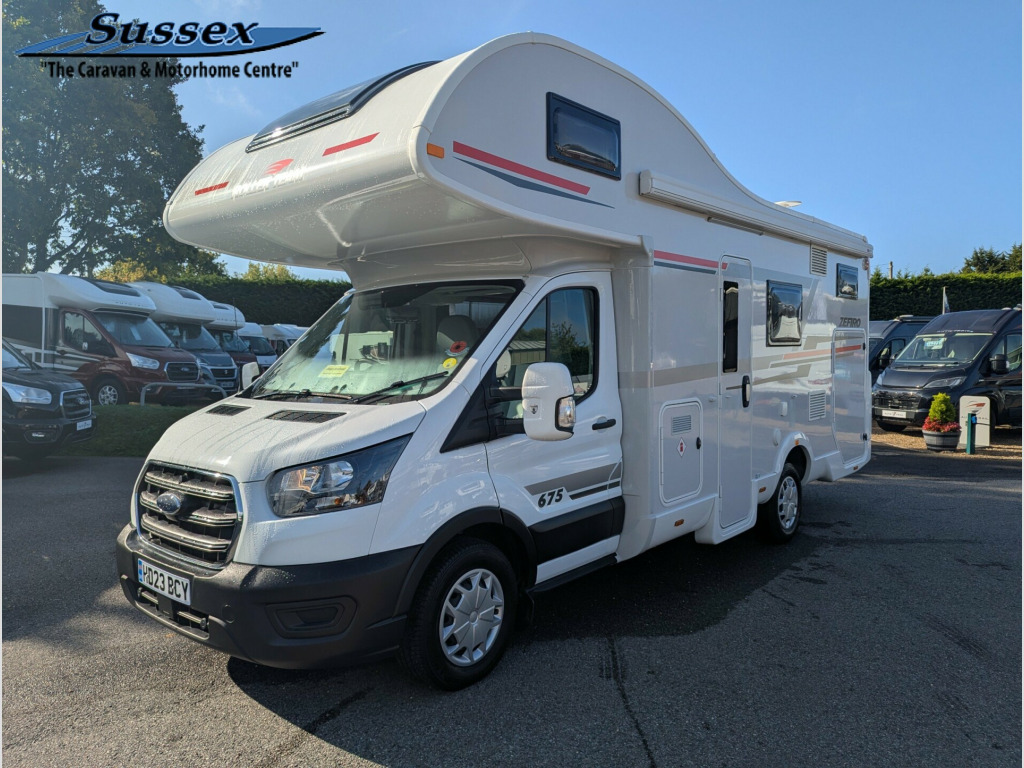 This Roller Team Zefiro 675 is a fantastic family motorhome.The layout features a fixed overcab double bed offering a private sleeping space. There are two bunk beds at the rear, with the lower bunk being able to be folded away to provide more space in the garage area. The forward dinette area can be converted into an additional double bed, providing flexibility for family meals and sleeping arrangements, which means sleeping for up to 6 people and providing 6 travel seats. The kitchen includes a 3-burner hob, oven/grill, and fridge/freezer, while the bathroom has a separate shower cubicle, cassette toilet, and sink. Overhead lockers and a large wardrobe offer generous storage space. This vehicle can be viewed at our West Sussex branch located in Ashington on the A24. To book a viewing please call our sales team on 01903 893666For your complete peace of mind all our motorhomes are finance and HPI checked, have a full service and PDI and include up to 12 months in-house warranty.We also give you a dedicated one-to-one handover to show you how it all works and a full tank of fuel.Sussex Caravan and Motorhome Centre is a family owned, multi-award winning dealership including Practical Caravan Gold Supplying Dealer and FEEFO Platinum Trusted Service Award. Proudly celebrating over 35 years in business. volt charger, 230v socket, 6 belts, 6 berth, automatic, awning light, bike rack, cab air-conditioning, canopy, cruise control, door flyscreen, driver airbag, fixed bed, fixed single beds, fridge with freezer box, grill, loose fit carpets, over cab bed, passenger swivel seat, pleated blinds, rear garage storage with double access doors, reverse camera, side dinette, solar panel, thetford cassette toilet, truma heating, tv aerial, usb socket