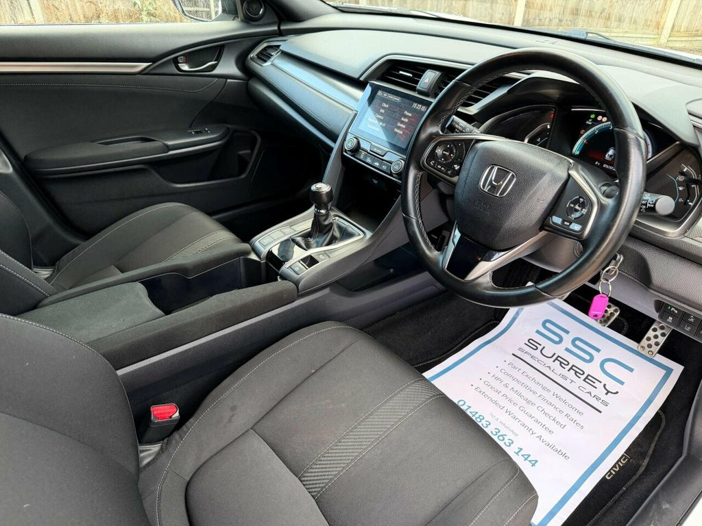 Surrey Specialist Cars are proud to present our lovely Honda Civic 1.0 Civic SR VTec 5dr in a sleek White finish. This car is the epitome of style, performance, and reliability. With its powerful VTec engine, you can experience a smooth and exhilarating drive every time you hit the road. This amazing car comes with Full Service History so it is ready to go. The Honda Civic is packed with advanced features and technology to make your driving experience more enjoyable. From the spacious interior to the cutting-edge infotainment system, every detail has been carefully designed to enhance your comfort and convenience. Features Include Multifunction steering wheel, satellite navigation, parking camera, cruise control, bluetooth audio, Apple CarPlay, Android auto, usb input, aux input, climate control, eco mode, start/stop system and two remote control keys to name a few. Whether you're cruising through the city streets or embarking on a long journey, the Honda Civic delivers a dynamic and responsive performance that will leave you feeling confident and in control. Don't miss out on the opportunity to own this exceptional vehicle. Visit our showroom today and experience the Honda Civic for yourself. Drive away in style with the Honda Civic 1.0 Civic SR VTec 5dr in White. 17in Alloy Wheels, 2x USB Jack and HDMI Jack, ABS - Anti Lock Braking System, Accessory Socket - Front, Accessory Socket - Rear, Adaptive Cruise Control, Airbag - Front Side, Airbag - Passenger SRS with Cut Off Swit, Alloy Pedals, Ambient Lighting, Auto Dimming Rear View Mirror, Black Grille, Bluetooth Hands Free Telephone - HFT, Brake Assist, Centre Console with Sliding Armrest and , Chrome Window Garnish Surround, Climate Control Auto Air Conditioning, Collision Mitigation Braking System - CM, Courtesy Light - Front and Rear, Daytime Running Lights - LED, Deflate Warning System - DWS, Digital Audio Broadcast - DAB, Door Handles - Body Coloured, Door Mirrors - Body Coloured with Integr, Doo