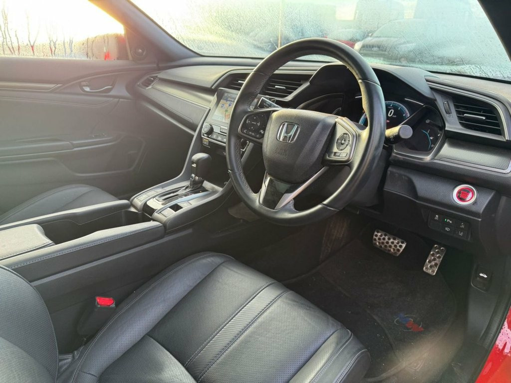 Here at Carcart, we've recently taken delivery of this sporty Honda Civic finished in Race red. With full-service history and 2 Former Keepers, this vehicle has been exceptionally well maintained. The budget-friendly yet elegant design of the car ensures excellent value for money, striking a perfect balance between affordability and style. Ideal for city driving, this small car is easy to maneuver and perfect for navigating busy streets. Loaded with Satellite Navigation, USB, Bluetooth, Leather Seats, Front Heated Seats, Cruise Control, Front and Rear Parking Sensors, Rear View Camera, Keyless Entry, it will elevate your driving experience on every trip. Your peace of mind is ensured with 3-Month warranty, next MOT due 11/2026, last serviced 08/2025 (total 6 services, 6 by MD, timing belt done on 08/2025), spare key (not tested), ULEZ Compliant, HPI clear. The car has been prepared to meet high standards, undergoing a rigorous 100-point check. Rest assured that the car comes with clean bodywork, tidy interior and a smooth drive on the road. WE PROVIDE FINANCING ON ALL VEHICLES AT COMPETITIVE RATES, CHECK ELIGIBILITY USING OUR FREE FINANCE CHECKER WITHOUT AFFECTING YOUR CREDIT SCORE AT CARCART.CO.UK/FINANCE. V5C form present or to follow. PAY REFUNDABLE FEE ON OUR WEBSITE TO RESERVE VEHICLE! Viewing available 7 days a week! AS WE ARE A VERY BUSY DEALERSHIP, PLEASE CHECK THE AVAILABILITY BEFORE COMING DOWN CALLING 03330509911 OR TEXTING VIA WHATSAPP 07570757055. Every effo 17in Alloy Wheels, 2x USB Jack and HDMI Jack, ABS - Anti Lock Braking System, Accessory Socket - Front, Accessory Socket - Rear, Adaptive Damper System - Front and Rear, Airbag - Front Side, Airbag - Passenger SRS with Cut Off Swit, Alloy Pedals, Ambient Lighting, Auto Dimming Rear View Mirror, Black Grille, Blind Spot Information, Bluetooth Hands Free Telephone - HFT, Brake Assist, Centre Console with Sliding Armrest and , Chrome Window Garnish Surround, Climate Control Dual Auto Air Conditioni, Collision Mitigation Braking System - CM, Courtesy Light - Front and Rear, Daytime Running Lights - LED, Deflation Warning System - DWS - Indirec, Digital Audio Broadcast - DAB, Door Handles - Body