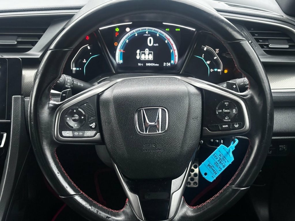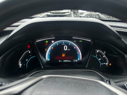 This 2019 Honda Civic VTEC Turbo Sport Line offers a compelling blend of efficiency and technology, making it a smart choice for discerning drivers. Powered by a 1.0 litre Euro 6 compliant petrol engine, this model is designed with low CO2 emissions in mind, contributing to a more environmentally conscious drive. The Sport Line trim enhances its appeal, and you'll appreciate the convenience of a rear parking camera with parking assistance, dual zone climate control for personalised comfort, and intelligent adaptive cruise control for relaxed journeys. Automatic dusk sensing headlights ensure visibility is always optimal, while the Honda CONNECT system, featuring GARMIN navigation and Android Auto compatibility, keeps you connected and on the right path. Experience a responsive drive with the Civic's 1.0 litre VTEC Turbo engine, capable of accelerating from 0 to 60mph in 10.8 seconds. This performance, combined with its fuel efficient design and Euro 6 emissions rating, positions this Honda Civic as a strong contender against other vehicles in its class. The inclusion of features like adaptive cruise control and a rear parking camera further elevates its practicality and ease of use, demonstrating how this particular model offers enhanced driving pleasure and convenience. 17in Alloy Wheels - Dynamic Exclusive Bl, 2x USB Jack and HDMI Jack, ABS - Anti Lock Braking System, Accessory Socket - Front, Accessory Socket - Rear, Airbag - Front Side, Airbag - Passenger SRS with Cut Off Swit, Alloy Pedals, Ambient Lighting, Black Door Mirrors with Integrated Indic, Black Grille, Black Line Pack, Bluetooth Hands Free Telephone - HFT, Brake Assist, Centre Console with Sliding Armrest and , Climate Control Dual Auto Air Conditioni, Collision Mitigation Braking System - CM, Courtesy Light - Front and Rear, Daytime Running Lights - LED, Deflation Warning System - DWS - Indirec, Digital Audio Broadcast - DAB, Door Handles - Body Coloured, Door Mirrors - Electric-Retractable,
