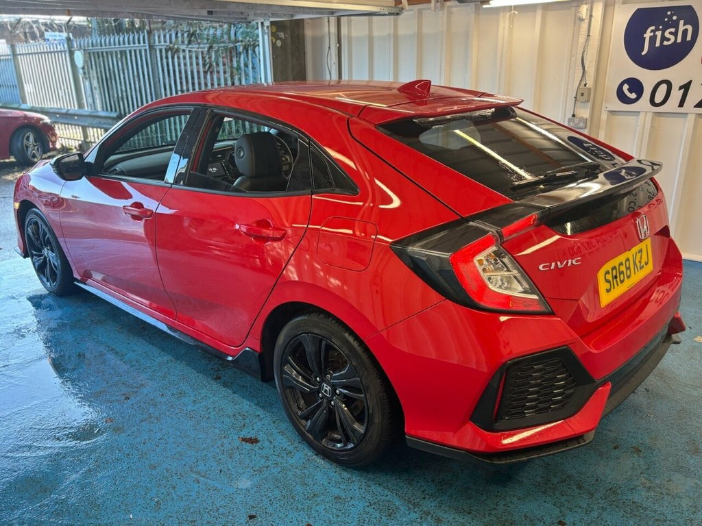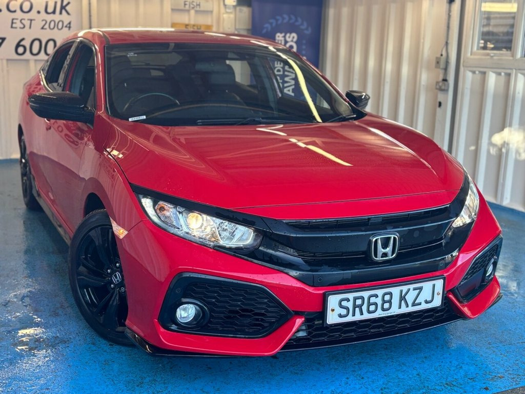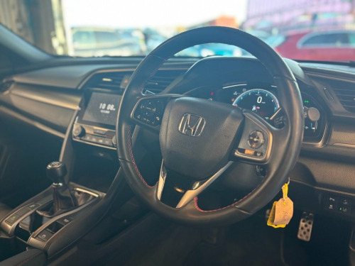 2 KEYS+FSH+PARK CONTROL+MEDIA+FULL LEATHER HEATED SEATS+PRIVACY+BLUETOOTH+NAV+USB+AUX+DAB+ALLOYS+CLIMATE+CRUISE+HPI CLEAR WITH VOSA MOT HISTORY, CLEAN +GREAT DRIVE+GOOD MPG, PART EXCHANGE WELCOME, FULL DEALER FACILITIES+FINANCE,VERY CLEAN CAR+RAC CHECKED+good mpg,The car is in very good condition in and out . Bodywork and interior clean for age and mileage . Interior is clean and tyres good ,Engine and gearbox in good order. , this 2019 Honda Civic 1.0L Petrol VTEC Turbo Sport Line in Sport Line trim offers peace of mind for many miles to come. This vehicle combines practicality with modern technology. Stay connected on the go with Bluetooth Hands Free Telephone and Honda CONNECT with GARMIN Navigation, which also includes Android Auto. Driving is made easier with Intelligent Adaptive Cruise Control and a Rear Parking Camera. The Headlights feature a Dusk Sensor for automatic activation. This Civic stands out with its low CO2 emissions, making it a responsible choice for the environment. Furthermore, acceleration from 0-60mph in 10.8 seconds demonstrates its capability, making it a well-rounded vehicle for everyday use. 17in Alloy Wheels - Dynamic Exclusive Bl, 2x USB Jack and HDMI Jack, ABS - Anti Lock Braking System, Accessory Socket - Front, Accessory Socket - Rear, Airbag - Front Side, Airbag - Passenger SRS with Cut Off Swit, Alloy Pedals, Ambient Lighting, Black Door Mirrors with Integrated Indic, Black Grille, Black Line Pack, Bluetooth Hands Free Telephone - HFT, Brake Assist, Centre Console with Sliding Armrest and , Climate Control Dual Auto Air Conditioni, Collision Mitigation Braking System - CM, Courtesy Light - Front and Rear, Daytime Running Lights - LED, Deflation Warning System - DWS - Indirec, Digital Audio Broadcast - DAB, Door Handles - Body Coloured, Door Mirrors - Electric-Retractable,