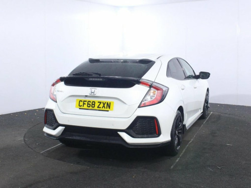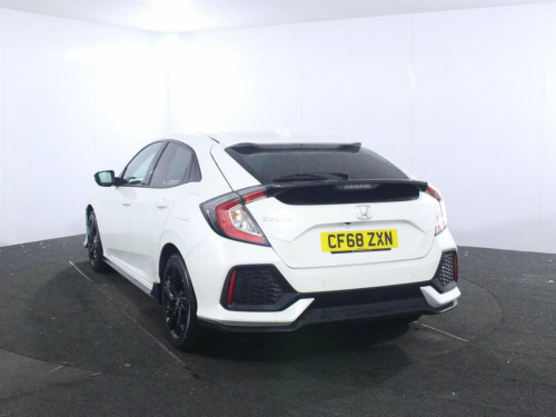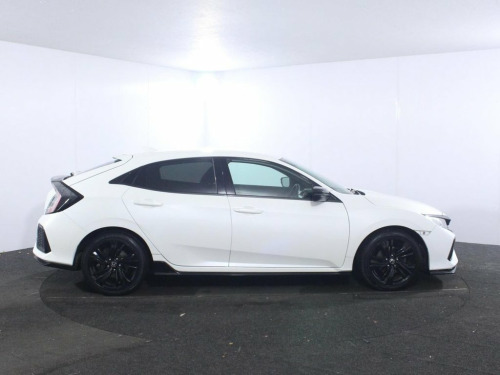 Full service history with 6 services. Last serviced at 35,275 miles in November 2025. The 2019 Honda Civic 1.0 VTEC Turbo Sport Line is a sharp and engaging five-door hatchback that combines Type-R inspired styling with highly efficient daily performance. Powered by a smooth 1.0-litre three-cylinder turbocharged engine, it produces 126 ps (125 bhp) and 200 Nm of torque, delivering a 0–62 mph time of approximately 10.8 to 11.2 seconds and a top speed of 126 mph. This Euro 6 compliant model features a precise six-speed manual gearbox and is exceptionally frugal, with an official combined WLTP economy of 45.6 mpg, while long-distance driving can easily exceed 47 mpg. The Sport Line trim is visually distinguished by 17-inch Dynamic Exclusive black alloy wheels, the "Black Line Pack" (including a black grille and door mirrors), and an aggressive exterior sport garnish. The interior of the Sport Line features a sporty and high-tech cabin with red stitching on the leather steering wheel, alloy pedals, and ambient lighting. Technology is a major highlight, centered around the 7-inch Honda CONNECT touchscreen system with GARMIN navigation, DAB radio, and full smartphone integration via Apple CarPlay and Android Auto. Convenience is further enhanced by dual-zone automatic climate control, a rear parking camera with multi-angle views, and front and rear parking sensors. Safety is a primary focus, with the Civic featuring the "Honda SENSING" suite of advanced 17in Alloy Wheels - Dynamic Exclusive Bl, 2x USB Jack and HDMI Jack, ABS - Anti Lock Braking System, Accessory Socket - Front, Accessory Socket - Rear, Airbag - Front Side, Airbag - Passenger SRS with Cut Off Swit, Alloy Pedals, Ambient Lighting, Black Door Mirrors with Integrated Indic, Black Grille, Black Line Pack, Bluetooth Hands Free Telephone - HFT, Brake Assist, Centre Console with Sliding Armrest and , Climate Control Dual Auto Air Conditioni, Collision Mitigation Braking System - CM, Courtesy Light - Front and Rear, Daytime Running Lights - LED, Deflation Warning System - DWS - Indirec, Digital Audio Broadcast - DAB, Door Handles - Body Coloured, Door Mirrors - Electric-Retractable,