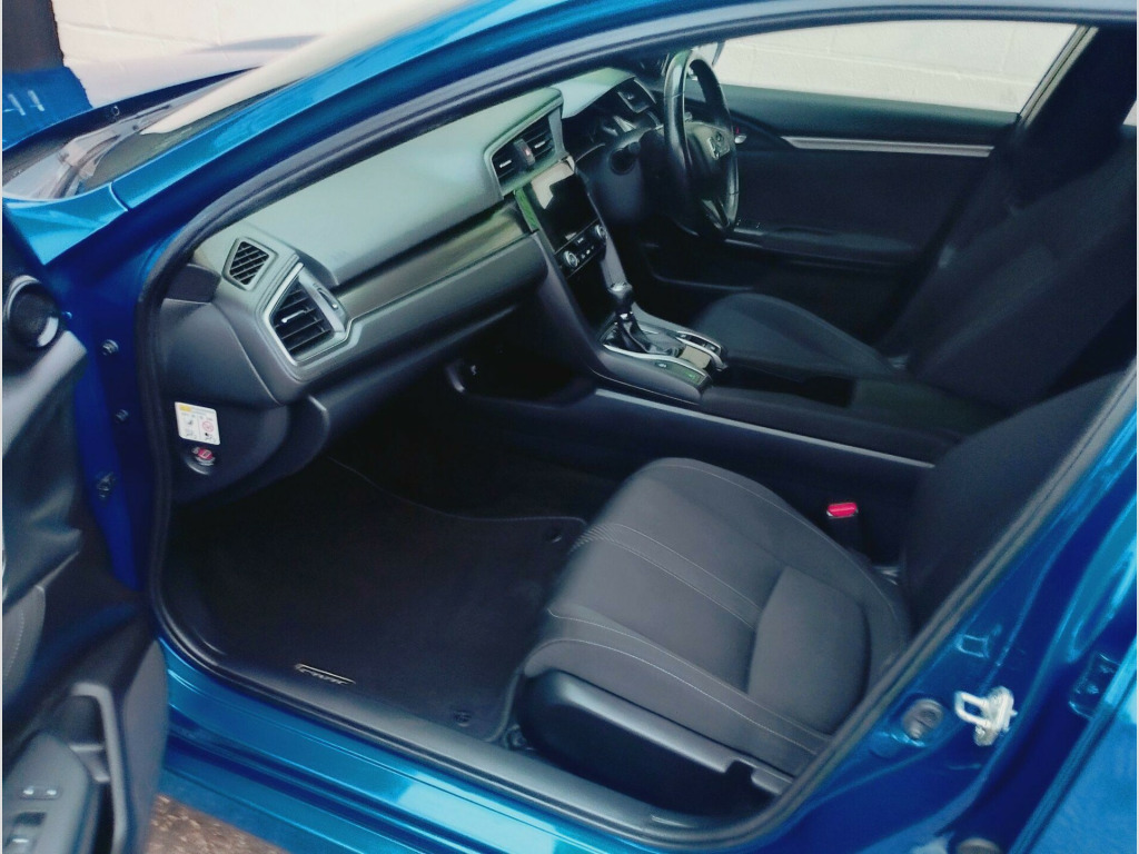 NEW IN TO STOCK!! We are delighted to offer, new in to stock this fantastic Honda Civic 1.0 VTEC Turbo SR Euro 6 (s/s) 5dr for sale, finished in lovely Blue Metallic, with Contrasting Black Interior. These really are fantastic cars to drive, super modern in terms of its interior and equipment and it delivers superb economy, which is complimented beautifully by the smooth engine and gearbox, excellent road holding, an all round, very well balanced little car. As you can see from the pictures it is a great looking car in lovely condition both inside and out - the car is an absolute credit to the previous owner - it is stunning! It will come with a 12 month MOT (with no outstanding advisories) and it has recently been serviced. It has an excellent service history, it has four good tyres and it drives faultlessly. Engine, gearbox, brakes and exhaust are all working perfectly, leaving the new owner needing to spend nothing on it for the foreseeable future. The car comes with an excellent specification and a 3 month ''Simple Protect'' warranty which can be extended for up to 12 months should you wish. Part exchanges are welcome and we offer an excellent range or finance options. We can also arrange delivery directly to your door. In summary this car is beautifully specified and represents superb value for money and offers a great saving from its new price and it will make a great first car or run around. If you would like further information feel free to get in touch.. 17in Alloy Wheels, 2x USB Jack and HDMI Jack, ABS - Anti Lock Braking System, Accessory Socket - Front, Accessory Socket - Rear, Airbag - Front Side, Airbag - Passenger SRS with Cut Off Switch, Alloy Pedals, Ambient Lighting, Black Grille, Bluetooth Hands Free Telephone - HFT, Brake Assist, Centre Console with Sliding Armrest and Storage Compartment, Chrome Window Garnish Surround, Climate Control Dual Auto Air Conditioning, Collision Mitigation Braking System - CMBS, Courtesy Light - Front and Rear, Daytime Running Lights - LED, Deflation Warning System - DWS - Indirect Tyre Pressure Monitoring System, Digital Audio Broadcast - DAB, Door Handles - Body Coloured, Door Mirrors - Body Coloured with Integrated Indicator, Door Mirrors - Electric-Retractable, Driver Information Interface with Colour Display, Driver Seat Manual Height Adjustment, Driver Seat Power Lumbar Adjustment, Driver i-SRS Airbag, EBD - Electronic Brakeforce Distribution, ECON Mode, Electric Power Steering with Variable Ratio, Electric Windows - DR-AS One Touch Up-Down, Electric Windows - Remote Key Fob, Electronic Parking Brake with Automatic Brake Hold, Emergency Stop Signal, Forward Collision Warning - FCW, Front Fog Lights - Halogen, Front Map Light, Front Seat Belts with 2 Stage Emergency Locking Retractor - ELR, Fuel Filler - Capless, Glove Box Light, Halogen Headlights, Headlights - Auto On-Off Timer - Coming-Leaving Home Function, Headlights - Dusk Sensor, High Beam Support System - HSS, High Mount Brake Light, Hill Start Assist - HSA, Honda CONNECT with GARMIN Navigation, ISOFIX Points - Outer Rear Seats, Immobiliser System, Intelligent Adaptive Cruise Control, Intelligent Speed Limiter, Lane Departure Warning - LDW, Lane Keep Assist System, Leather Shift Knob, Multiplex Meter Blue Illumination, Parking Sensors - Front and Rear, Passenger Seat Back Pocket, Power Windows - Front and Rear, Privacy Glass, RR One Touch Power Window Up-Down, Rain Sensing Windscreen Wipers, Rear Parking Camera, Rear Seat Armrest with Cupholder, Rear Seat Belts with Emergency Locking Retractor - ELR, Rear Wiper - Intermittent, Remote Central Locking with 2 Jack Knife Keys, Remote Retractable Door Mirrors, Road Departure Mitigation, Security Alarm System, Selectable Door Unlock, Shark Fin Antenna, Shift Indicator Light, Side Curtain Airbags, Speakers x8, Steering Wheel - Leather, Steering Wheel - Remote Audio Controls, Steering Wheel - Tilt and Telescopic Adjustment, Sunvisor Vanity Mirrors with Illumination, Super Locking, Tonneau Cover, Traffic Sign Recognition System, Trunk Cargo Hook x4, Trunk Light, Tyre Repair Kit, Ultrasonic Sensor, VSA - Vehicle Stability Assist, Whiplash Lessening Front Headrests, Fabric - Black.