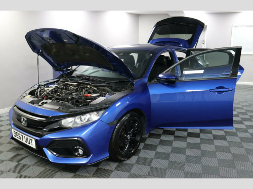 DE67UUT. Honda Civic VTEC Turbo SR with a Bigger Boot than most hatchbacks and Better Fuel Economy for everyday driving. A popular pick with families, commuters, and anyone who wants something a bit sharper to drive than the usual run of family cars, while still needing space for children, pets, shopping, or bulky items.The SR trim brings useful features for everyday use. An 8-inch Colour Touchscreen runs Honda CONNECT with Garmin Navigation, Bluetooth, DAB Radio, Apple CarPlay, and Android Auto. Steering wheel controls make the screen easier to use on the move, and there’s an accessory socket for charging.Adaptive Cruise Control with Speed Limiter helps on motorway runs, and ECON Mode supports lower fuel use when needed. Front and Rear Parking Sensors work with a Rear Camera for help in tighter spaces.Safety kit includes the Collision Mitigation Braking System, Brake Assist, Lane Departure Warning, Hill Start Assist, and an Electronic Parking Brake with Brake Hold. Stop/Start also comes as standard, saving fuel when sat in traffic.This vehicle has just been serviced and comes with a good service history, featuring 4 stamps in the service book. This vehicle also has a full 12-month MOT with no advisories, a clean HPI report, 2 KEYS and a National Mileage Register Check. With a fantastic list of specifications, this could be the perfect car for you! While we use reliable third-party data, some details may vary. We recommend double-checking any specific features you're particularly interested in. We're happy to help verify this for you on request. Please note features such as Apple Carplay may require a subscription. If you have any questions please feel free to contact us ☎️ 0113 257 00 00.. 8in Colour Touchscreen Infotainment System, Honda CONNECT with GARMIN Navigation, Adaptive Cruise Control and Speed Limiter, Bluetooth Hands Free Telephone - HFT, Digital Audio Broadcast - DAB, Accessory Socket - Front, 17in Alloy Wheels, Auto Dimming Rear View Mirror, Brake Assist, Collision Mitigation Braking System - CMBS, Door Mirrors - Electric-Retractable, ECON Mode, Electronic Parking Brake with Brake Hold, Hill Start Assist - HSA, Lane Departure Warning - LDW, Parking Sensors - Front and Rear, Rear Parking Camera, Steering Wheel - Remote Audio Controls, Stop/Start, Apple CarPlay - Android Auto, ISOFIX Points - Outer Rear Seats, Fabric - Black.