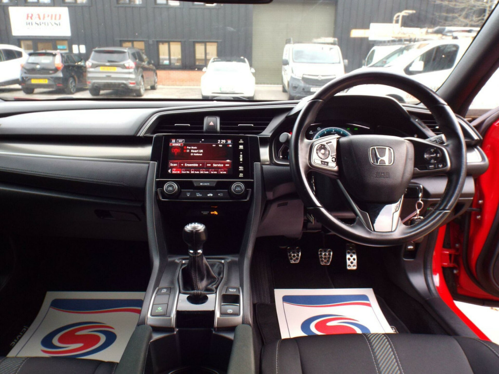 **NATIONWIDE DELIVERY AVAILABLE**This is a very clean and well looked after 2017/67 Honda Civic 1.0 VTEC Turbo SR which comes with a full service history, a long MOT until 29/10/2026 and an excellent spec. Finished in Bright red the paintwork is great and the vehicle has a lovely shine to it from all over. The black cloth interior is also in great condition with no adverse wear at all. Great spec: E/Windows, E/Folding Mirrors, Remote C/L (2xKeys), Alloy Wheels, Front and rear parking sensors, Rear reversing camera, Auto lights, Front and rear fog lights, LED DRLs, Black cloth interior, AM/FM/DAB Radio, Aux/USB Input, Bluetooth connectivity, SAT-NAV, Climate control with Air conditioning, Multi-function steering wheel, Crise control, ABS/PAS/DSC, Fully fitted mats plus loads more. This is a great example which looks superb, drives lovely and has been well looked after. We offer great finance rates, accept credit/debit cards and welcome part exchange too..., in alloy wheels, 2x usb jack and hdmi jack, abs - anti lock braking system, accessory socket - front, accessory socket - rear, adaptive cruise control, airbag - front side, airbag - passenger srs with cut off switch, alloy pedals, ambient lighting, auto dimming rear view mirror, black grille, bluetooth hands free telephone - hft, brake assist, centre console with sliding armrest and storage compartment, chrome window garnish surround, climate control auto air conditioning, collision mitigation braking system - cmbs, courtesy light - front and rear, daytime running lights - led, deflate warning system - dws, digital audio broadcast - dab, door handles - body coloured, door mirrors - body coloured with integrated indicator, door mirrors - electric-retractable, driver information interface with colour display, driver seat manual height adjustment, driver seat power lumbar adjustment, driver i-srs airbag, ebd - electronic brakeforce distribution, econ mode, electric power steering with variable ratio, electric windows - dr-as one touch up-down, electric windows - front and rear, electric windows - remote key fob, electronic parking brake with brake hold, emergency stop signal, forward collision warning - fcw, front fog lights - halogen, front map light, front seat belts with 2 stage emergency locking retractor - elr, fuel filler - capless, glove box light, halogen headlights, headlights - auto on-off timer - coming-leaving home function, headlights - dusk sensor, high beam support system - hss, high mount brake light, hill start assist - hsa, honda connect with garmin navigation, isofix points - outer rear seats, immobiliser system, intelligent speed limiter, lane departure warning - ldw, lane keep assist system, leather shift knob, multiplex meter blue illumination, parking sensors - front and rear, passenger seat back pocket, privacy glass, rain sensing windscreen wipers, rear one touch up-down power windows, rear parking camera, rear seat armrest with cupholder, rear seat belts with emergency locking retractor - elr, rear wiper - intermittent, remote central locking with 2 jack knife keys, remote retractable door mirrors, road departure mitigation, security alarm system, selectable door unlock, shark fin antenna, shift indicator light, side curtain airbags, speakers x8, steering wheel - leather, steering wheel - remote audio controls, steering wheel - tilt and telescopic adjustment, sunvisor vanity mirrors with illumination, super locking, tonneau cover, traffic sign recognition system, trunk cargo hook x4, trunk light, tyre repair kit, ultrasonic sensor, vsa - vehicle stability assist, whiplash lessening front headrests