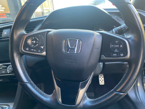 Drive and Smile are pleased to present this 2018 Honda Civic VTEC Turbo SR which is a remarkable find with exceptionally low mileage for its age, having covered just 46,000 miles. Along with full service history and timing belt replacement at 44k and 2 keys. This Euro 6 compliant 1.0 litre petrol model offers a refined driving experience, enhanced by its SR trim. Inside, you'll appreciate the dual zone automatic climate control, ensuring comfort for all occupants. Navigating and parking are made effortless thanks to the Honda CONNECT system featuring GARMIN navigation and Android Auto, complemented by front and rear parking sensors, a rear parking camera, and automatic dusk sensing headlights.The generous boot space provides ample room for all your luggage or shopping needs, making this Civic a practical choice for everyday life. Furthermore, its low CO2 emissions highlight its efficiency, positioning it favourably against similar vehicles. This combination of low mileage, practical features, and economical performance makes this Honda Civic VTEC Turbo SR a compelling option. bric - black, 17in alloy wheels, 2x usb jack and hdmi jack, abs - anti lock braking system, accessory socket - front, accessory socket - rear, airbag - front side, airbag - passenger srs with cut off switch, alloy pedals, ambient lighting, black grille, bluetooth hands free telephone - hft, brake assist, centre console with sliding armrest and storage compartment, chrome window garnish surround, climate control dual auto air conditioning, collision mitigation braking system - cmbs, courtesy light - front and rear, daytime running lights - led, deflation warning system - dws - indirect tyre pressure monitoring system, digital audio broadcast - dab, door handles - body coloured, door mirrors - body coloured with integrated indicator, door mirrors - electric-retractable, driver information interface with colour display, driver seat manual height adjustment, driver seat power lumbar adjustment, driver i-srs airbag, ebd - electronic brakeforce distribution, econ mode, electric power steering with variable ratio, electric windows - dr-as one touch up-down, electric windows - remote key fob, electronic parking brake with automatic brake hold, emergency stop signal, forward collision warning - fcw, front fog lights - halogen, front map light, front seat belts with 2 stage emergency locking retractor - elr, fuel filler - capless, glove box light, halogen headlights, headlights - auto on-off timer - coming-leaving home function, headlights - dusk sensor, high beam support system - hss, high mount brake light, hill start assist - hsa, honda connect with garmin navigation, isofix points - outer rear seats, immobiliser system, intelligent adaptive cruise control, intelligent speed limiter, lane departure warning - ldw, lane keep assist system, leather shift knob, multiplex meter blue illumination, parking sensors - front and rear, passenger seat back pocket, power windows - front and rear, privacy glass, rr one touch power window up-down, rain sensing windscreen wipers, rear parking camera, rear seat armrest with cupholder, rear seat belts with emergency locking retractor - elr, rear wiper - intermittent, remote central locking with 2 jack knife keys, remote retractable door mirrors, road departure mitigation, security alarm system, selectable door unlock, shark fin antenna, shift indicator light, side curtain airbags, speakers x8, steering wheel - leather, steering wheel - remote audio controls, steering wheel - tilt and telescopic adjustment, sunvisor vanity mirrors with illumination, super locking, tonneau cover, traffic sign recognition system, trunk cargo hook x4, trunk light, tyre repair kit, ultrasonic sensor, vsa - vehicle stability assist, whiplash lessening front headrests