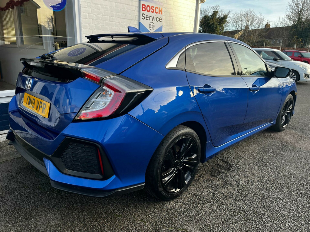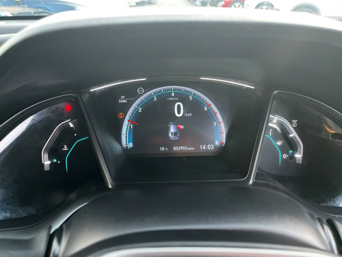 This 2019 Honda Civic VTEC Turbo SR boasts a full service history, with its last service completed at 52,000 miles, offering you peace of mind. This Euro 6 compliant 1.0 litre petrol model comes with a 6 month warranty and a 12 month MOT provided on purchase. It features Bluetooth Hands Free Telephone, a rear parking camera, and intelligent adaptive cruise control for a more relaxed driving experience. Inside, you'll find dual climate control and the Honda CONNECT system with Garmin navigation, compatible with Android Auto.The Civic VTEC Turbo SR offers a generous boot space, perfect for all your luggage or shopping needs. Its low CO2 emissions highlight its efficiency, making it a more environmentally conscious choice compared to similar vehicles. This well maintained Honda Civic is ready for its next owner.RESERVE ONLINE TODAY + ULEZ COMPLIANT +0% DEPOSIT FINANCE AVAILABLE + PLEASE MAKE YOUR APPOINTMENT TO VIEW TODAY + Our family owned business was founded in 1992 and our aim is to offer a friendly and efficient service and to make our customer's buying experience as easy and enjoyable as possible. Our experienced staff will offer advice, if required, to help ensure our customers find the most suitable car to match their motoring needs. Part Exchange welcome. Although every effort is made to ensure the accuracy of these details please contact the dealer to verify any particular details prior to making a purchase. + All our cars are HPi checked to offer our customers peace of mind and therefore ensuring there is no outstanding finance or insurance write offs listed against them+ *Finance subject to status+ Third party finance agreements attract a £400 Administration fee+. 17in Alloy Wheels, 2x USB Jack and HDMI Jack, ABS - Anti Lock Braking System, Accessory Socket - Front, Accessory Socket - Rear, Airbag - Front Side, Airbag - Passenger SRS with Cut Off Switch, Alloy Pedals, Ambient Lighting, Black Grille, Bluetooth Hands Free Telephone - HFT, Brake Assist, Centre Console with Sliding Armrest and Storage Compartment, Chrome Window Garnish Surround, Climate Control Dual Auto Air Conditioning, Collision Mitigation Braking System - CMBS, Courtesy Light - Front and Rear, Daytime Running Lights - LED, Deflation Warning System - DWS - Indirect Tyre Pressure Monitoring System, Digital Audio Broadcast - DAB, Door Handles - Body Coloured, Door Mirrors - Body Coloured with Integrated Indicator, Door Mirrors - Electric-Retractable, Driver Information Interface with Colour Display, Driver Seat Manual Height Adjustment, Driver Seat Power Lumbar Adjustment, Driver i-SRS Airbag, EBD - Electronic Brakeforce Distribution, ECON Mode, Electric Power Steering with Variable Ratio, Electric Windows - DR-AS One Touch Up-Down, Electric Windows - Remote Key Fob, Electronic Parking Brake with Automatic Brake Hold, Emergency Stop Signal, Forward Collision Warning - FCW, Front Fog Lights - Halogen, Front Map Light, Front Seat Belts with 2 Stage Emergency Locking Retractor - ELR, Fuel Filler - Capless, Glove Box Light, Halogen Headlights, Headlights - Auto On-Off Timer - Coming-Leaving Home Function, Headlights - Dusk Sensor, High Beam Support System - HSS, High Mount Brake Light, Hill Start Assist - HSA, Honda CONNECT with GARMIN Navigation, ISOFIX Points - Outer Rear Seats, Immobiliser System, Intelligent Adaptive Cruise Control, Intelligent Speed Limiter, Lane Departure Warning - LDW, Lane Keep Assist System, Leather Shift Knob, Multiplex Meter Blue Illumination, Parking Sensors - Front and Rear, Passenger Seat Back Pocket, Power Windows - Front and Rear, Privacy Glass, RR One Touch Power Window Up-Down, Rain Sensing Windscreen Wipers, Rear Parking Camera, Rear Seat Armrest with Cupholder, Rear Seat Belts with Emergency Locking Retractor - ELR, Rear Wiper - Intermittent, Remote Central Locking with 2 Jack Knife Keys, Remote Retractable Door Mirrors, Road Departure Mitigation, Security Alarm System, Selectable Door Unlock, Shark Fin Antenna, Shift Indicator Light, Side Curtain Airbags, Speakers x8, Steering Wheel - Leather, Steering Wheel - Remote Audio Controls, Steering Wheel - Tilt and Telescopic Adjustment, Sunvisor Vanity Mirrors with Illumination, Super Locking, Tonneau Cover, Traffic Sign Recognition System, Trunk Cargo Hook x4, Trunk Light, Tyre Repair Kit, Ultrasonic Sensor, VSA - Vehicle Stability Assist, Whiplash Lessening Front Headrests, Fabric - Black. Full service history