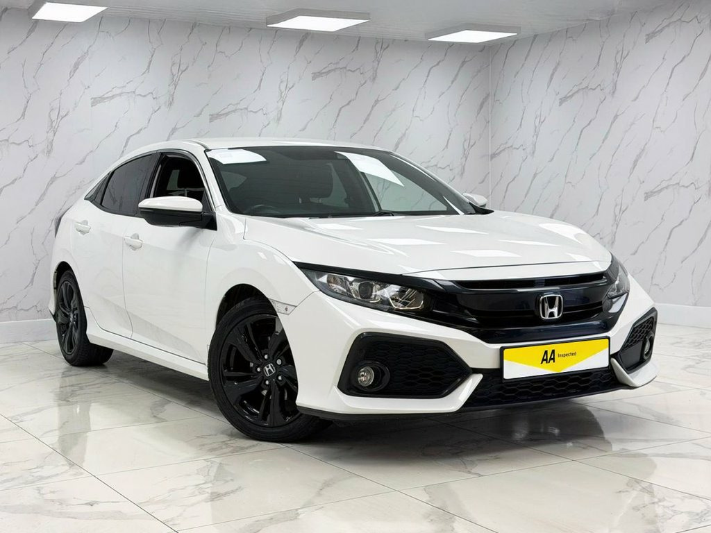 This 2018 Honda Civic VTEC Turbo SR presents an exceptional opportunity with its remarkably low mileage of just 20229 miles. This Euro 6 compliant 1.0 litre petrol model offers a refined driving experience, enhanced by features such as dusk sensing automatic headlights and front and rear parking sensors for effortless manoeuvring. Inside, you'll find the Honda CONNECT system complete with GARMIN navigation and Android Auto, alongside Bluetooth hands free telephone for seamless connectivity on the go. Intelligent Adaptive Cruise Control also features, making longer journeys more relaxed. The Civic VTEC Turbo SR is designed for practicality and efficiency. Its generous boot space ensures you have ample room for luggage or shopping, while its low CO2 emissions contribute to a more environmentally conscious drive. With an acceleration of 0-60mph in 10.8 seconds, this Honda Civic demonstrates a balanced performance that is often better than other vehicles in its class, offering a responsive yet economical drive. White Orchid, Fabric - Black, 17in Alloy Wheels, 2x USB Jack and HDMI Jack, ABS - Anti Lock Braking System, Accessory Socket - Front, Accessory Socket - Rear, Airbag - Front Side, Airbag - Passenger SRS with Cut Off Swit, Alloy Pedals, Ambient Lighting, Black Grille, Bluetooth Hands Free Telephone - HFT, Brake Assist, Centre Console with Sliding Armrest and , Chrome Window Garnish Surround, Climate Control Dual Auto Air Conditioni, Collision Mitigation Braking System - CM, Courtesy Light - Front and Rear, Daytime Running Lights - LED, Deflation Warning System - DWS - Indirec, Digital Audio Broadcast - DAB, Door Handles - Body Coloured, Door Mirrors - Body Coloured with Integr, Door Mirrors -