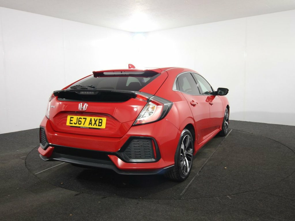 Comprehensive service history with 7 services. Last serviced a 57,692 miles. Introducing the 2018 Honda Civic 1.0 VTEC Turbo SR Hatchback, a sleek and feature-packed 5-door petrol model engineered for driver enjoyment and modern convenience. Finished with sporty 17-inch alloy wheels, privacy glass, LED daytime running lights, and a distinctive black grille with chrome window garnish surround, this Euro 6 CVT automatic exudes premium style. Its aerodynamic lines, shark fin antenna, and body-coloured door mirrors and handles create a contemporary, refined look.  Powered by an efficient 1.0-litre VTEC Turbo petrol engine producing 129ps with paddle shift control, the Civic SR delivers outstanding fuel economy and spirited performance—perfect for both city and motorway driving. The advanced cabin offers Honda CONNECT with GARMIN navigation, dual-zone automatic climate control, adaptive cruise control, Bluetooth handsfree telephone, DAB radio, digital colour display, and ambient LED lighting. Comfort is assured with manual height and power lumbar adjustment for the driver, a sliding centre armrest, and a rear seat armrest with integrated cupholders.  Safety and connectivity are top priorities, with features including Collision Mitigation Braking System (CMBS), lane keep assist, forward collision warning, lane departure warning, road departure mitigation, parking sensors front and rear, rear parking camera, ISOFIX points for outer rear seats, and a security alarm system. Conv 17in Alloy Wheels, 2x USB Jack and HDMI Jack, ABS - Anti Lock Braking System, Accessory Socket - Front, Accessory Socket - Rear, Adaptive Cruise Control, Airbag - Front Side, Airbag - Passenger SRS with Cut Off Swit, Alloy Pedals, Ambient Lighting, Auto Dimming Rear View Mirror, Black Grille, Bluetooth Hands Free Telephone - HFT, Brake Assist, Centre Console with Sliding Armrest and , Chrome Window Garnish Surround, Climate Control Dual Auto Air Conditioni, Collision Mitigation Braking System - CM, Courtesy Light - Front and Rear, Daytime Running Lights - LED, Deflate Warning System - DWS, Digital Audio Broadcast - DAB, Door Handles - Body Coloured, Door Mirrors - Body Coloured with Integr,