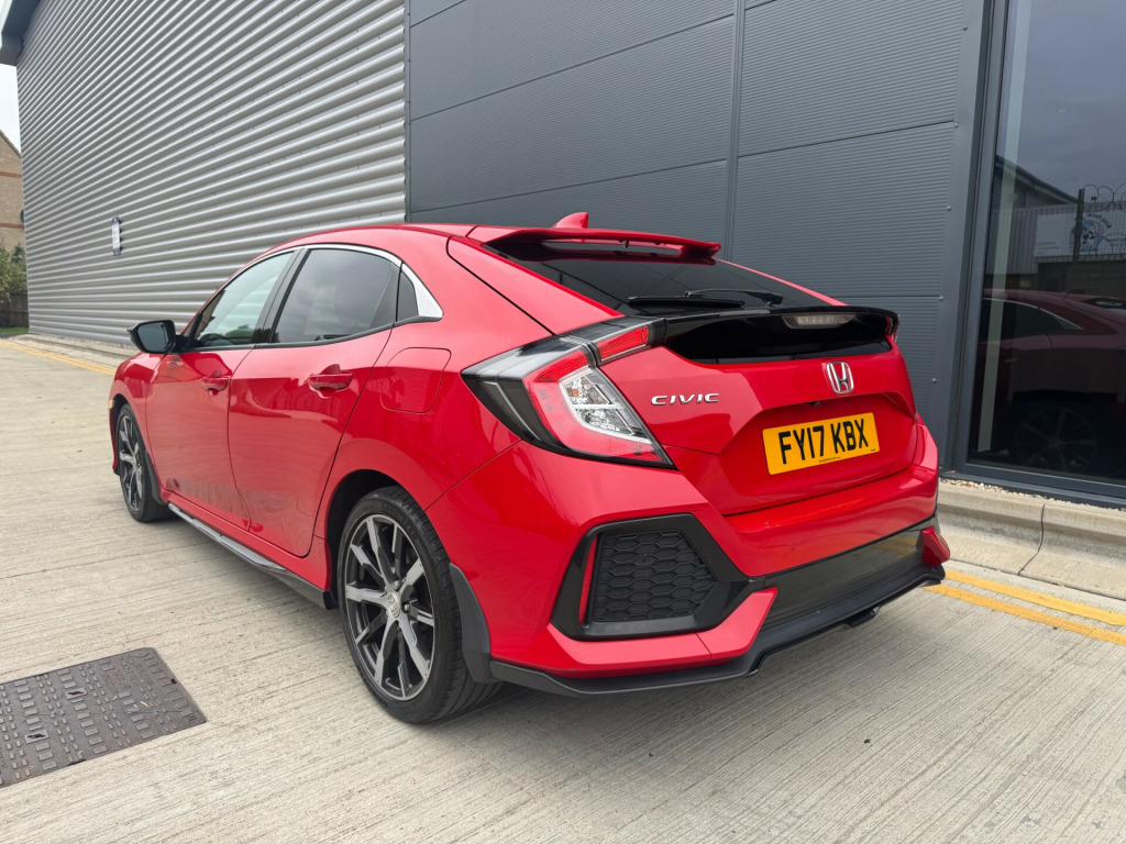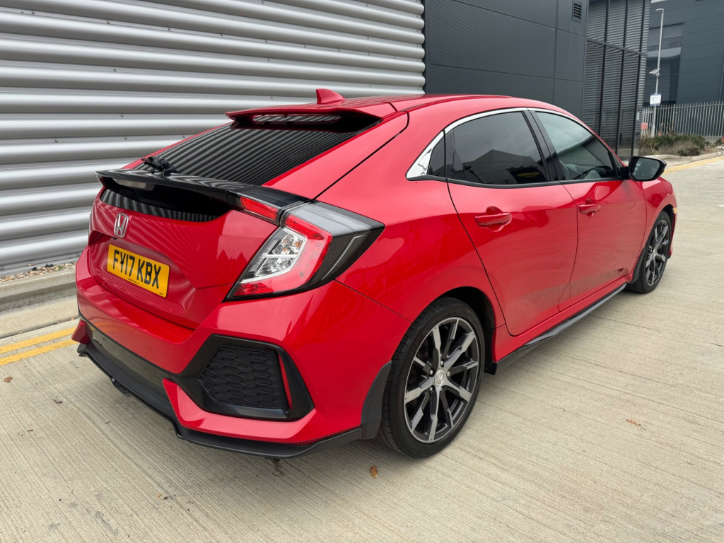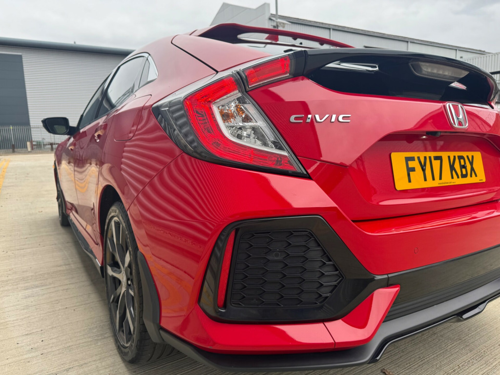 2017 Honda Civic 1.0 VTEC Turbo SR Hatchback 45,000 miles. petrol Euro 6 (s/s) auto CVT transmission, £35 road tax per year, full service history with 8 service intervals, last service done 17/10/2025, MOT is valid until 08/03/2026, reverse camera, parking sensors, adaptive cruise control, lane keeping assist, well specified, immaculate condition, 6 months AA warranty 12 months breakdown cover 5 days drive away insurance, delivery available finance available contact for more information sporty stylish and ULEZ compliant, making it suitable for driving in low emission zones. With 5 seats and 5 doors, this Civic offers ample space for passengers and cargo alike., providing peace of mind for the buyer. In terms of style, the car comes with 17in Alloy Wheels, Black Grille, and Chrome Window Garnish Surround, while the interior is adorned with modern features including Body Coloured Door Handles and Integrated Indicator Door Mirrors, making it a practical and attractive choice for those in the market for a hatchback.,  in alloy wheels, black grille, chrome window garnish surround, door handles - body coloured, door mirrors - body coloured with integrated indicator, door mirrors - electric-retractable, electric windows - front and rear, electric windows - remote key fob, privacy glass, tyre repair kit, 2x usb jack and hdmi jack, accessory socket - front, accessory socket - rear, bluetooth hands free telephone - hft, digital audio broadcast - dab, honda connect with garmin navigation, shark fin antenna, speakers x8, abs - anti lock braking system, airbag - front side, airbag - passenger srs with cut off switch, brake assist, collision mitigation braking system - cmbs, driver i-srs airbag, ebd - electronic brakeforce distribution, electronic parking brake with brake hold, emergency stop signal, front seat belts with 2 stage emergency locking retractor - elr, hill start assist - hsa, isofix points - outer rear seats, immobiliser system, lane keep assist system, low speed following, rear seat belts with emergency locking retractor - elr, rear wiper - intermittent, remote central locking with 2 jack knife keys, security alarm system, side curtain airbags, super locking, ultrasonic sensor, vsa - vehicle stability assist, adaptive cruise control, deflate warning system - dws, driver information interface with colour display, econ mode, electric power steering with variable ratio, forward collision warning - fcw, intelligent speed limiter, lane departure warning - ldw, parking sensors - front and rear, rear parking camera, road departure mitigation, shift indicator light, traffic sign recognition system, alloy pedals, ambient lighting, auto dimming rear view mirror, centre console with sliding armrest and storage compartment, climate control dual auto air conditioning, courtesy light - front and rear, driver seat manual height adjustment, driver seat power lumbar adjustment, electric windows - dr-as one touch up-down, front map light, fuel filler - capless, glove box light, leather shift knob, multiplex meter blue illumination, paddle shift, passenger seat back pocket, rain sensing windscreen wipers, rear one touch up-down power windows, rear seat armrest with cupholder, remote retractable door mirrors, selectable door unlock, steering wheel - leather, steering wheel - remote audio controls, steering wheel - tilt and telescopic adjustment, sunvisor vanity mirrors with illumination, tonneau cover, trunk cargo hook x4, trunk light, whiplash lessening front headrests, daytime running lights - led, front fog lights - halogen, halogen headlights, headlights - auto on-off timer - coming-leaving home function, headlights - dusk sensor, high beam support system - hss, high mount brake light