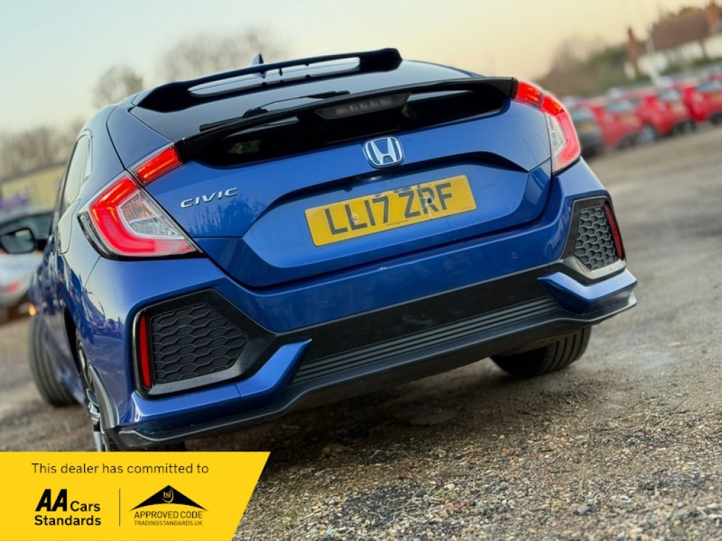 2 keys 2 owners full-service history, last service done recently total 10 services done long MOT till 12/11/2026 Navigation HDD Parking Sensor(s) Climate Control 17' Alloy Wheels Privacy Glass This 2017 Honda Civic VTEC Turbo SR is a superb example, having had only two owners from new. It boasts a responsive 1.0 litre petrol engine, meeting the Euro 6 emission standards, making it an environmentally conscious choice. The SR trim level ensures a well equipped interior, ready for your daily journeys. With an impressive fuel economy of 55 miles per gallon, this Civic offers excellent value for money, performing better than many similar vehicles in its class. You'll also appreciate the generous boot space, providing ample room for shopping, luggage, or any other essentials you need to carry. Clean body work, interior in excellent condition, 3 months warranty including parts and labour. Competitive finance rates available, call now for a free quote. Reserve this vehicle with a small deposit. Nationwide delivery service available. 12 months free AA breakdown cover. Part exchange welcome. We accept all major card payments, cash, and bank transfer. We are located in Hitchin, only 0.4 miles from the train station (8-minute walk). Address: 9 Bury Mead Road, Next to Euraqua UK , SG5 1RT For more cars visit: https://www.inhertsmotors.co.uk DVSA mileage 33k (28/01/2021), 43k (24/01/2022), 53k (24/01/2023), 63k (25/01/2024), 74k (23/01/2025) 17in Alloy Wheels, ABS, Alarm, Automatic Rearview Mirror Dimming, Bluetooth, Brake Assist, Central Locking, Cruise Control, Daytime Running Lights, Electric Windows, Engine Immobiliser, Parking Assistance, Privacy/Tinted Glass, Rain Sensor, Side Impact Airbags